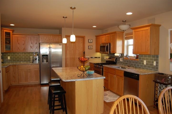 Beautiful home with great style! Bright & open floor plan. Kitchen w/newer granite tops & stainless steel appliances, leads to large dinette & 2-tiered low-maintenance deck & brick patio. Upstairs the master suite screams “ahh” with its accented tray ceiling & soaking tub. Exposed lower level is a delight w/cozy, thick carpet & rich built-in bookcases & entertainment center, gas fireplace, surround sound & tamper proof outlets. There is also a 4th bdrm/office & 3/4 bath. Enjoy nearby Prairie Ridge Park.