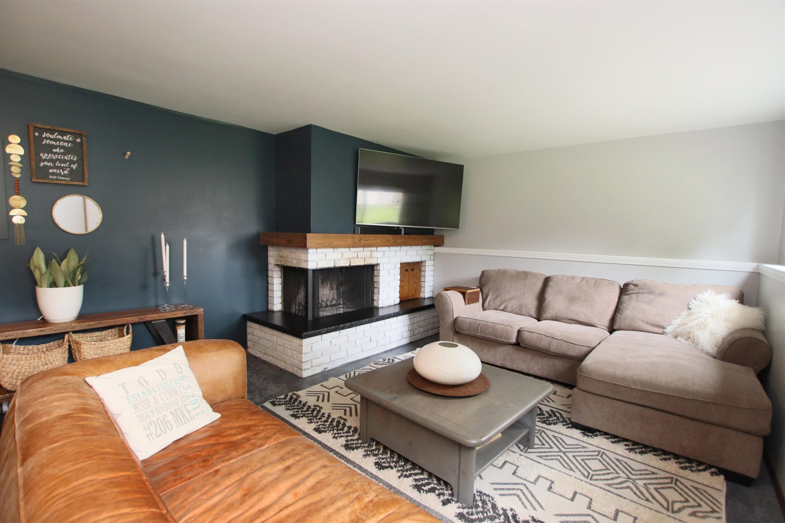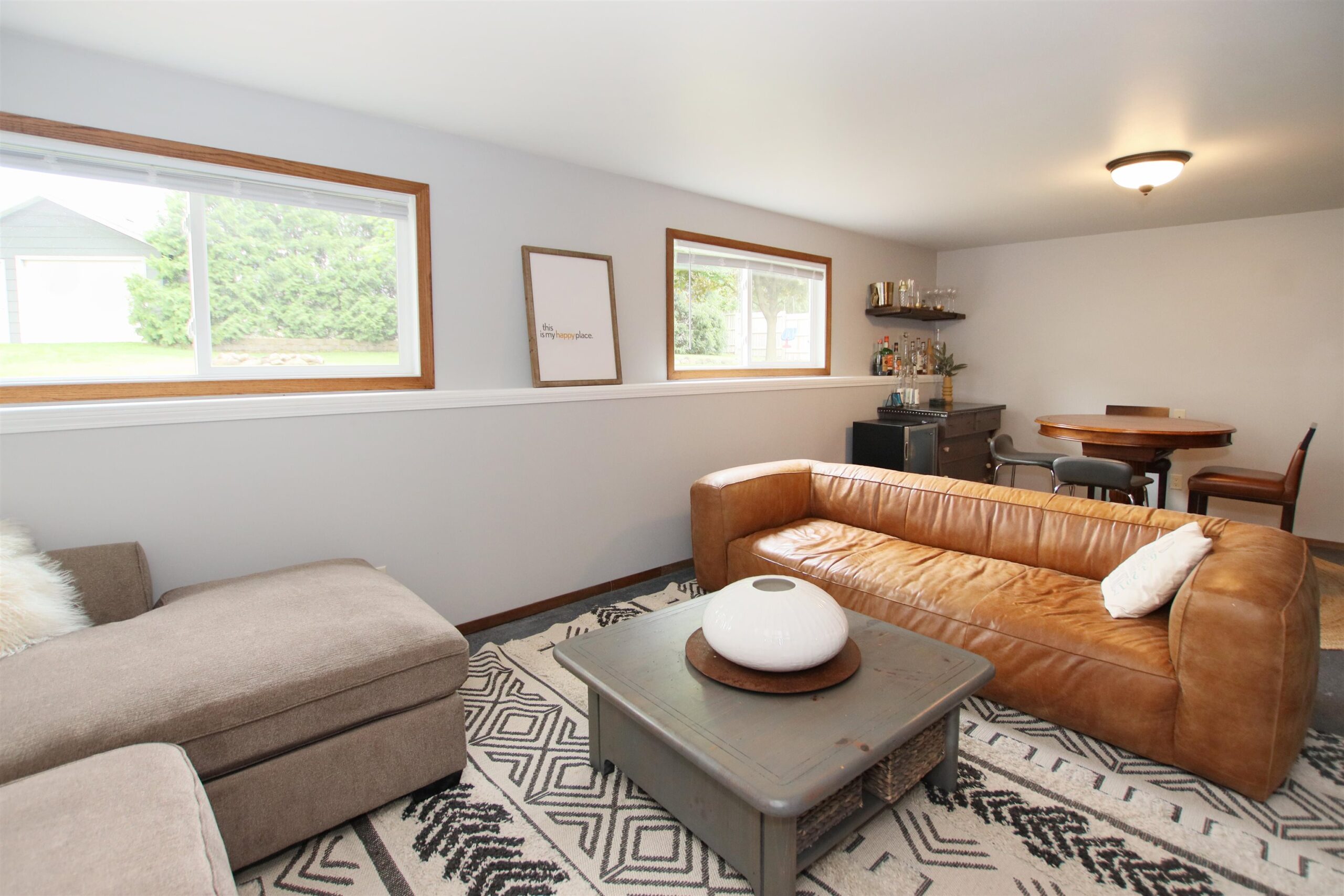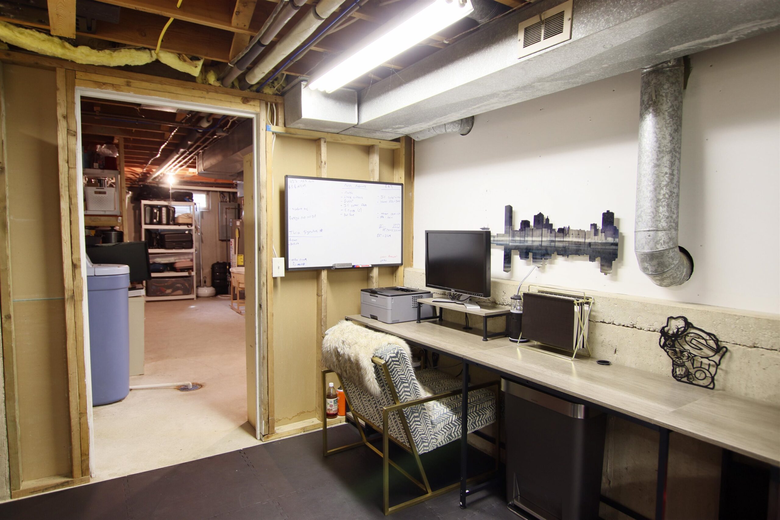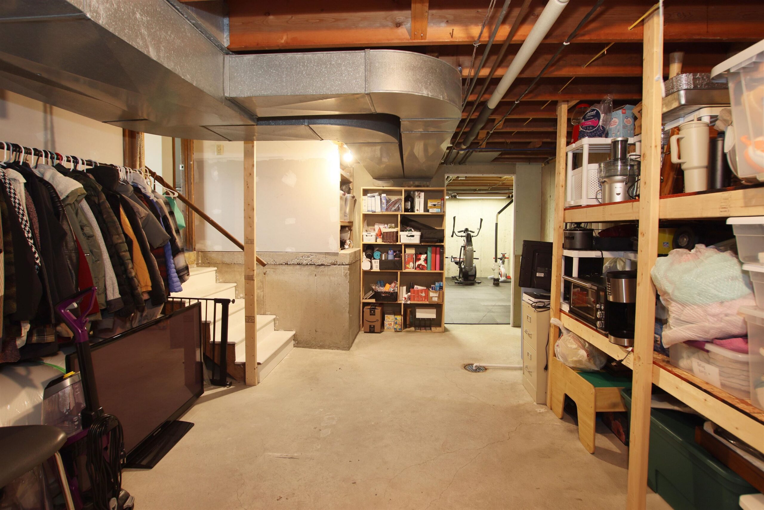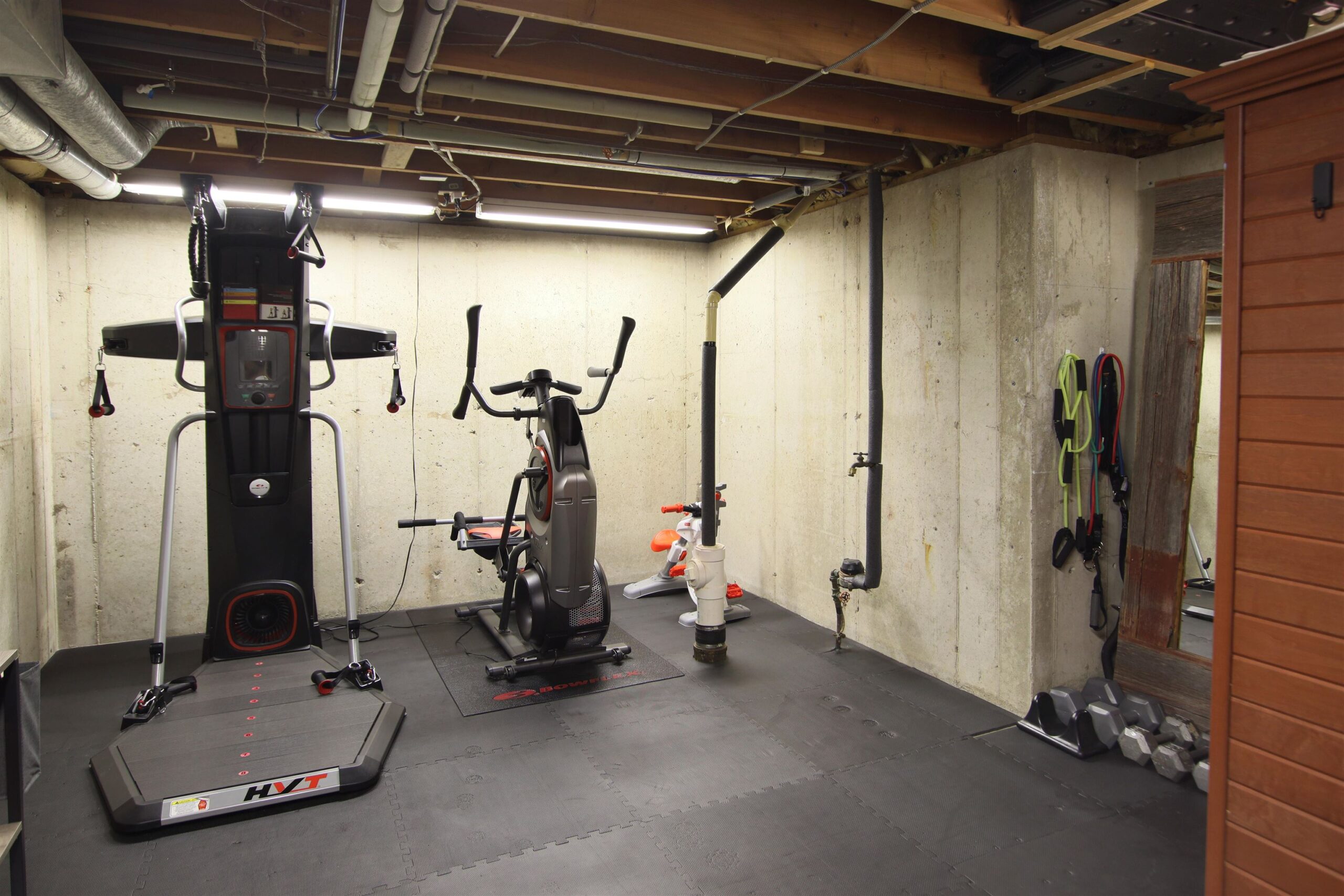 Refrigerator, microwave, dishwasher, oven, washer/dryer, owned water softener, weight room flooring, electric fireplace on main level living room.