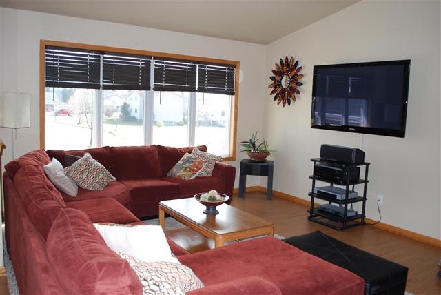 Super 4 bedroom multi-level home across from Middle Schools. Very open floor plan in this well maintained home. Newer master bedroom & bath, lower level family room, plus newer gaming/family room (or even formal dining room!) on the main level, wood floors, spacious kitchen w/ huge island & breakfast bar, stainless steel appliances included, vaulted ceilings, deck & newer stone patio area in private backyard. Room where you need it! 2 car attached garage. Lots of room in this home-a must see!