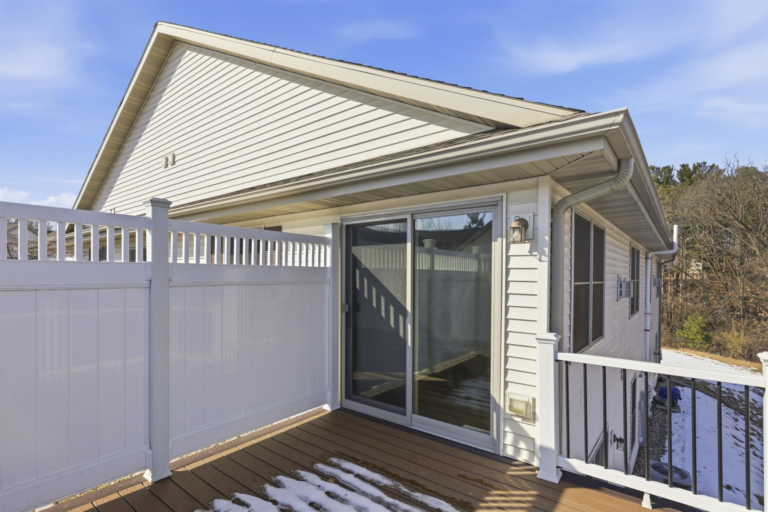 Ready to move in open concept, zero entry two bedroom, two bath condo with peaceful nature views from every window. The kitchen offers a stainless steel appliance package and flows seamlessly into the dining area and living room featuring a cozy gas fireplace. A patio door leads to a private composite deck, perfect for relaxing. The primary suite includes a private full bath. A second bedroom, additional full bath and convenient main level laundry completes the main level. The walkout lower level with daylight windows provides excellent potential for future expansion. Two car attached garage for added storage and convenience.