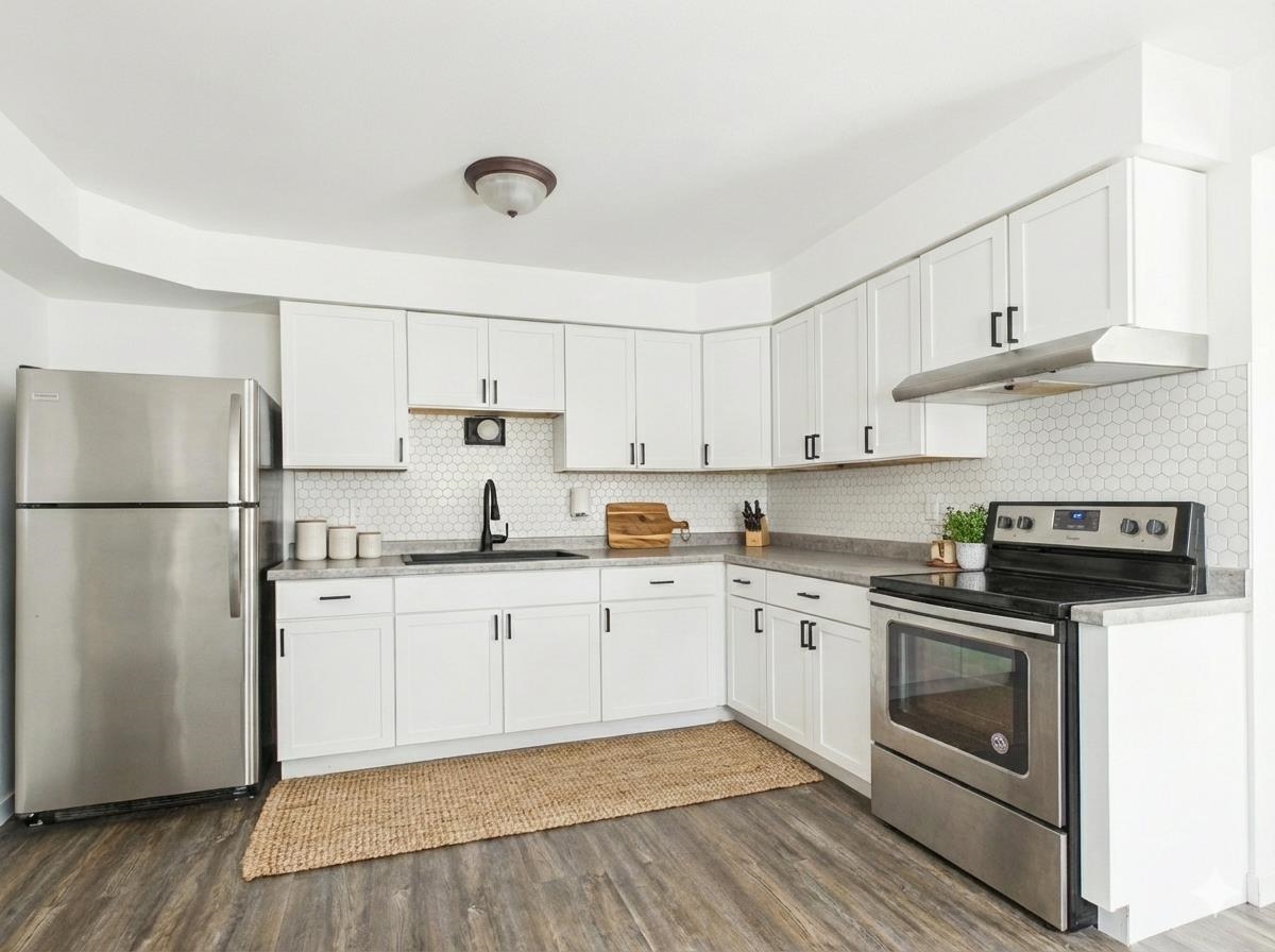 Upper/lower duplex in a prime Oshkosh location tucked into a quiet community just blocks from amenities. Easy access to HWY 41, the college, and everything you will need. Freshly remodeled throughout with luxury vinyl plank flooring, neutral paint colors, brand-new kitchens and baths, stainless steel appliances, updated lighting, and newer vinyl windows. Bright, open living areas flow into the eat-in kitchens with great natural light. Maintenance-free exterior and an attached 2-car garage shared by both units with extra storage. Spacious yard for relaxing or play. Ideal owner-occupant or investor opportunity—vacant lower level ready to move into or rent, while the upper unit is leased through July. Easy access to the lower, 24 hour notice for upper. Some images virtually staged.