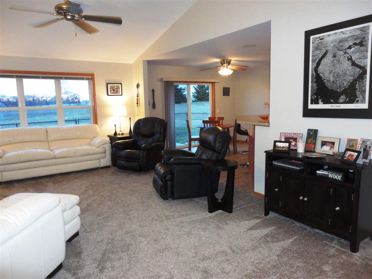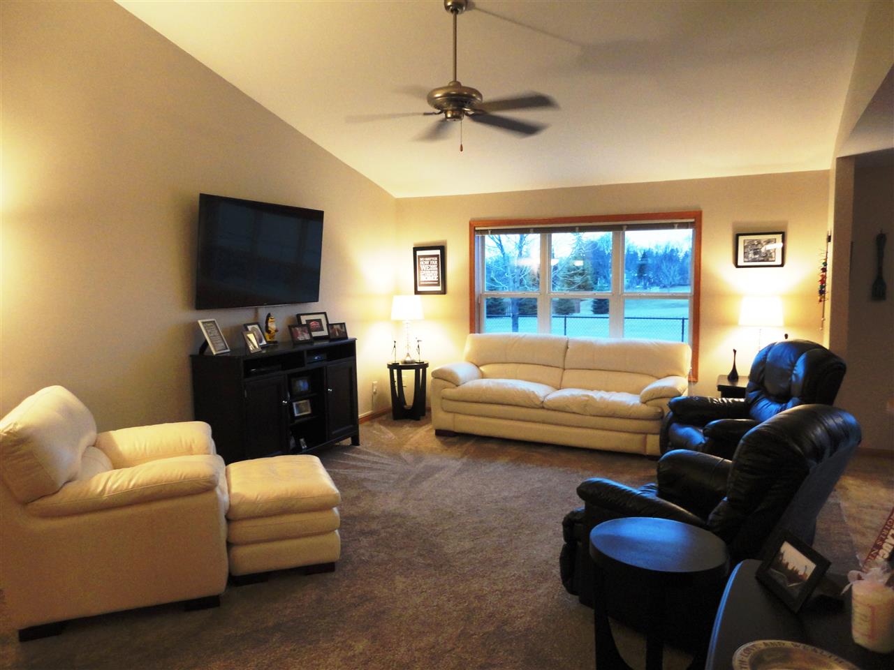 Beautiful open floor plan in this well maintained and updated home with brand new high end carpet & freshly painted. Vaulted ceiling great room with large window offers an incredible view, amazing sunsets, all on over half acre lot. Formal dining, breakfast bar and dinette! Brand new top of the line Stainless Steel appliances. Split bedroom design with large master. Lower level movie room & bar perfect entertaining! Garage recently dry walled, insulated and heater installed. New radon mitigation system.