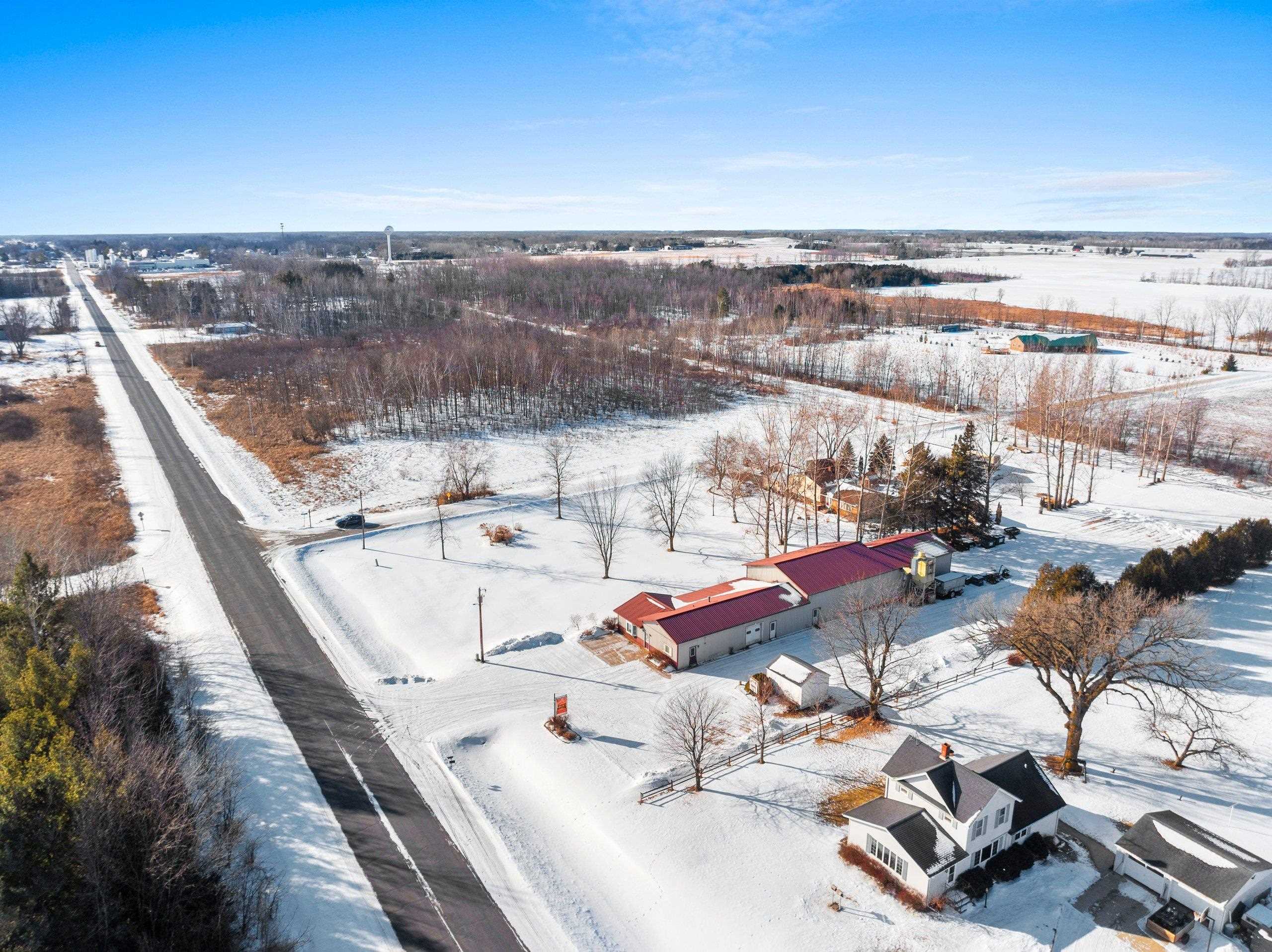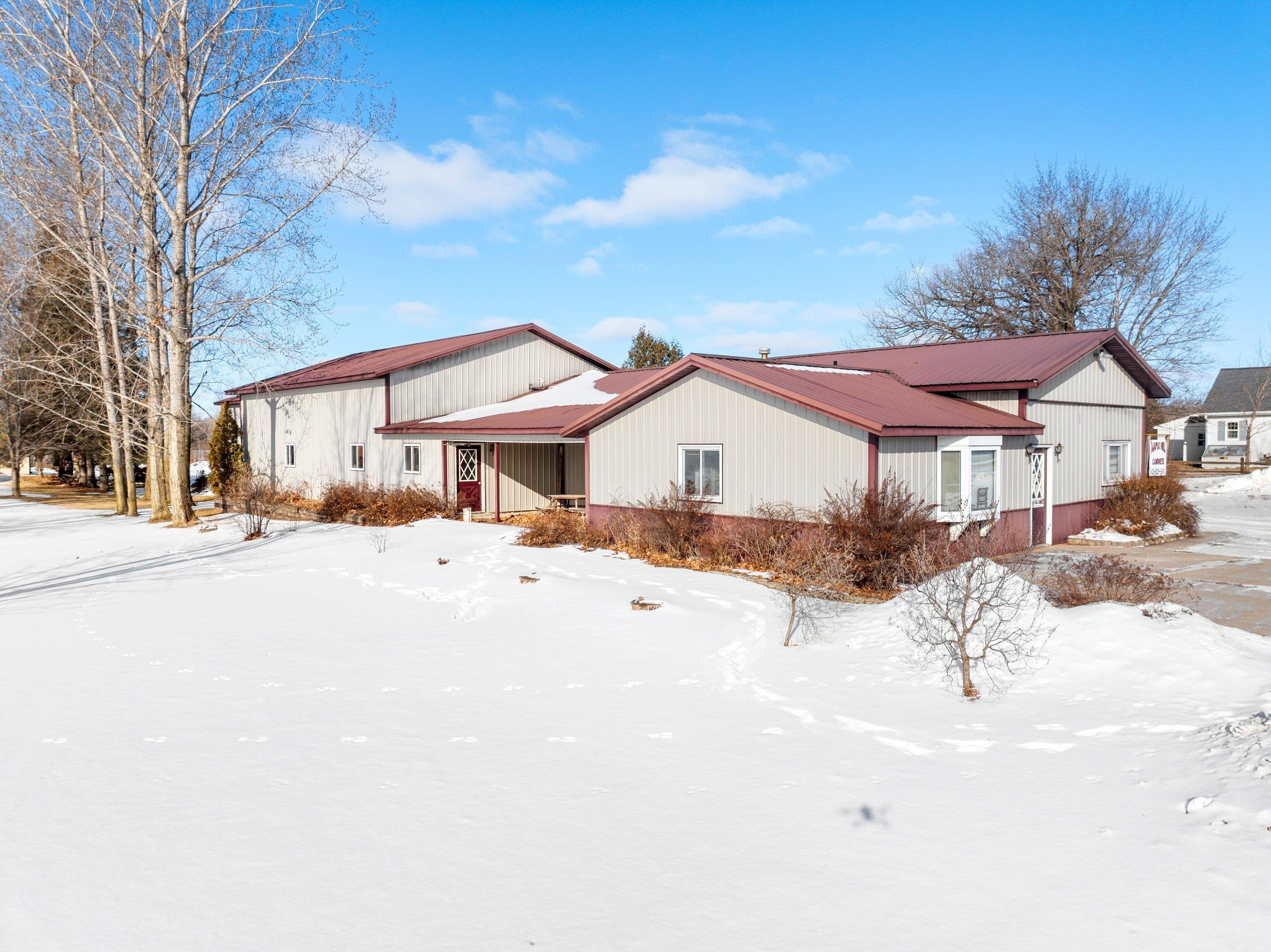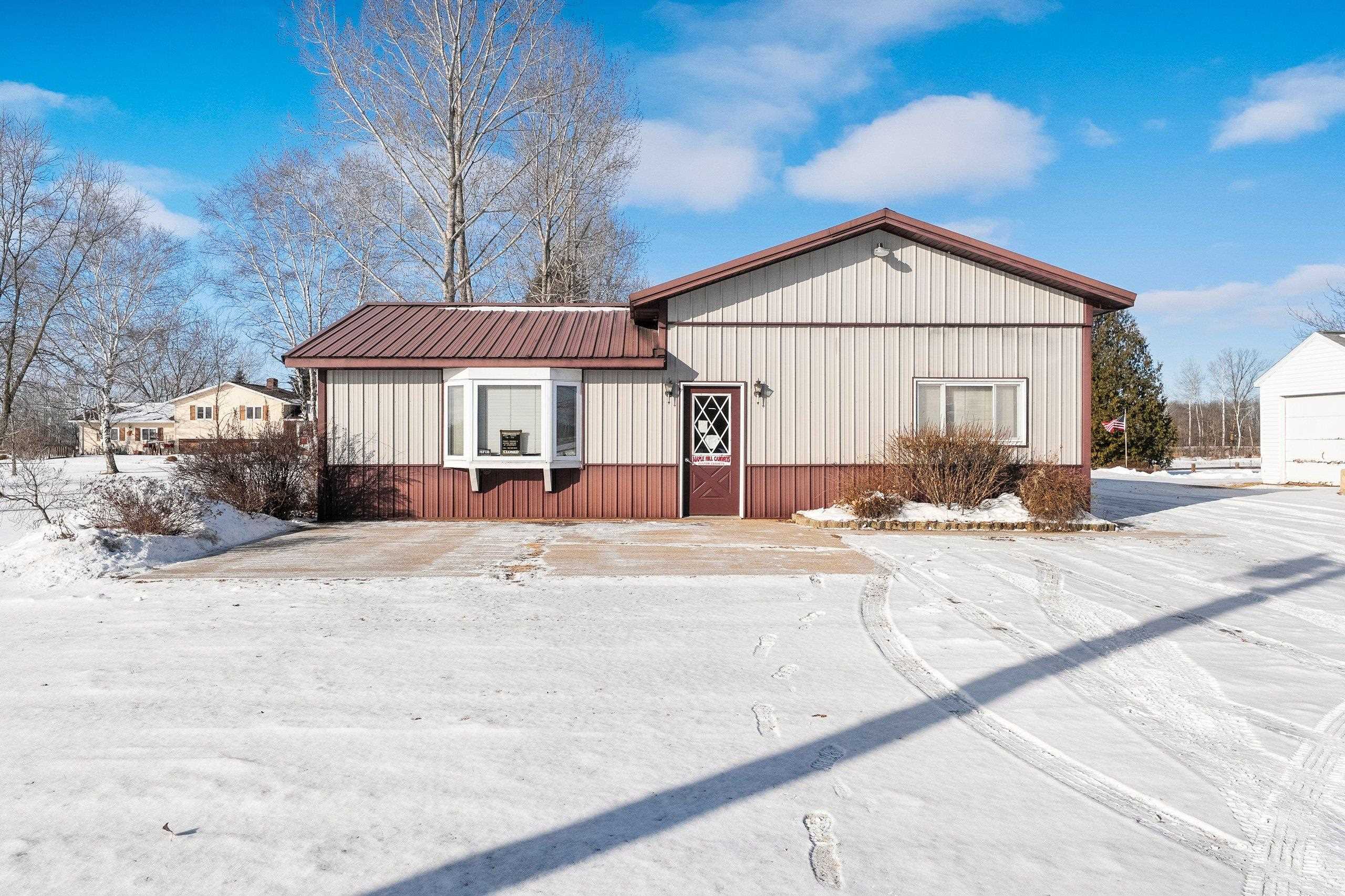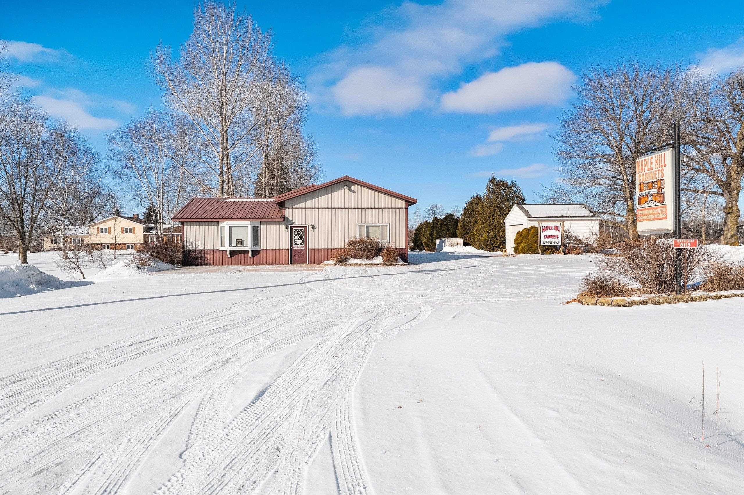 Prime location, endless potential! This versatile commercial property in Lena sits on a one-acre lot just 30 minutes from both Green Bay and Marinette, offering convenient access for customers, employees, and deliveries. The heated retail/warehouse building features a welcoming front showroom with public restroom, plus a break room with a full kitchen that opens to a covered outdoor patio. Three spacious shop or work areas include two overhead doors for easy access and functionality. Durable steel siding and roof add long-term value, and the flexible layout supports a wide range of commercial uses. A small storage shed is also included. Schedule your showing today!