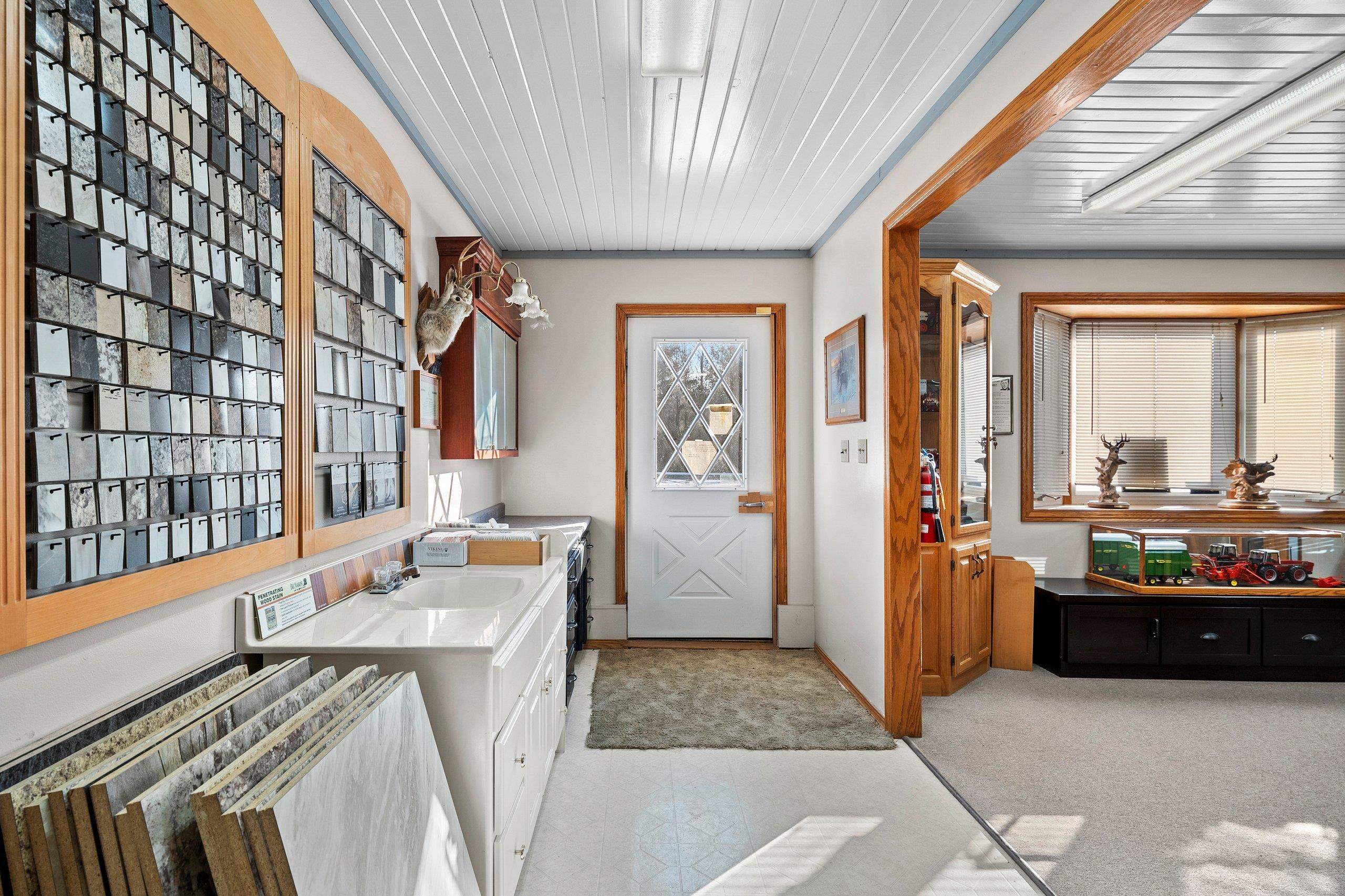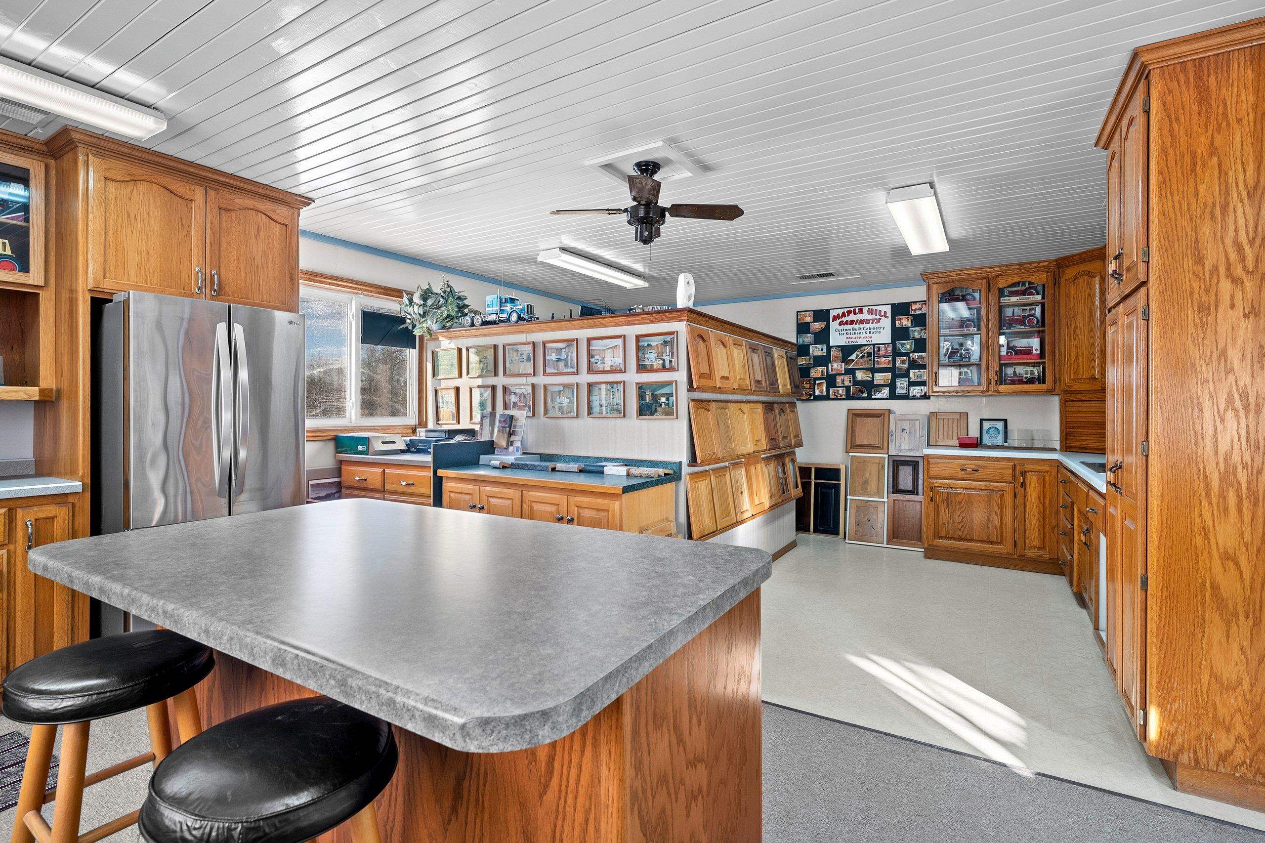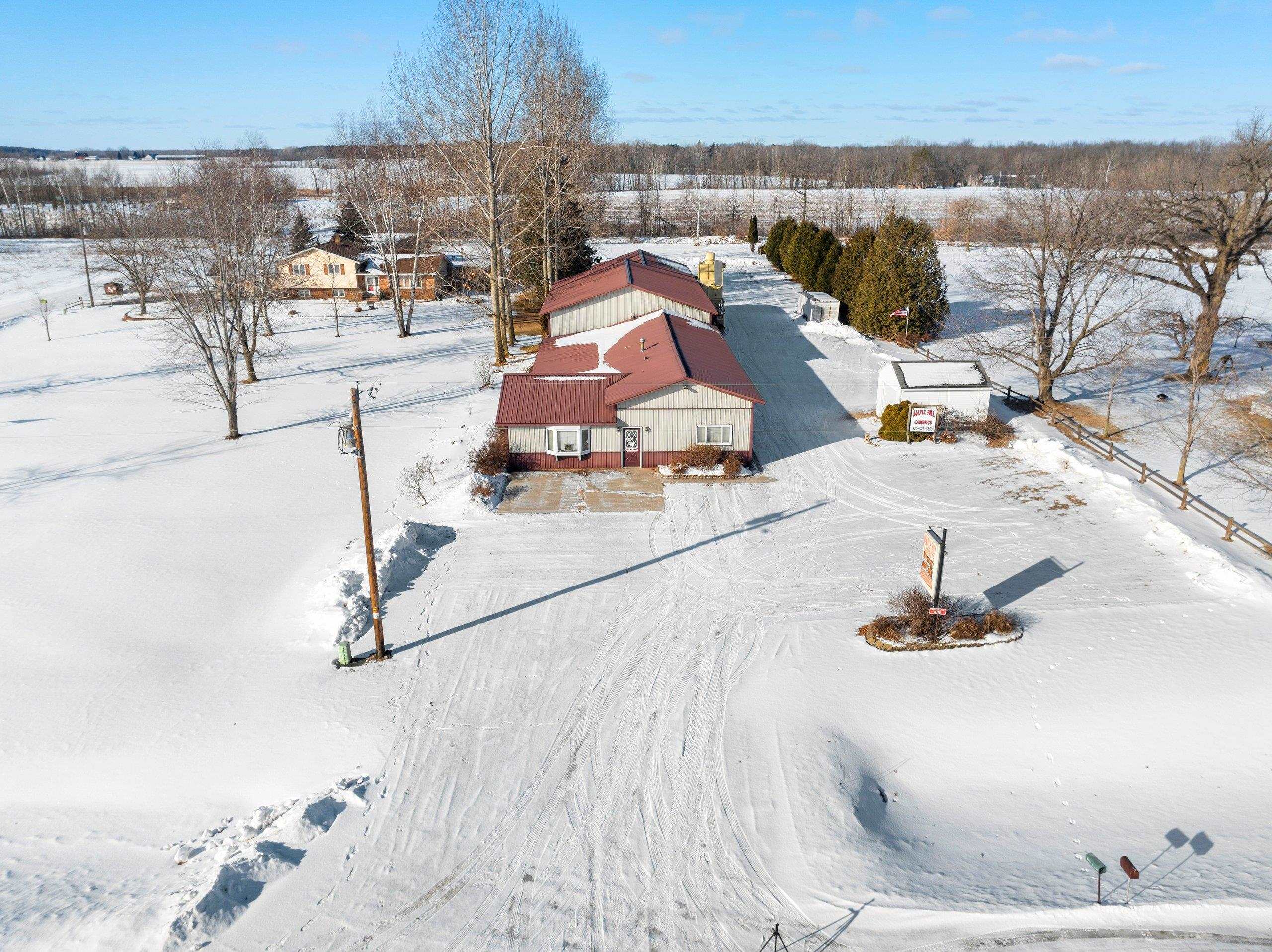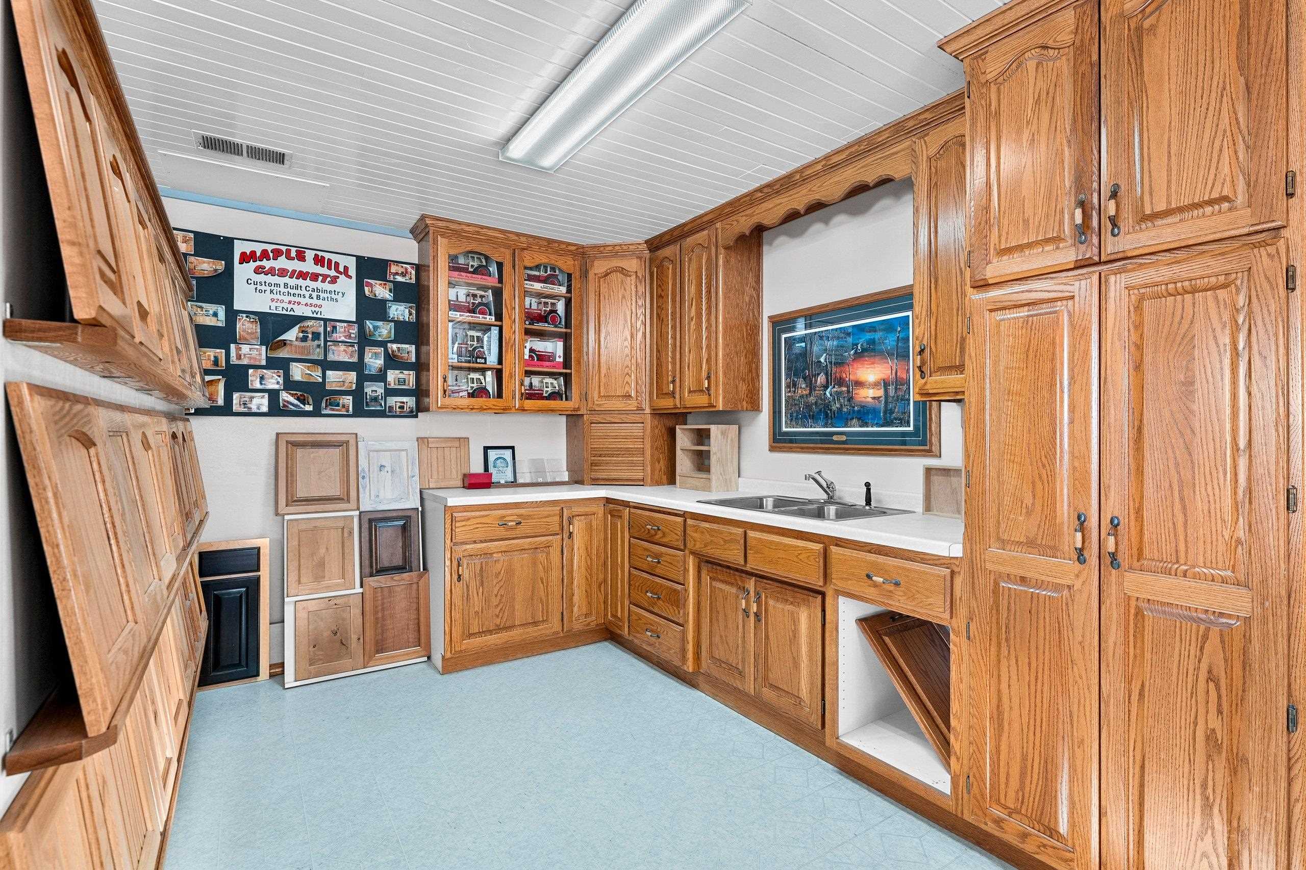 Prime location, endless potential! This versatile commercial property in Lena sits on a one-acre lot just 30 minutes from both Green Bay and Marinette, offering convenient access for customers, employees, and deliveries. The heated retail/warehouse building features a welcoming front showroom with public restroom, plus a break room with a full kitchen that opens to a covered outdoor patio. Three spacious shop or work areas include two overhead doors for easy access and functionality. Durable steel siding and roof add long-term value, and the flexible layout supports a wide range of commercial uses. A small storage shed is also included. Schedule your showing today!