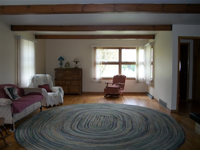 Sprawling ranch has expansive LR w/beamed ceiling, refinished oak floors, & 2 wood burning fireplaces. Large eat-in kitchen, formal dining, and family room. Large open area for office w/built in double desk. Main floor laundry. Completely wheelchair accessible. Ceramic in kitchen & baths. Full unfinished basement is neat and clean. Redwood siding, 2+ car garage, ex parking, 200' X 132' lot, (half of lot could be sold off), garden shed,walking distance to schools & park across the street! Motivated seller!