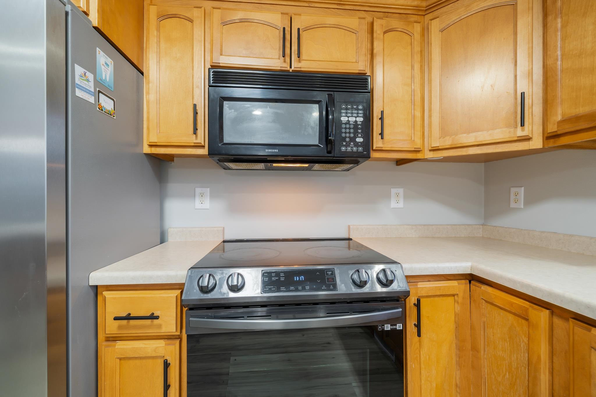Refrigerator, stove, microwave, dishwasher.