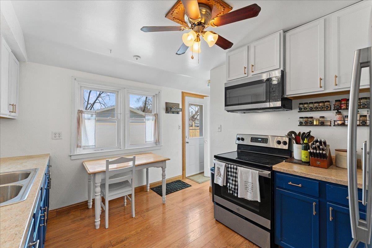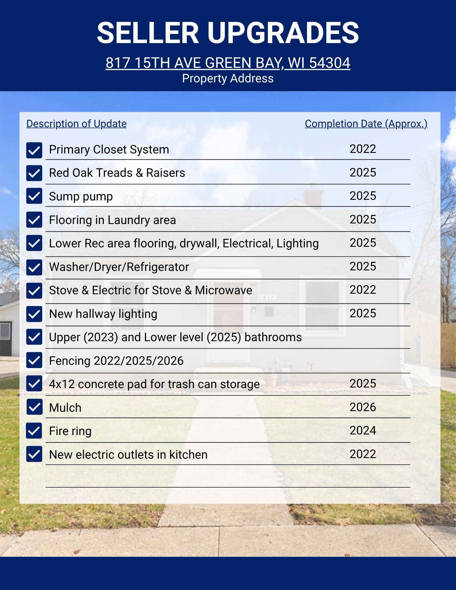 Well-maintained and thoughtfully updated 2-bedroom, 1.5-bath ranch in the heart of Green Bay, just minutes from downtown. Move-in ready with numerous updates, including refinished hardwood floors in the living room and bedrooms, an updated kitchen, a full bath, a half bath, lighting, electrical, lower-level flooring, fencing, newer windows and furnace. The finished lower level provides additional living space with a convenient half bath (unfinished ceiling), bonus room or storage area for your needs with concrete floor. Enjoy the fenced yard and patio for relaxing or entertaining. All appliances are included. See updates. Additional features include a 6-year-old garage and a concrete driveway. Siding appears to be slate. Showings begin 4/15. 48-hour binding acceptance required.