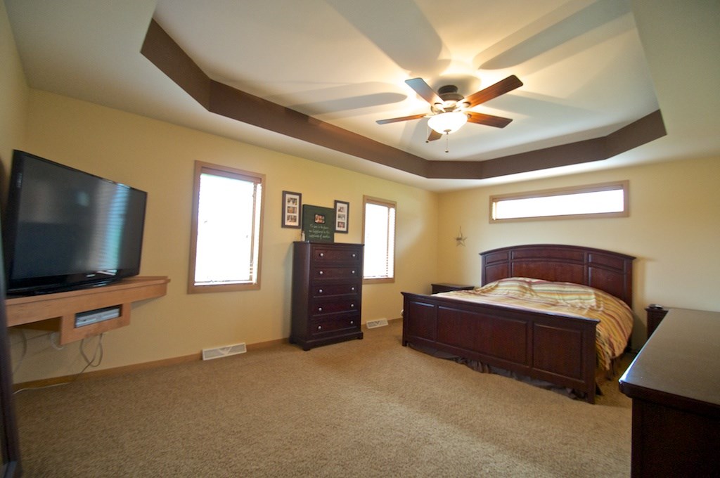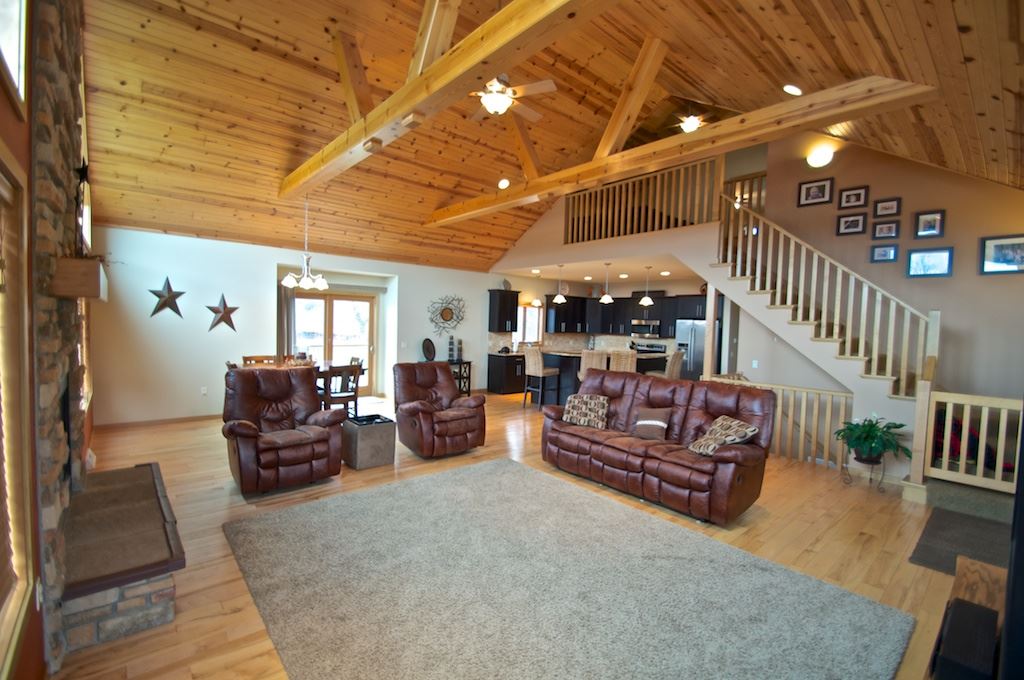 Great value, recently appraised at $400,000! Custom built, open concept, with vaulted ceilings, exposed beams, deeded water access w/ pier, and views of Crystal Lake out the front bay windows. Come relax, live, and enjoy the 3500 square feet of living space. The layout provides room for the whole family and then some. The first floor master suite is 19x13 with a tray ceiling, cozy finishes, granite countertops, fully tiled shower, jetted bathtub, and a massive walk-in closet.