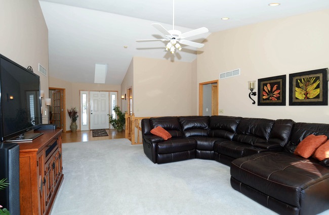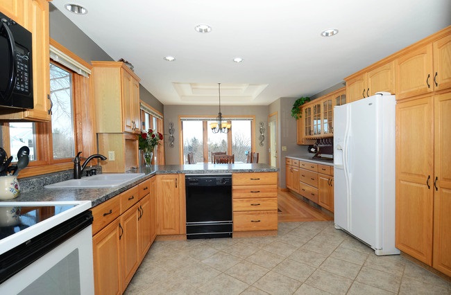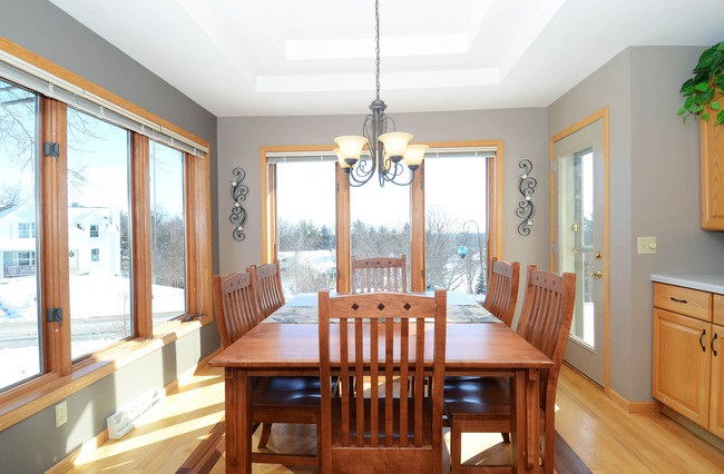Custom built 4 bedroom/3 bath beauty. This substantial home sits proudly on a corner lot bursting with perennial color in summer. Enjoy mornings on your private cedar porch off master suite or evenings in the finished lower level with a hot tub/ fireplace. Built in china hutch, buffet station, bookcases. Brazilian Cherry inlay, hardwoods and ceramic. Freshly painted, double tray ceilings, large deck, 3 car garage and new furnace If you like custom, you'll love this home. 4th bedrm currently office.