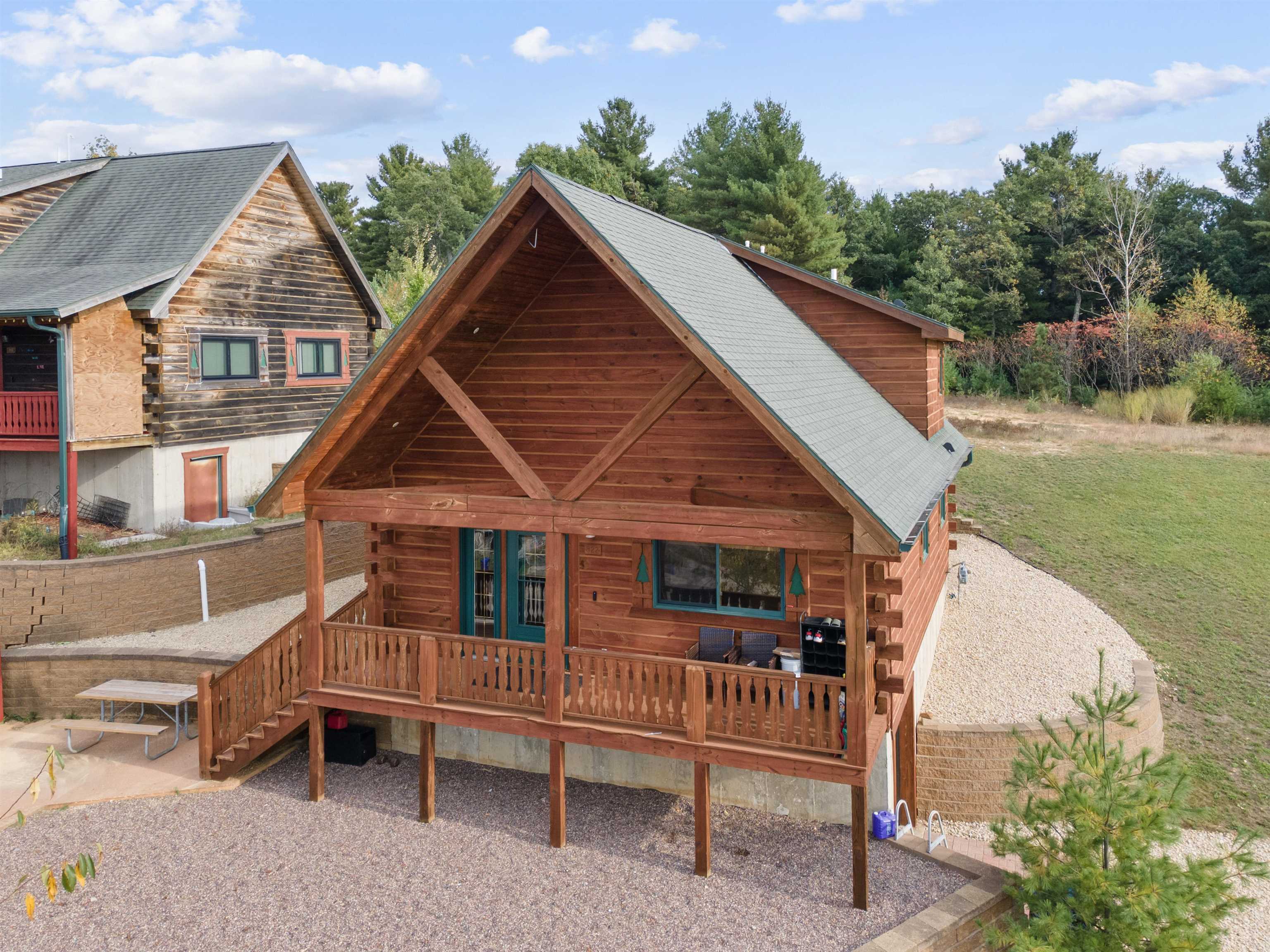 Close to 3 Bears resort and Jellystone, this 3 bed 2 full bath cabin boasts a full usable basement with inside access and a tuck-under 1 stall garage door to park your golf cart inside. The outside and inside has been freshly stained and painted, a new washer/dryer combo installed in 2023, new concrete stairs, gutter and drain on 2nd entry and new bathroom flooring in 2020, and fresh landscaping rocks laid on the driveway, fire pit area and around the house last year. Roof to be replaced before closing. Don't miss out on this beautiful cabin with a hilltop view.