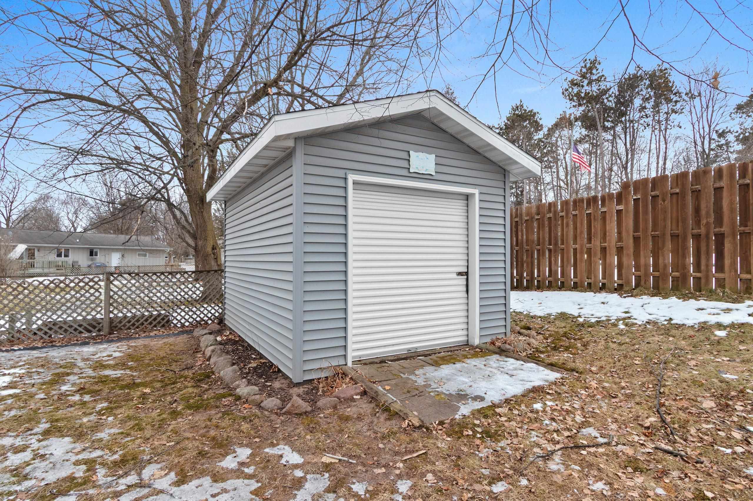 Nestled near Shawano’s schools & parks, this inviting ranch offers a comfortable layout designed for easy, everyday living. A bright, open kitchen & dining area serves as the centerpiece of the home, opening directly to the backyard deck, creating a great space for gathering or relaxing. The main level is thoughtfully arranged with first-floor laundry, 2 full bathrooms, & 3 well-sized bedrooms, including a primary bedroom with dual closets. A spacious living room provides a welcoming place to unwind at the end of the day. The lower level expands your living space with a warm, rustic-inspired family room featuring a bar & gas fireplace—great for entertaining! The outdoor space features a storage shed with an overhead door and removable fencing!Seller to give $1,500 credit to buyer at close.