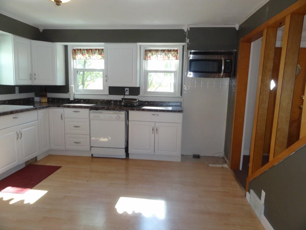 Excellent for first time buyer or someone looking to downsize & have a little privacy! This home sits on almost an acre w/mature trees, partially fenced-in yard & has a 2-car & 1-car detached garages. With four bedrooms, there’s room to roam for everyone! Updated cabinetry, windows & some flooring. Back foyer leads to large family room w/huge walk-in closet. Main floor master & give the kids their own space upstairs! 4th bedroom on main floor could easily be converted to nice main floor laundry room!