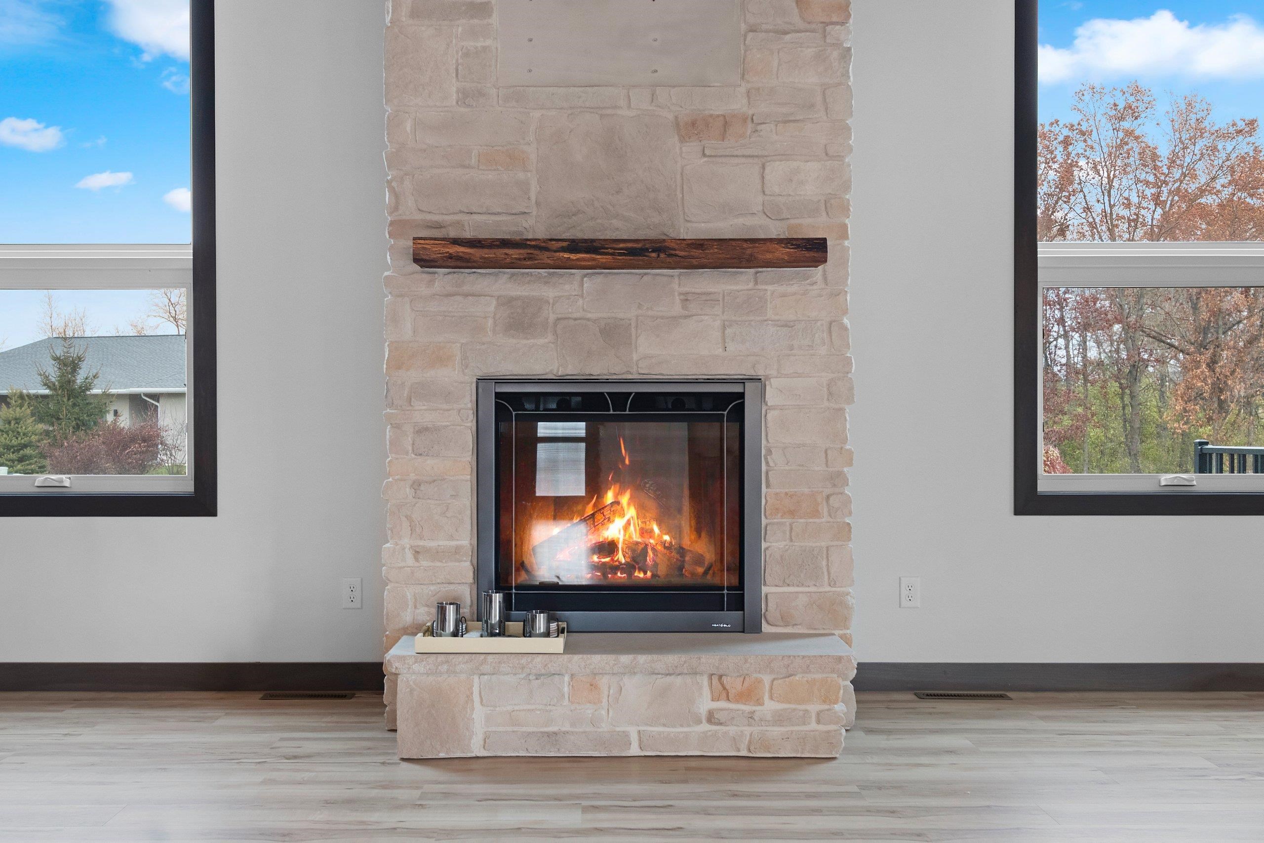 Custom Built 2022 • Smart Siding exterior • HOA covers private road, maintenance & snow removal • Boat slip included • West De Pere Schools Designed for connection and comfort, this custom build blends soaring space with function. A 20' ceiling and gas fireplace set the tone in the living room, leading into a bright kitchen with island, beverage fridge, and walk-in pantry. The adjoining 4-seasons room opens to the deck with Fox River Views. Upstairs, the primary suite feels like a retreat with dual full baths, one with a walk-in tile shower and 10×9 closet & upper-level laundry for convenience. The finished lower level features 9' ceilings, rec room, two bedrooms, full bath, & second laundry w/ utility sink. Heated 3.5-stall garage & mudroom add everyday ease.
