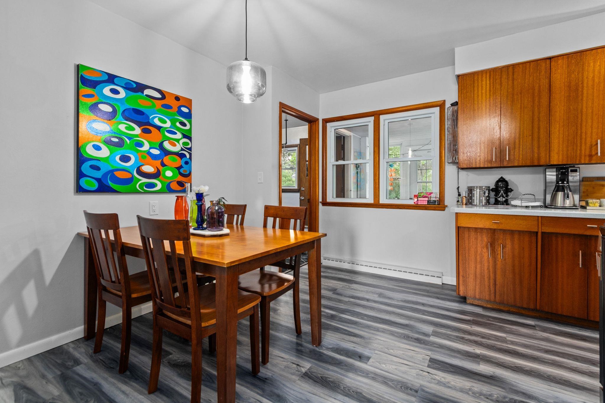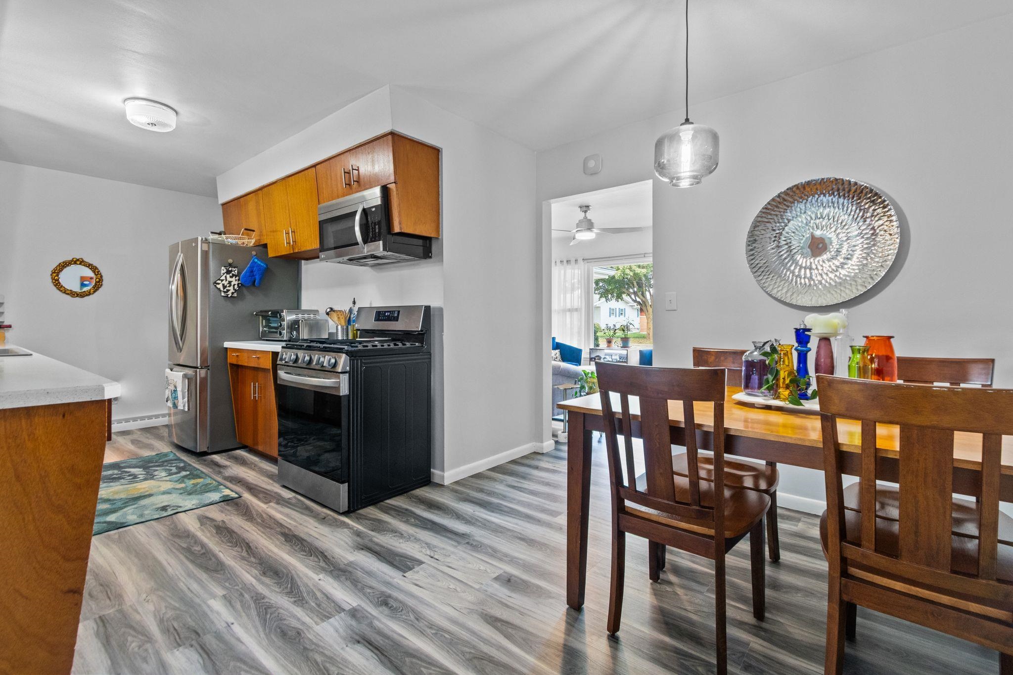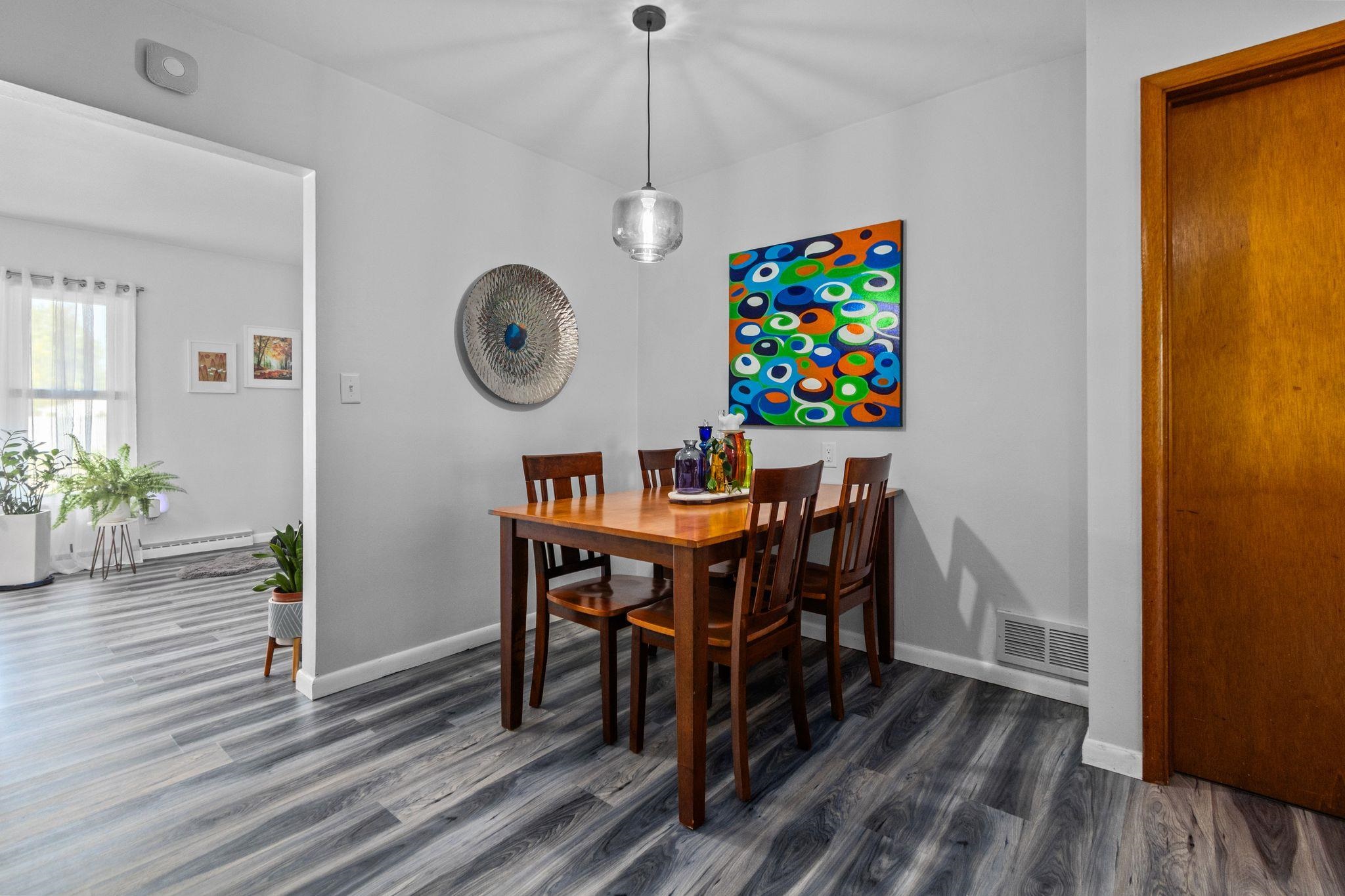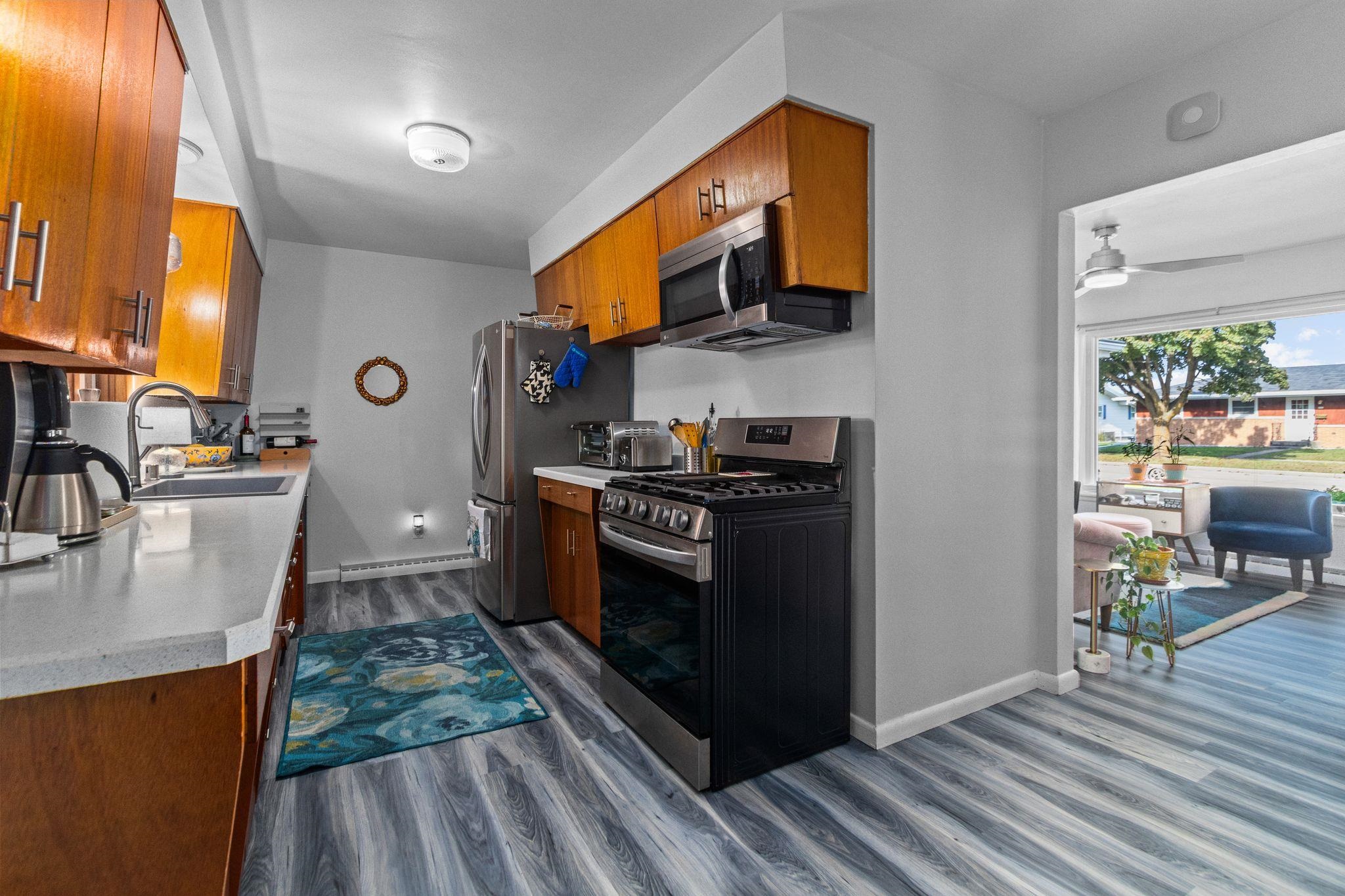 Immaculate and move-in ready, this beautifully updated ranch offers an inviting blend of modern comfort and timeless charm. The spacious living room is filled with natural light from a large picture window, leading into an open, stylish kitchen with rich wood cabinetry, newer countertops, and updated flooring throughout. Enjoy morning coffee or evening sunsets in the bright three-season room overlooking the large, manicured yard perfect for entertaining or relaxing. Additional highlights include an attached garage, refreshed bathroom, generous room sizes, and spotless curb appeal. Nestled in a quiet, desirable neighborhood close to parks, schools, and shopping. A must-see home that shines inside and out.