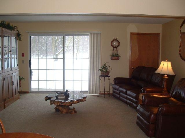 1st floor well maintained ranch condo with no steps! Spacious living room with oversized sliding door leading to patio and overlooking wooded conservancy. Newer laminate flooring in kitchen & dining room. All appliances included. Master suite with walk in closet and ¾ bath. Oversized one car attached garage. Condo fee includes: water (heated and soft) + sewer. Laundry in unit.