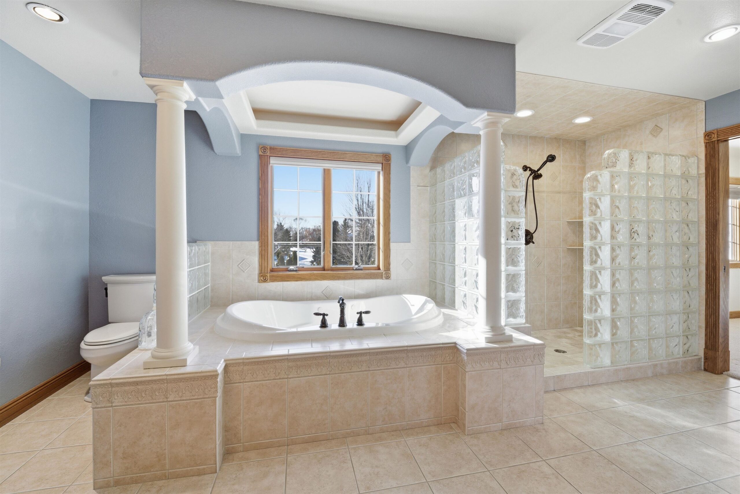 This Exquisite Home in a Premier Southeast Fond du Lac Subdivision is your Opportunity to Live in Luxury! The Estate greets you w/ beautiful Landscaping & an Arched, Brick Entryway that has a gorgeous design that's carried throughout this Custom Built Home. The Living Room has Beamed Ceilings & a 2 Sided Gas FP w/ a Stone & Brick Surround. Beyond that is a Gourmet Kitchen w/ Solid Surface Counters & Gorgeous Cabinetry. There are 4 spacious BR's w/ WIC's & 3 Full & 1 Half Bath. The Luxurious Master Suite has a 14X7 & 8X7 WIC both finished w/ closet storage systems & has a Huge Tiled Bathroom w/ a 7X4 Tiled Shower. The partially finished lower level has 9' ceilings w/ Lookout Exposure & a Huge Rec Room w/ "Red Moose Bar" directly accessible from the 49X30, 4 Car Heated & Finished Garage!