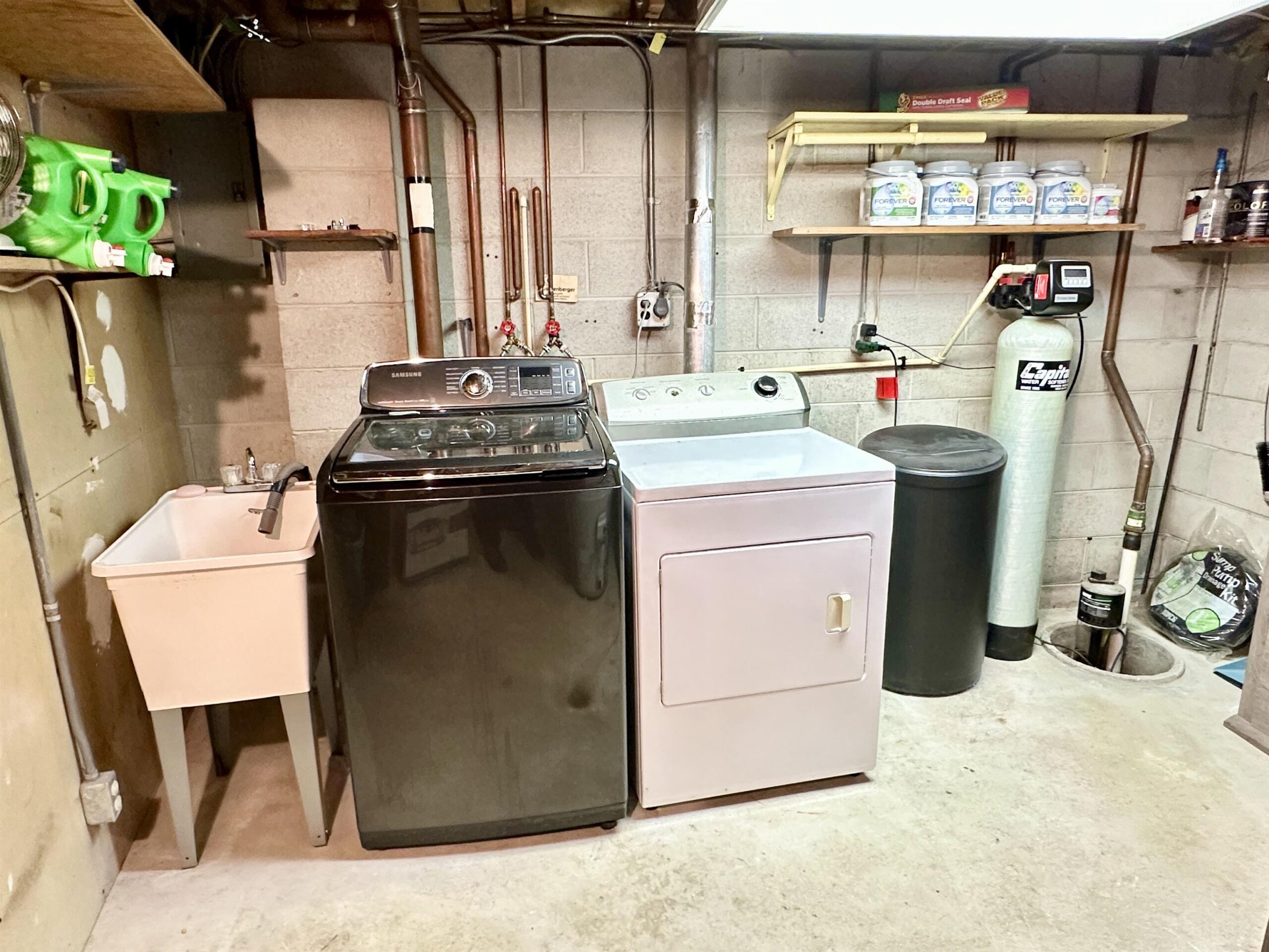 Stove, refrigerator, microwave, dishwasher, refrigerator in basement, washer, dryer, water softener, ring doorbell.