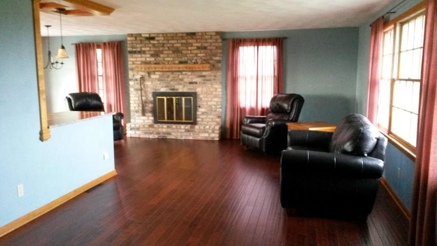 Beautiful views on this 19+ acre property. Ranch style home with exposed lower,has the most beautiful kitchen, whimsical family room, two fireplaces, gas up and wood down, new hardwood, carpet, tile, windows, roofs on home and buildings, fresh paint on barn and shed, private setting, overlooking rolling countryside and Pecatonica River frontage for your canoe......Two car attached garage.