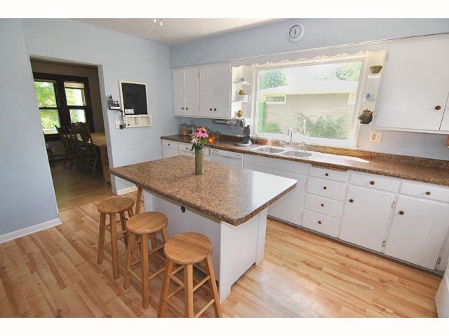 Delightful bungalow on quiet street one block from park and within easy walking distance of schools and downtown. Hardwood floors and original woodwork. Large kitchen with island/breakfast bar. Huge walk-in-closets in each of the three bedrooms. Covered patio in back. Brand new driveway and front path and plenty of lot space to add a one- or two-car garage if you'd like. Large yard surrounded by cedar picket fence and welcoming front porch provide lots of places to relax or play.
