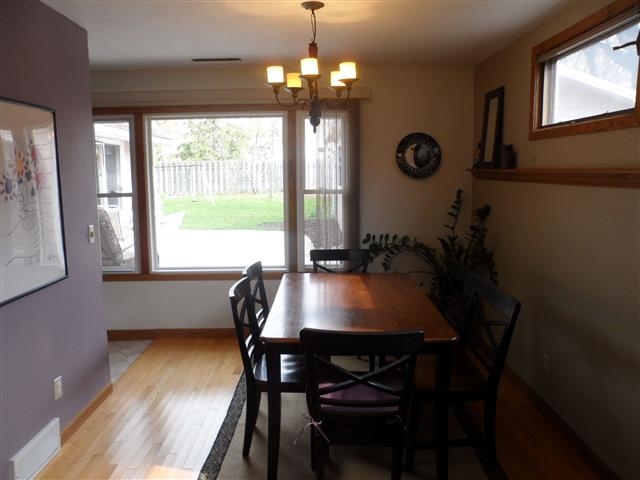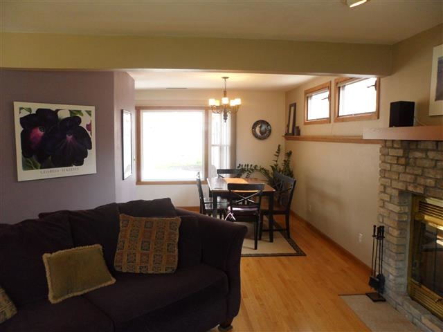 Updates abound in this well maintained home! 3 bedrooms, 2 full baths, flowing floor plan on a quiet street. Featuring hardwood and ceramic tile flooring, wood burning fireplace, and updated kitchen & bathrooms. Large master bedroom includes vaulted ceiling, walk in closet, full bathroom and access to private patio/fenced in back yard. Water heater (2010), windows (2007), furnace(2005), roof (2005). Walking distance to Warner Park (Mallards, Rhythm & Booms, bike trails, dog park) and elementary school.