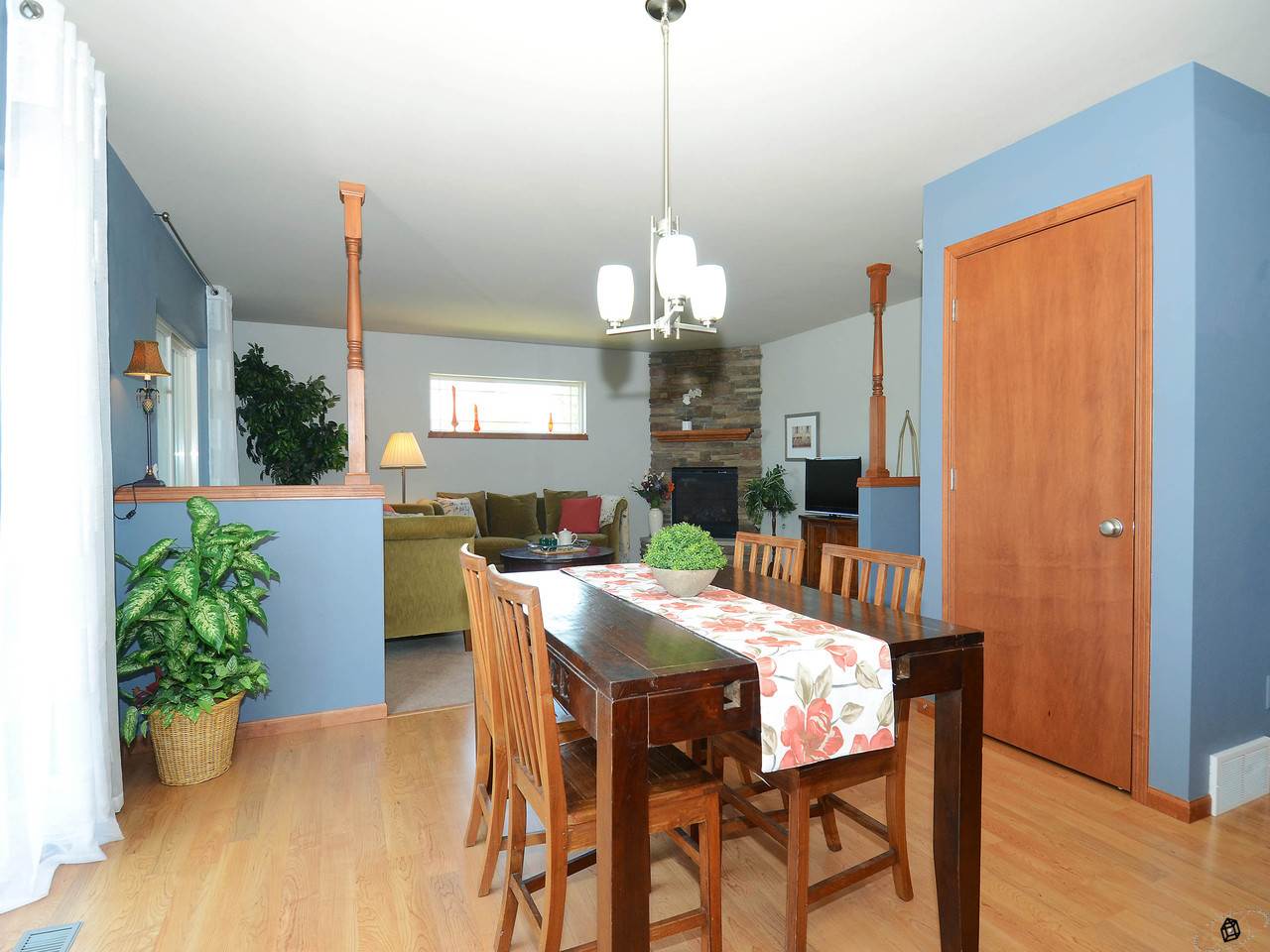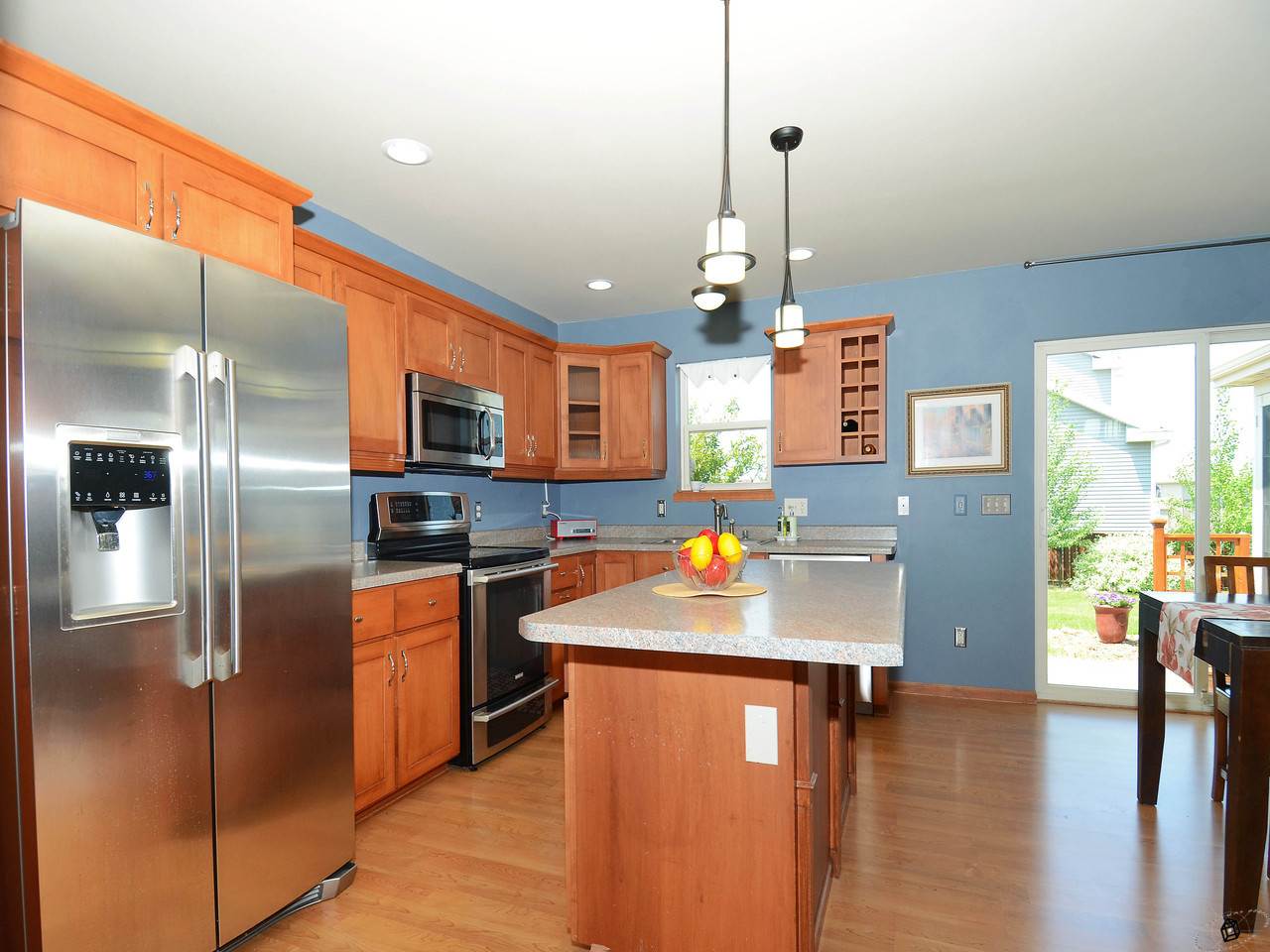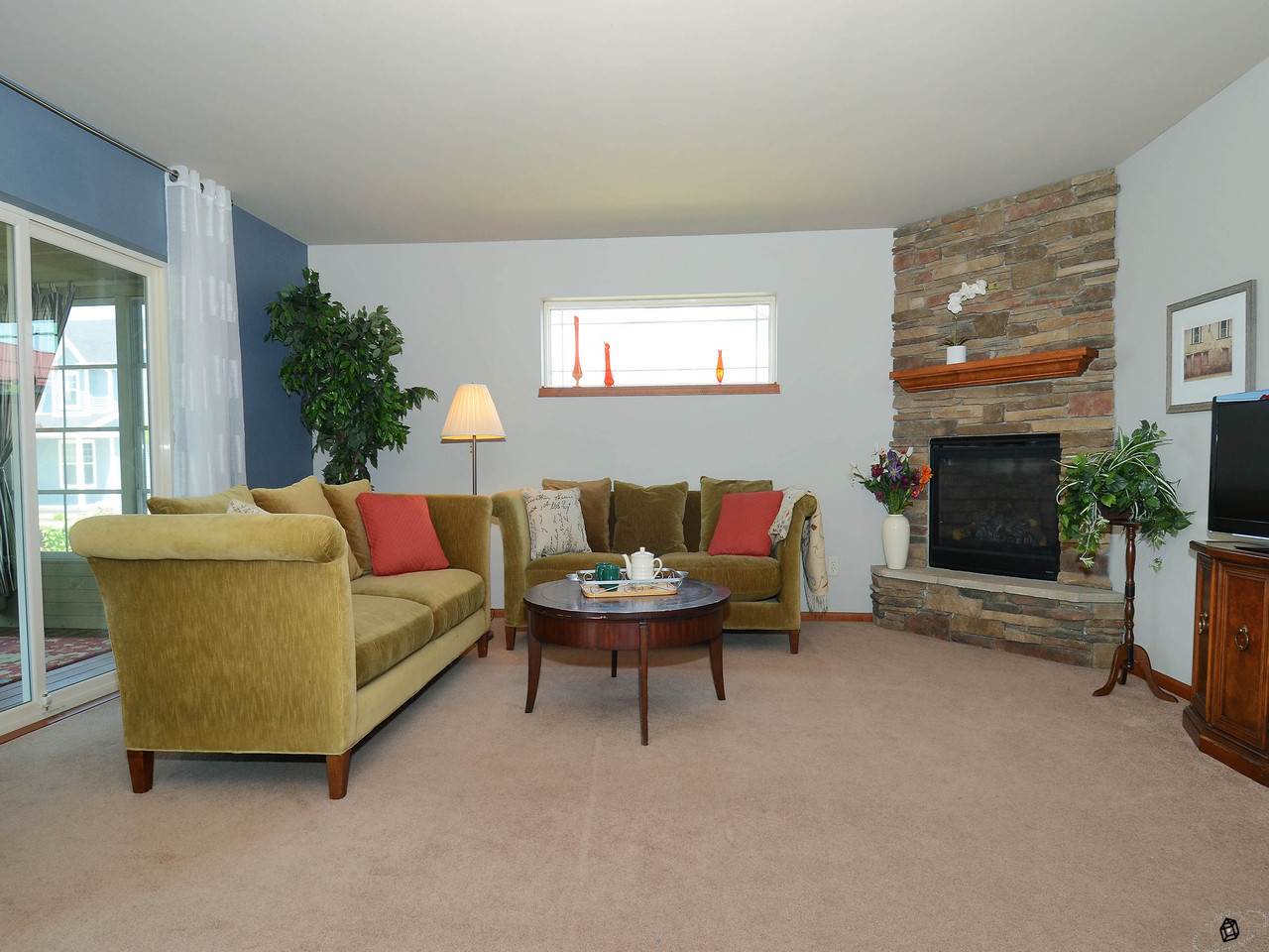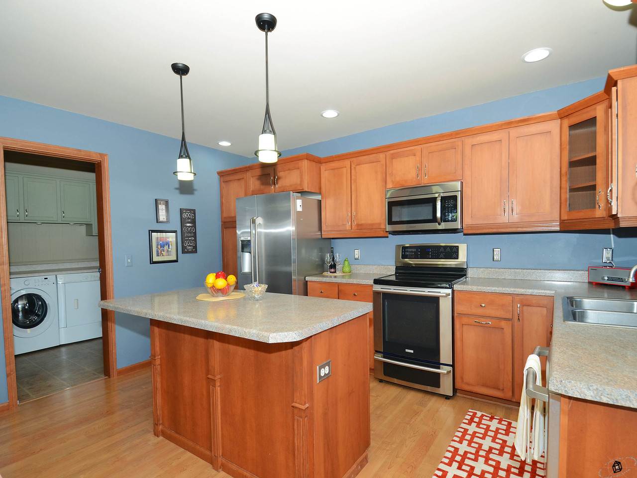Relax on your 3 season porch and enjoy the "prettiest yard in the neighborhood". Fenced yard with stamped patio and landscaping provides privacy and room for a garden. Open floor plan with numerous custom upgrades including a stone fireplace, maple woodwork, chair rails & crown moldings throughout. Fantastic mudroom area with cabinetry, folding area and storage. Oversized garage. Energy efficient! Walk to the elementary school and playground, neighborhood park and walking trails.