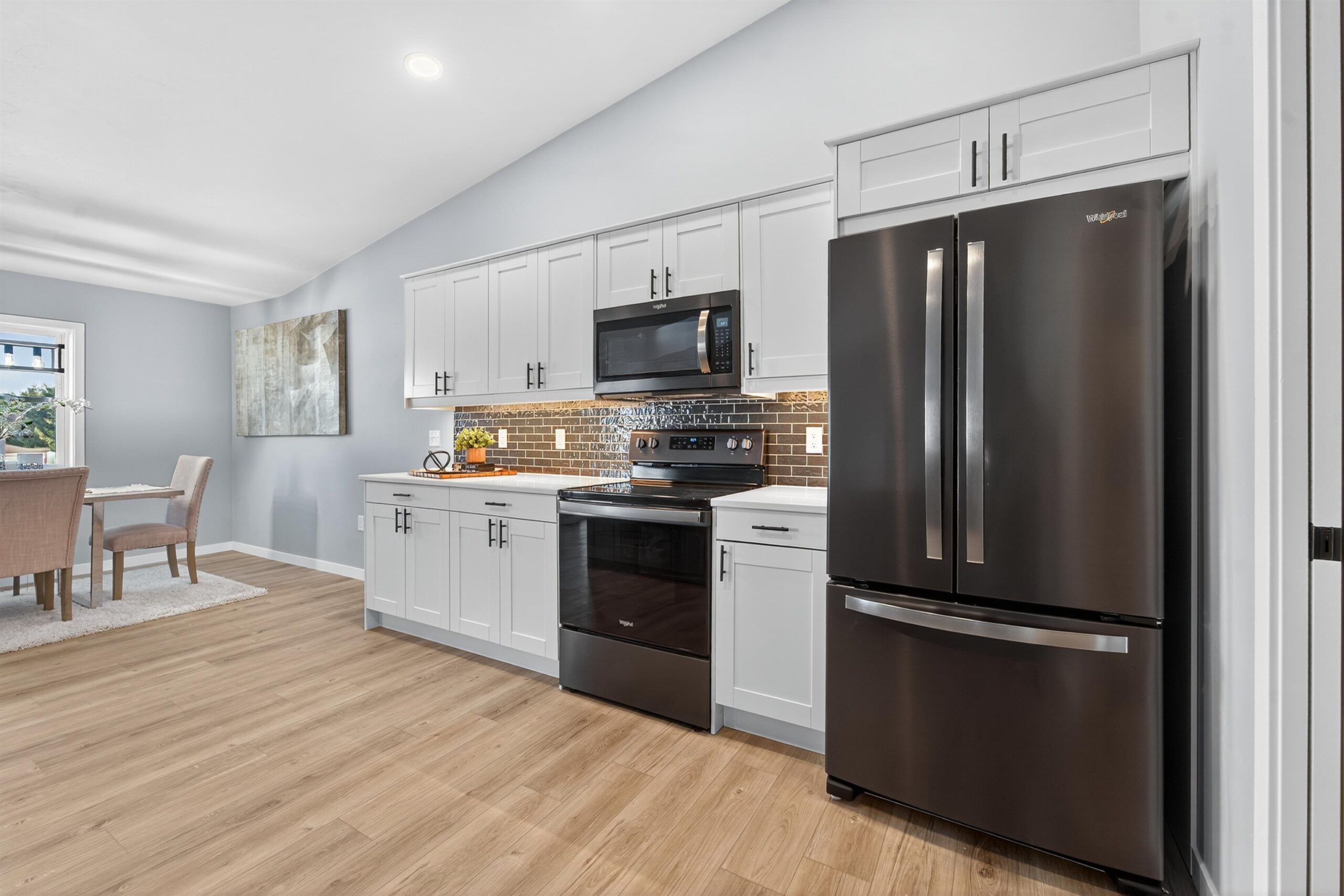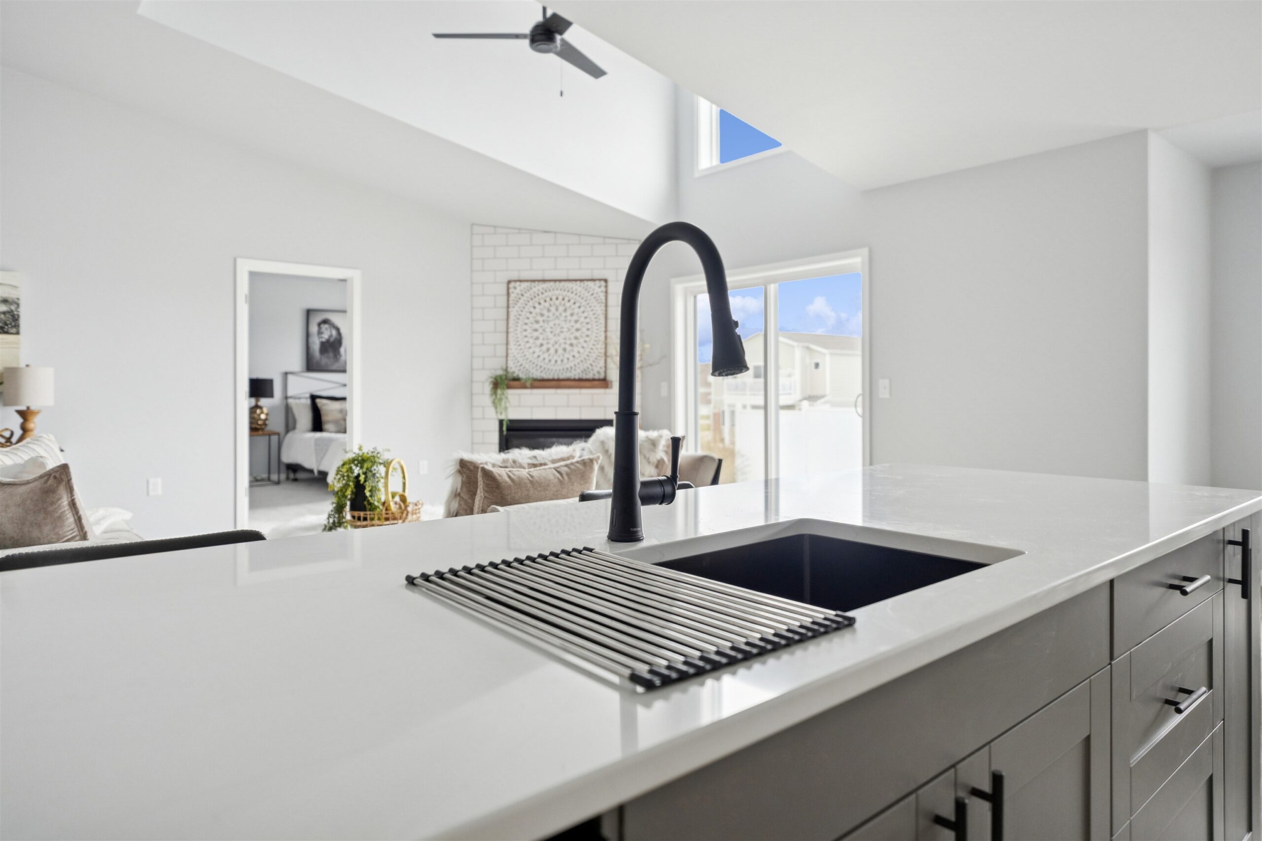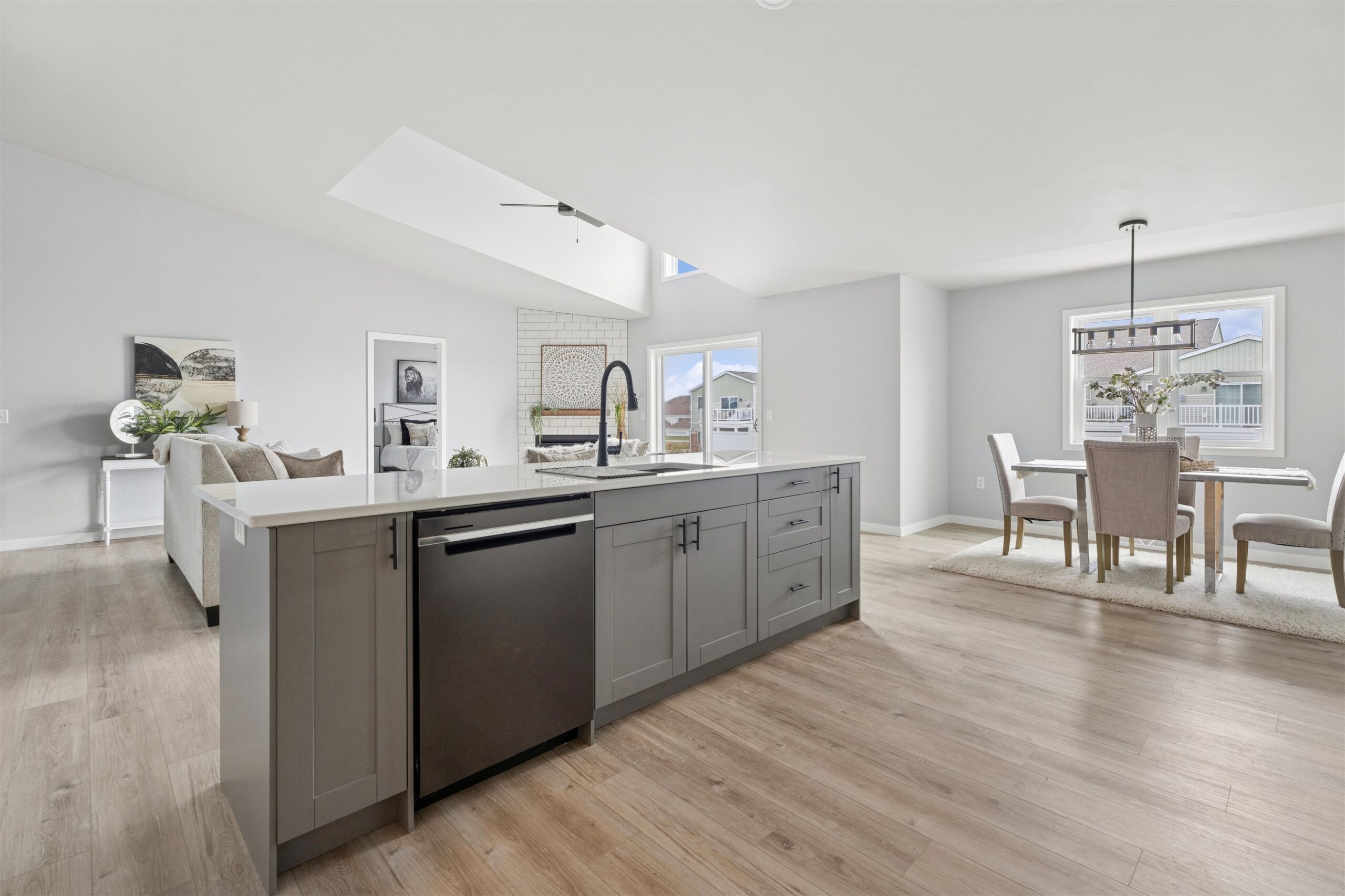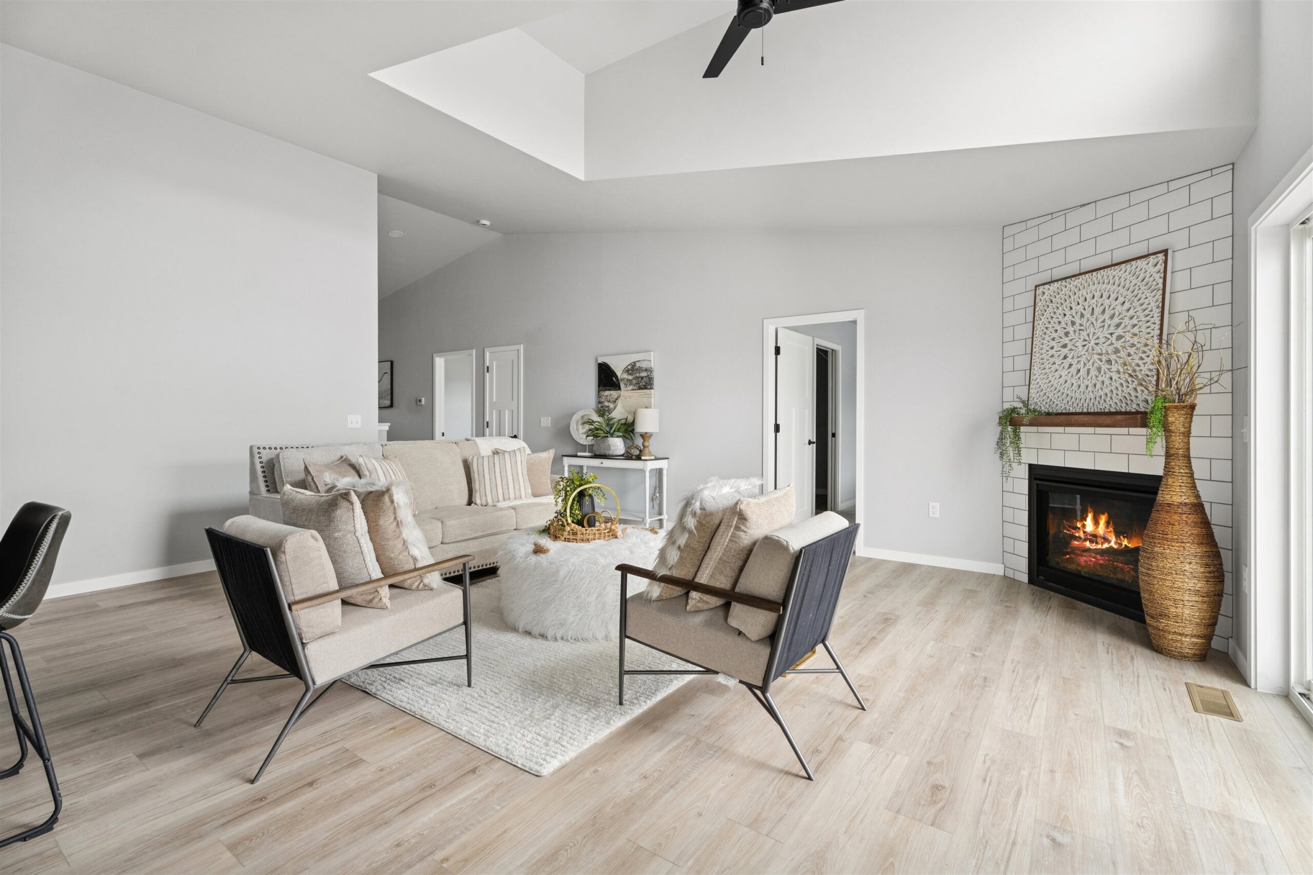 Quality-built condo featuring zero-step entry through the garage! Step inside to soaring cathedral ceilings in the living room accented by a cozy gas fireplace. The open-concept layout flows into the kitchen with Quartz countertops, glass back splash, black stainless-steel appliances, center island, pantry and a spacious adjacent dining area. The primary bedroom offers a walk-in closet and a private suite bath with a walk-in shower. Two additional generously sized bedrooms share a full main bath. Convenient first-floor laundry adds ease of living with washer and dryer included. The desirable lower level includes 3 egress windows—perfect for your future finishing needs. Enjoy the low HOA fee of $200 per month and plenty of surrounding green space.