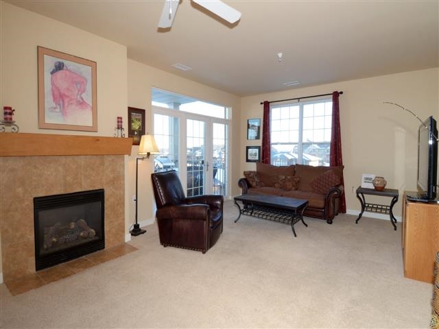 Crosswinds is located on Hawks Landing Golf Course! Amazing view of golf course and country side. Well maintained northwest corner, garden style condo features granite, stainless appliances, gas fireplace, deck and spectacular views! Elevator to 2 parking spaces & storage. Join golf, pool & tennis for add'l fees, all within walking distance.