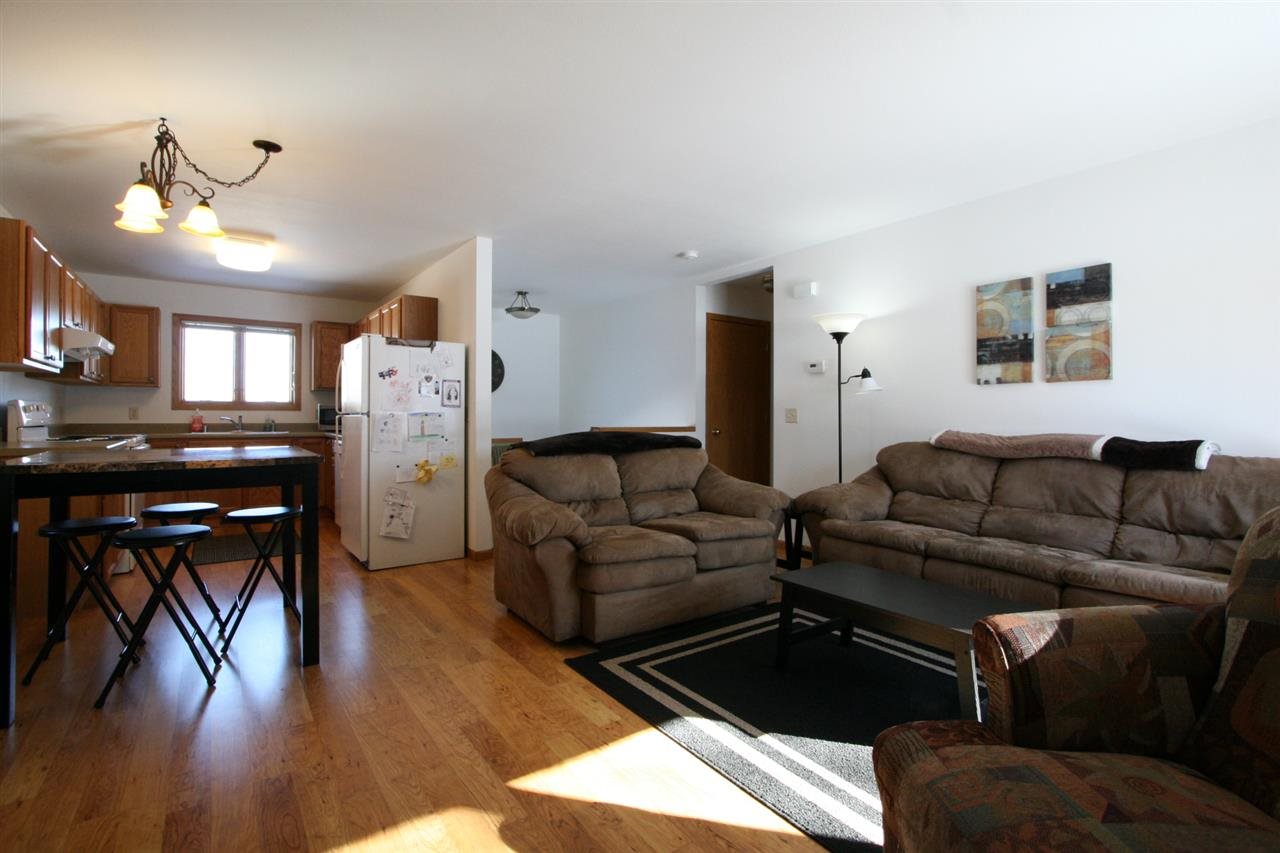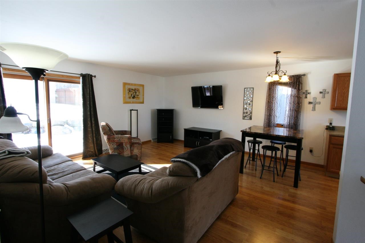 Well maintained zero lot line single family home conveniently located near Main Street shops, restaurants and more! Split level home features brand new laminate hardwoods throughout the upper level and stairway. Large, open concept living/dining room and kitchen. Spacious master bedroom and full bath. Patio doors lead to the large, fully fenced backyard with 24x24 shed/shop & patio. 2 spacious bedrooms downstairs, 2nd bath all roughed in and ready to finish plus laundry & storage. 1.5 car attached garage.