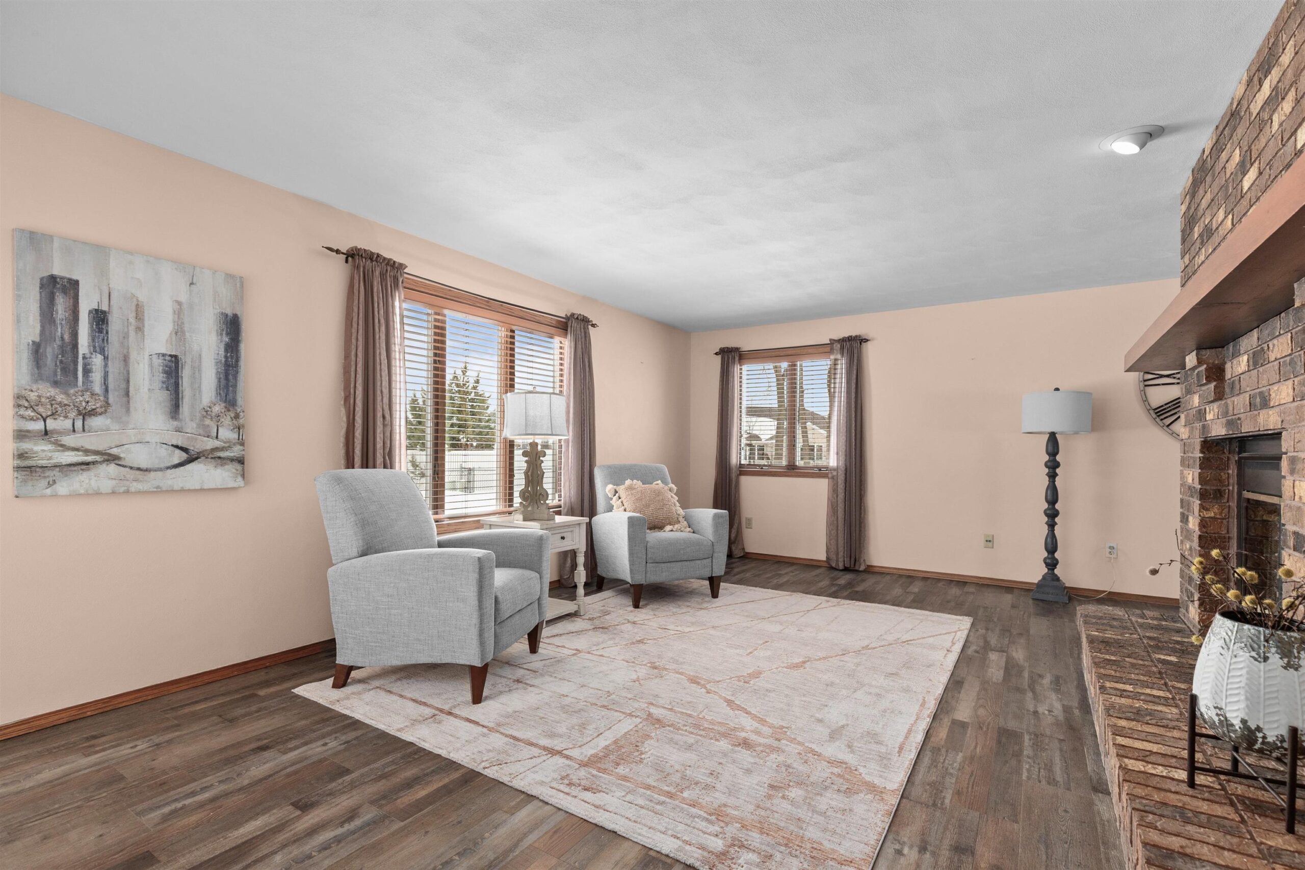 Quality-built ranch featuring a distinctive floor plan that truly stands out from the ordinary. At the heart of the home, a massive brick fireplace creates a stunning focal point positioned between the living room and family room offering warmth, charm, and ambiance to both spaces. The kitchen offers a dedicated space complete with abundant cabinets, generous counter space, and included appliances. Primary bedroom includes a private bath and walk-in closet. Main floor also features two additional bedrooms, a full bath, and a laundry closet with washer and dryer included. Full basement offers excellent potential to finish and customize to your needs. Two car attached garage and a fenced in back yard complete this wonderful home. Seller requests a 48 hr deadline for acceptance.