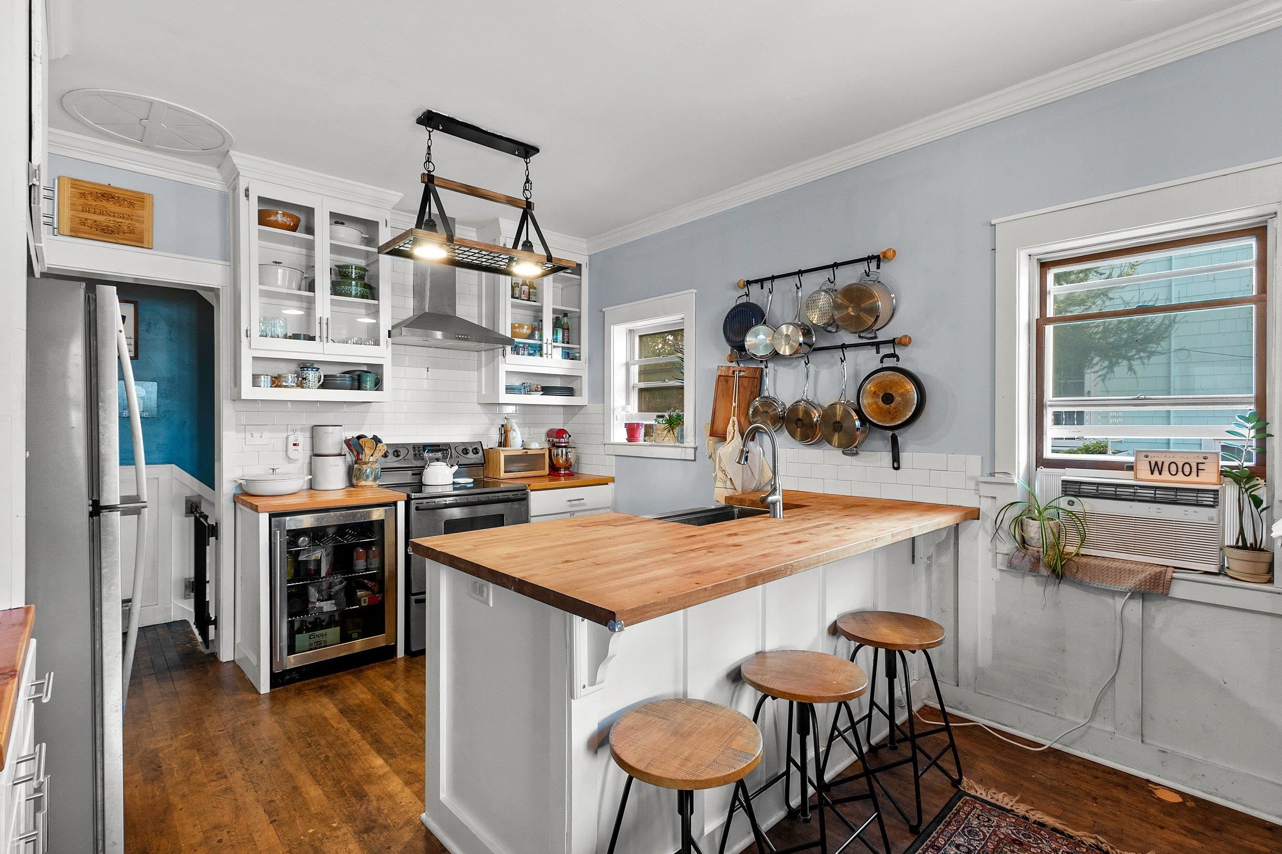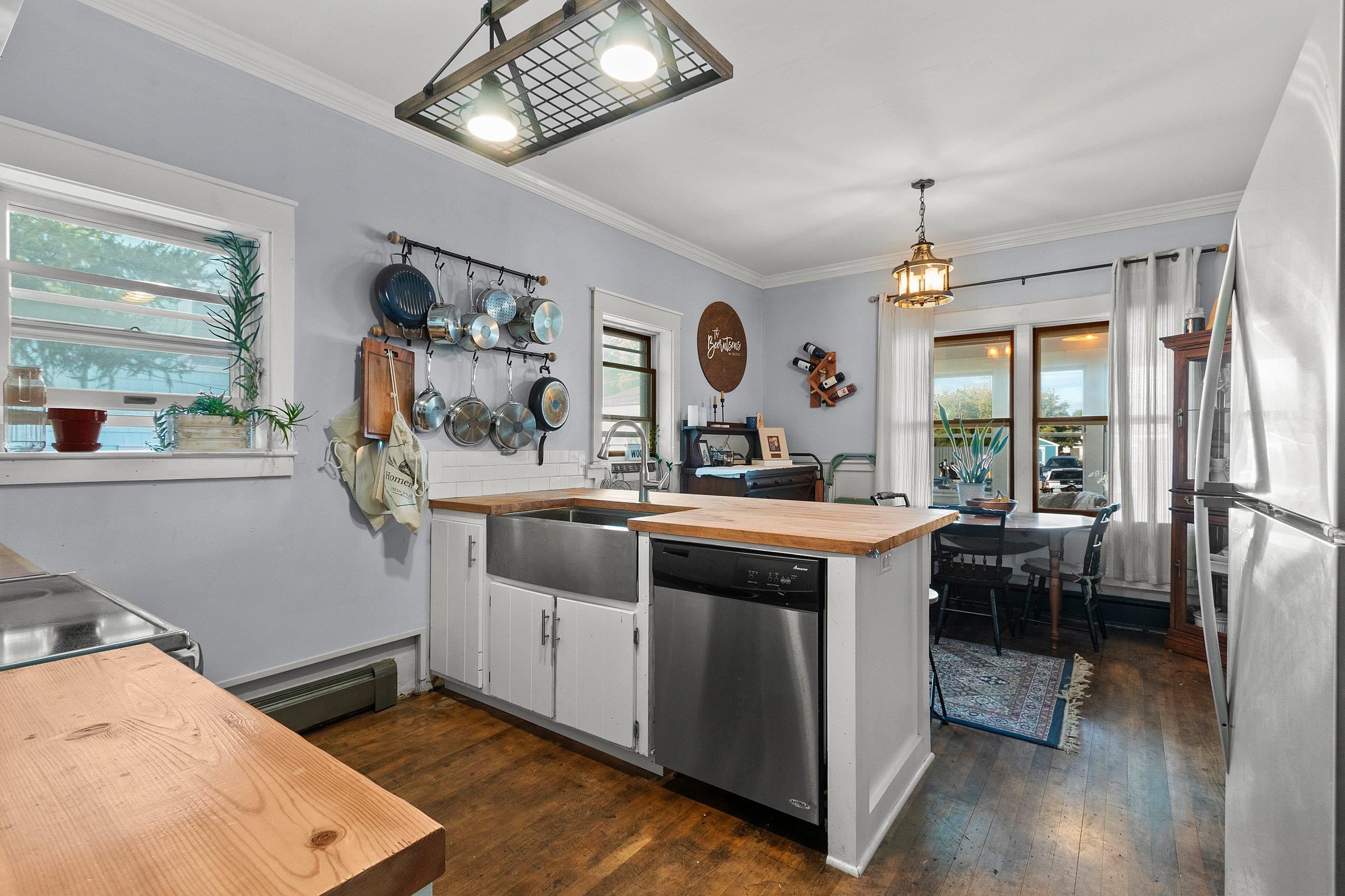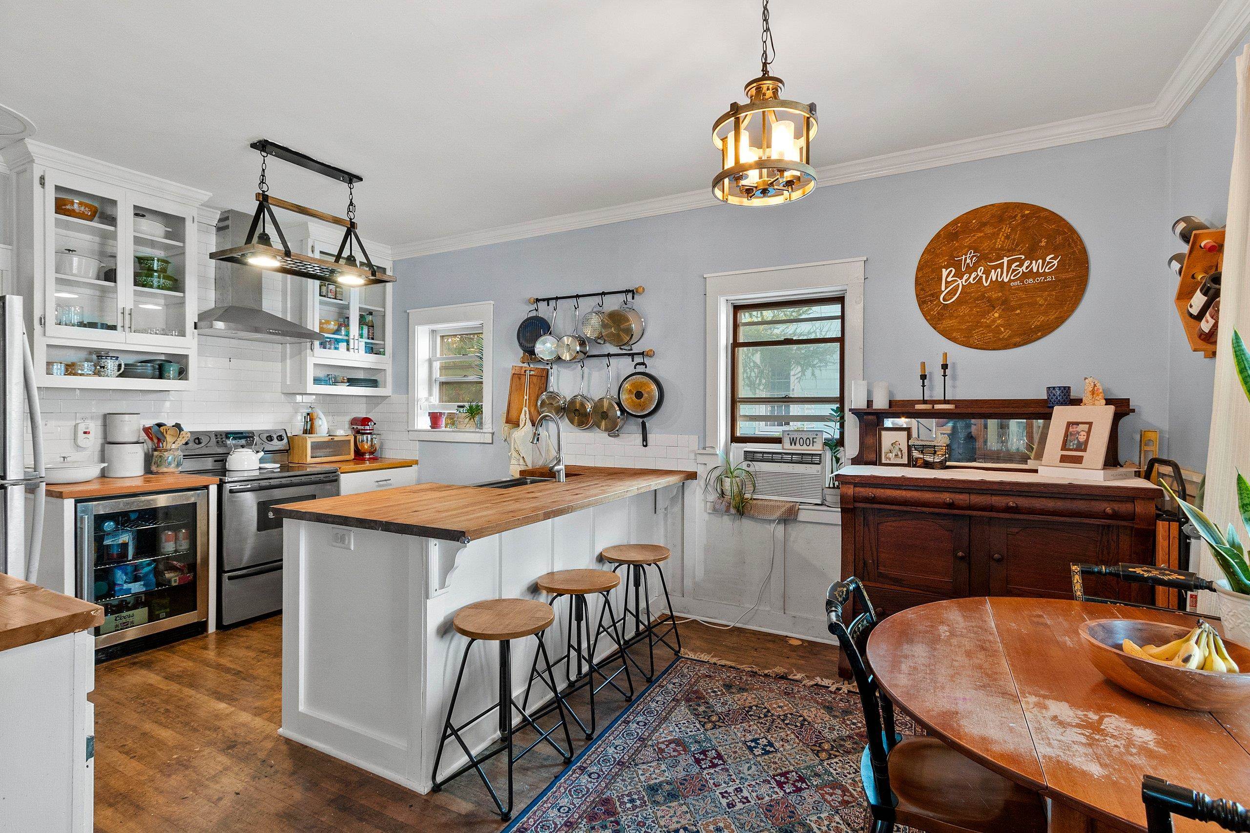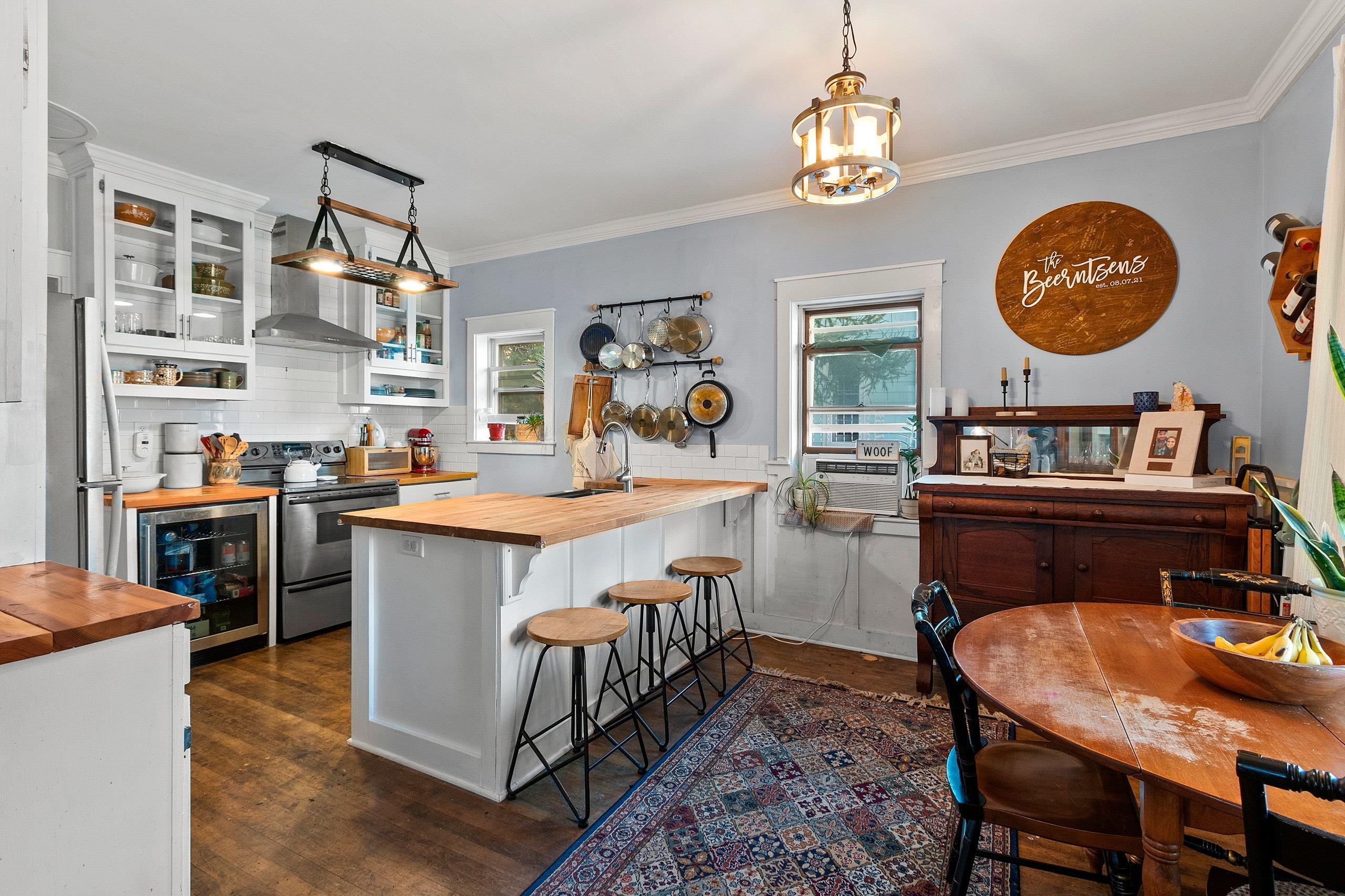 Welcome home to this charming bungalow just steps from the Fox River Trail, parks, and restaurants. Thoughtful updates blend comfort and character with refinished hardwood floors, crown moulding, and stylish lighting throughout. The kitchen features a butcher block island and subway tile backsplash, while the heated 3-season porch expands your living space. A bonus lower-level area is ideal for a fitness room. All interior and exterior doors have been replaced, and the fenced yard is perfect for pets. To ensure peace of mind, the roof will be replaced before closing, and a UHP home warranty will be provided.