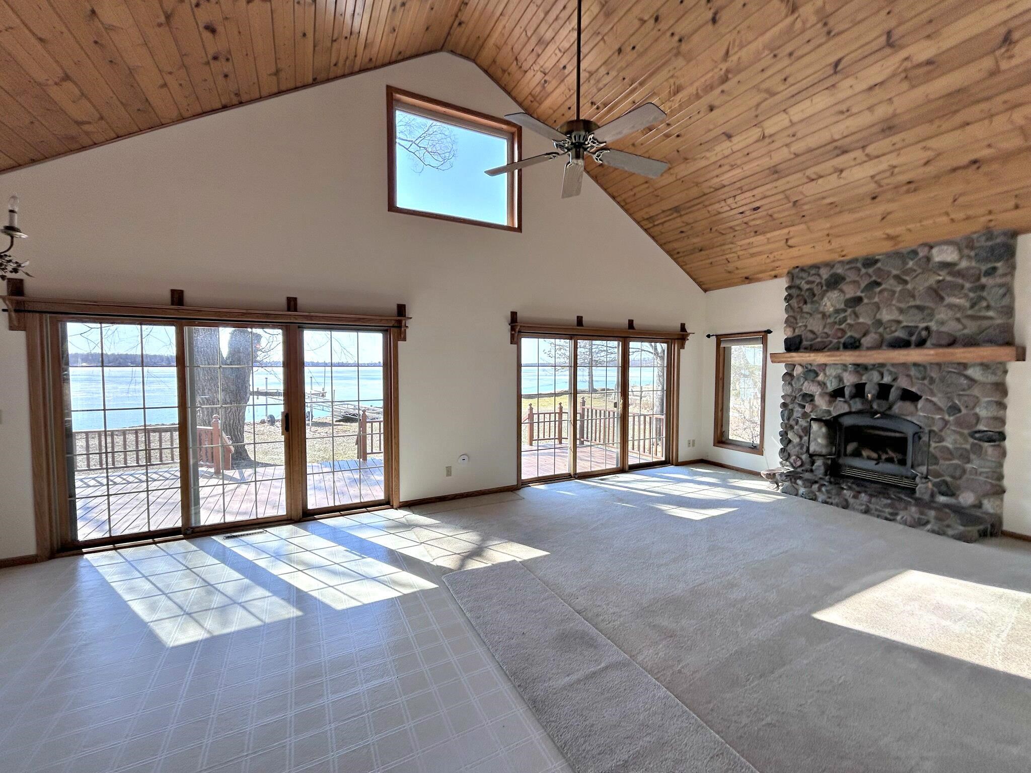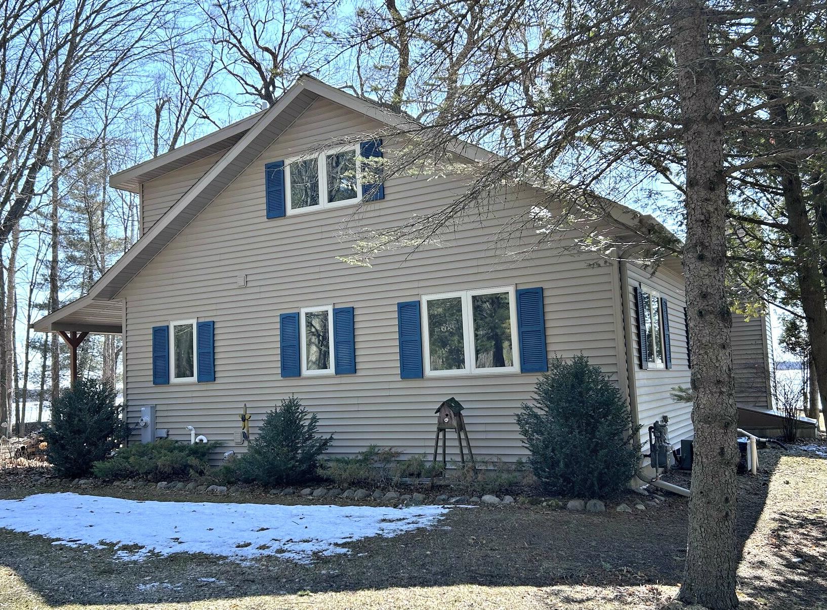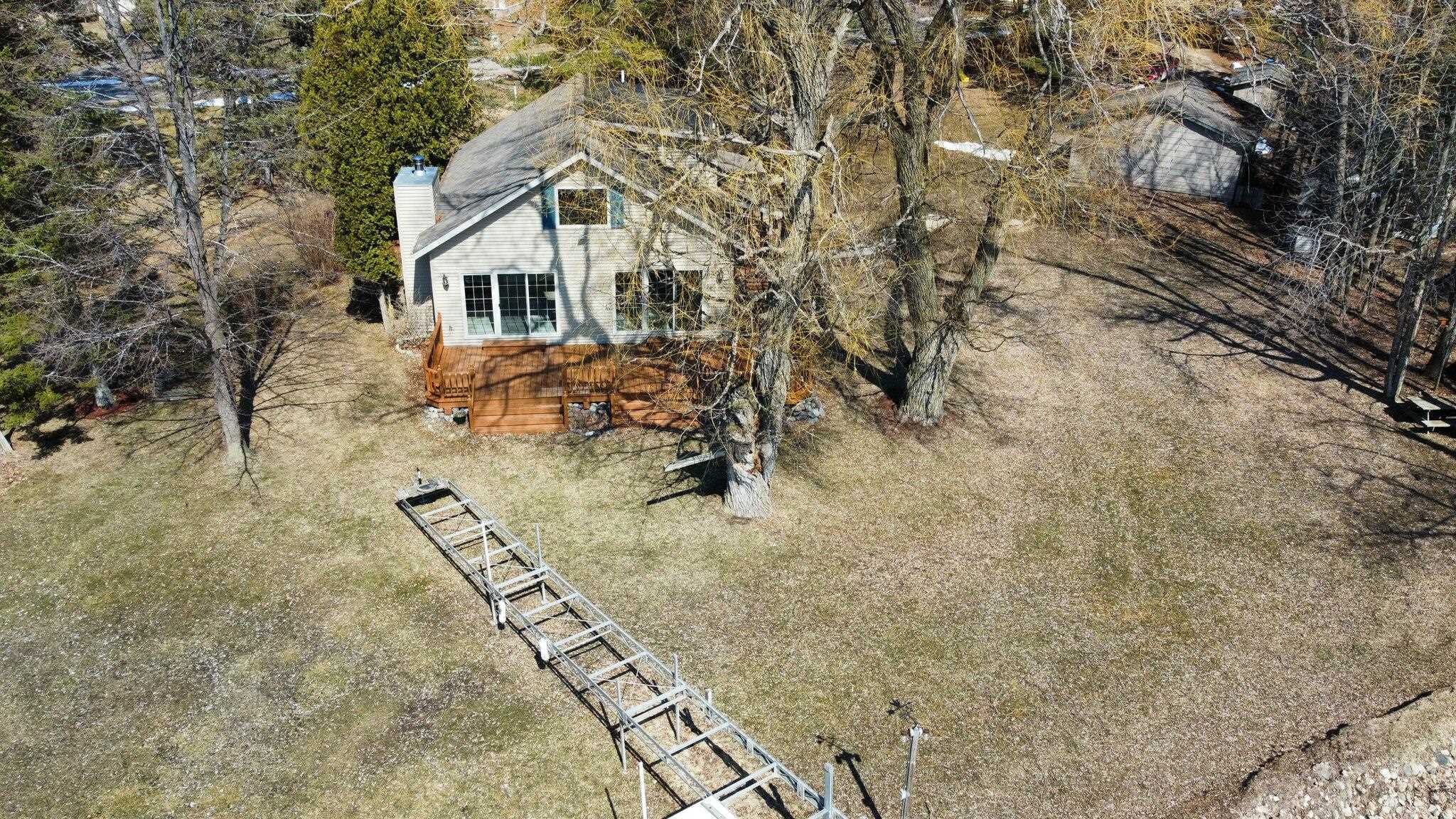 Lakefront living at its finest with this 3-bedroom, 2-bath home on beautiful White Potato Lake. Positioned on a spacious 1-acre lot with an impressive 198 feet of water frontage—ideal for boating, fishing, swimming, or relaxing and taking in the views. The home features a functional layout with a loft, generous living areas, ample natural light, and plenty of room for family and guests. Step outside on the south facing deck, perfect for entertaining and outdoor activities and a 48' Porta Dock. A detached 24x28 garage with power provides excellent storage for vehicles, lake toys, equipment with an additional 11x20 shed. Great for a year-round residence, vacation getaway, or investment opportunity.
