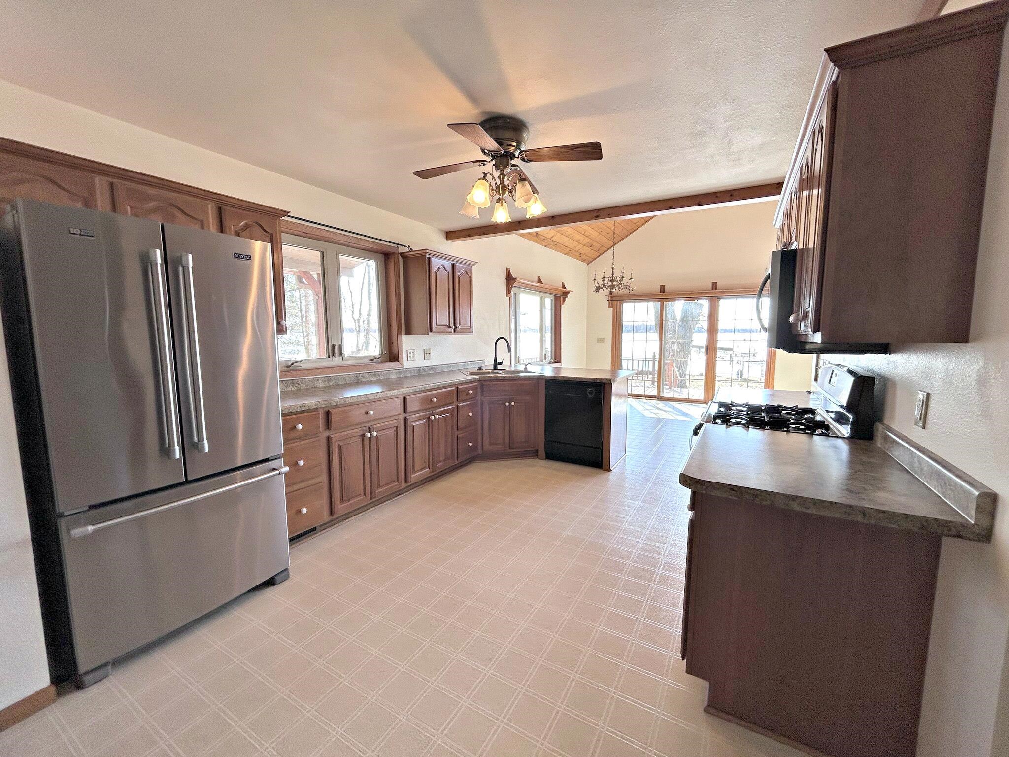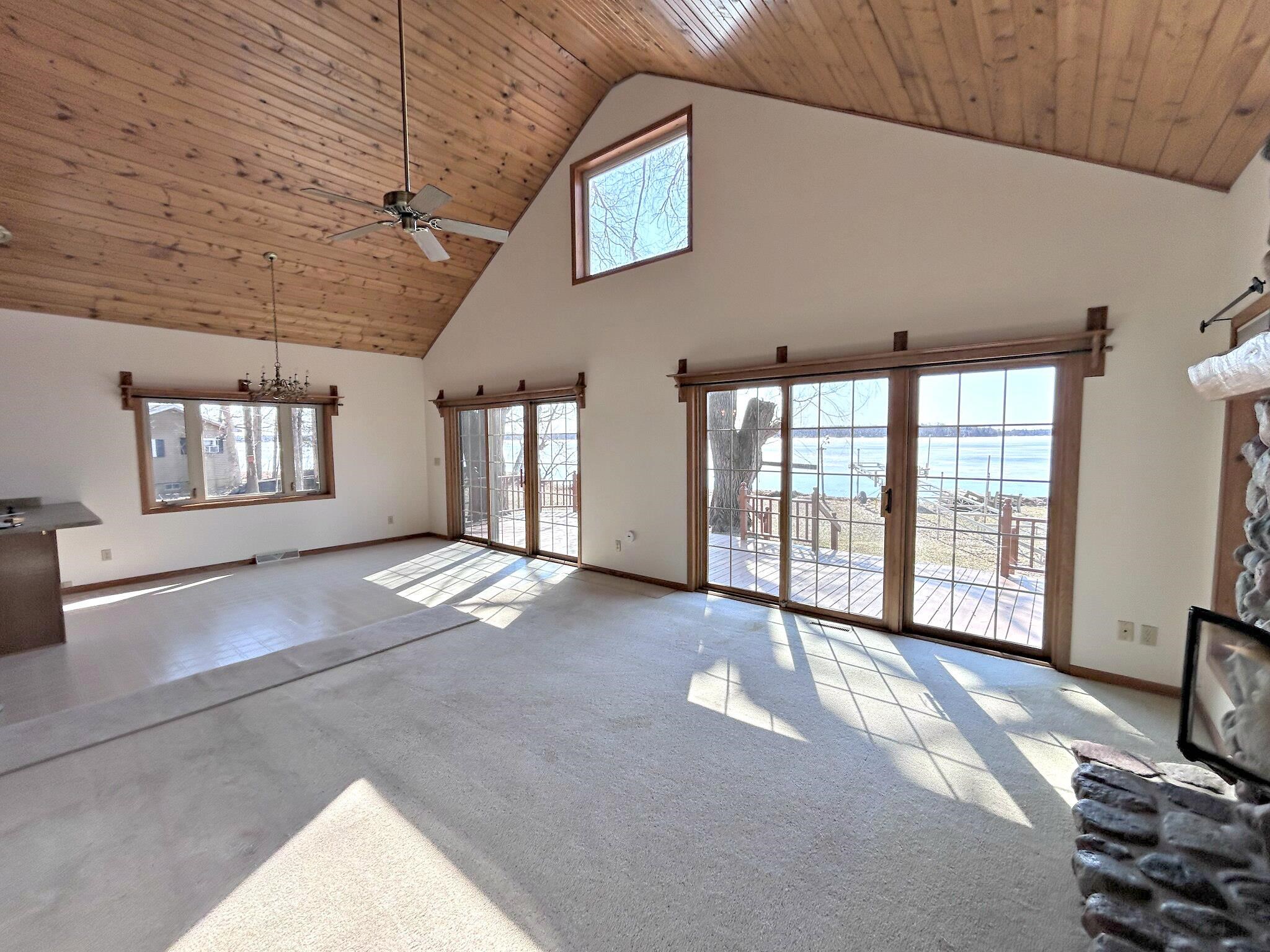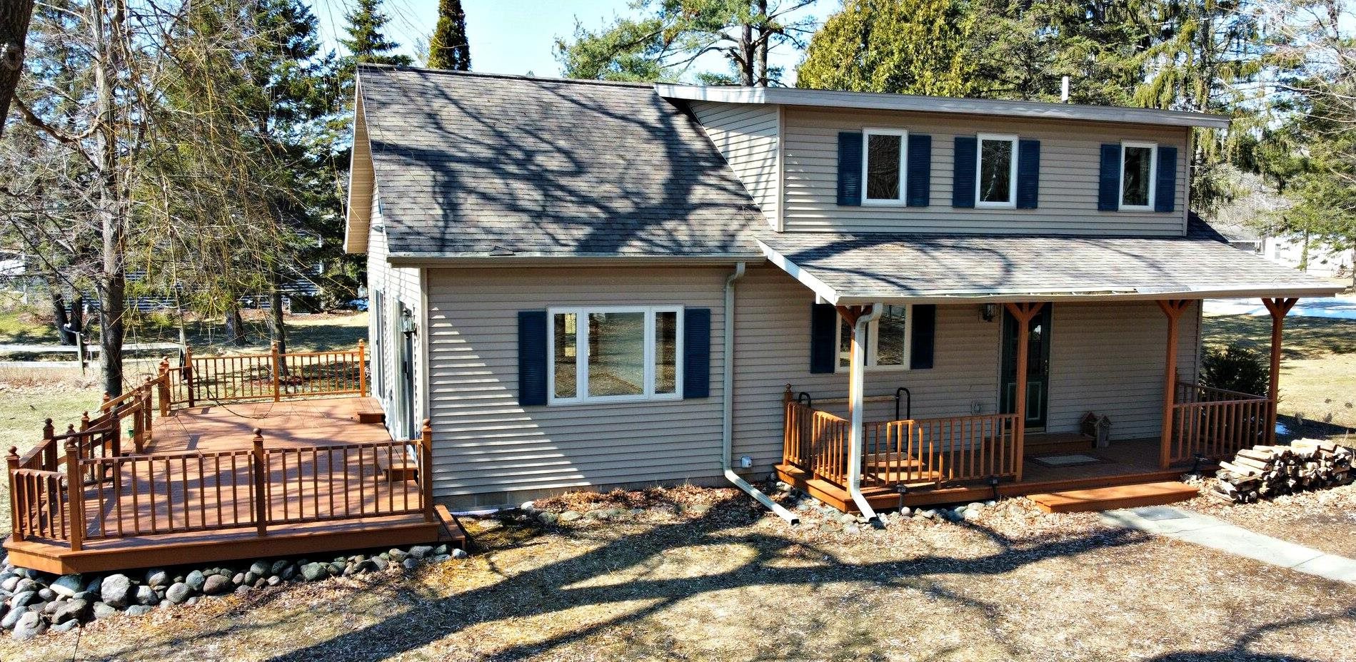 Lakefront living at its finest with this 3-bedroom, 2-bath home on beautiful White Potato Lake. Positioned on a spacious 1-acre lot with an impressive 198 feet of water frontage—ideal for boating, fishing, swimming, or relaxing and taking in the views. The home features a functional layout with a loft, generous living areas, ample natural light, and plenty of room for family and guests. Step outside on the south facing deck, perfect for entertaining and outdoor activities and a 48' Porta Dock. A detached 24x28 garage with power provides excellent storage for vehicles, lake toys, equipment with an additional 11x20 shed. Great for a year-round residence, vacation getaway, or investment opportunity.