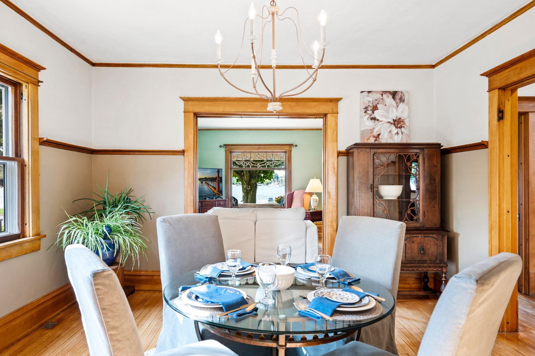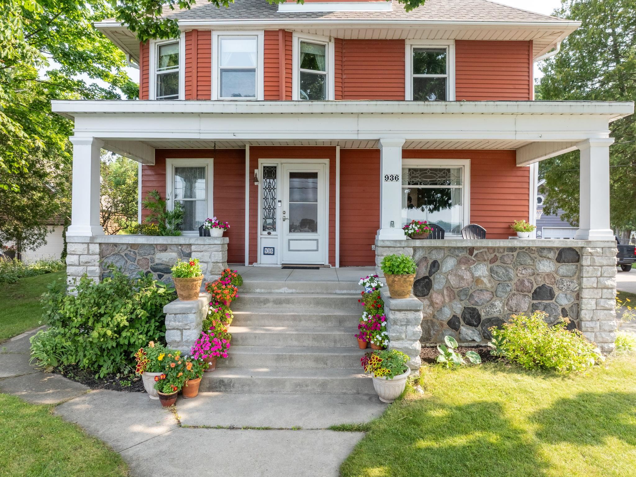 Step back in time in this charming historical home. Imagine entertaining & dining with views of ships passing by in the sparkling waters of Sturgeon Bay. Park your motorboat, kayaks or yourself at your private dock. The enormous front porch offers the finest views of sunsets and friendly neighbors passing by. Features such as original built ins, leaded glass windows, sunny breakfast room & gleaming woodwork remain intact. 3rd story does not have heat source & isn't included in total sq ft. The park-like fenced in back yard boasts an adorable garden shed. Behind the garage, indulge in your hobbies in the massive workshop w/loft above. All within easy walking distance to downtown shops, dining & entertainment. Roof '20, Furnace '22, HWH '20.