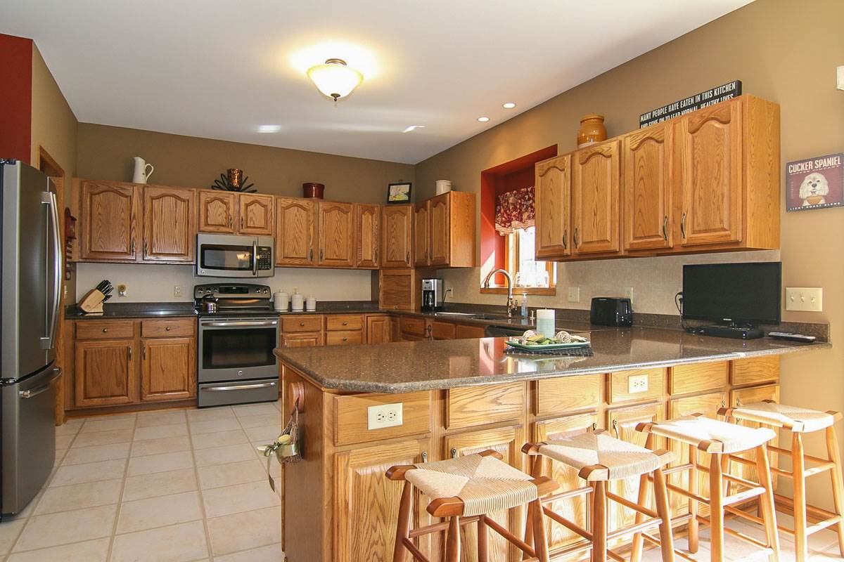 Don't Settle! This one has it all! Impeccably maintained! 1 owner! Shows better than new! Kitchen has new slate appliances (no fingerprints), solid surface counters, breakfast bar, dinette opens to big deck & mature trees. Vaulted great room w floor to ceiling fireplace! Hand scraped wood floors in entry & formal dining. 3 huge beds up w/lots of sun. Master w huge walk in, whirlpool tub & sep shower. Mature yard, 3 car heated garage. Roof 2010, H2O heater 2014, softener 2013.Call for full list of updates!