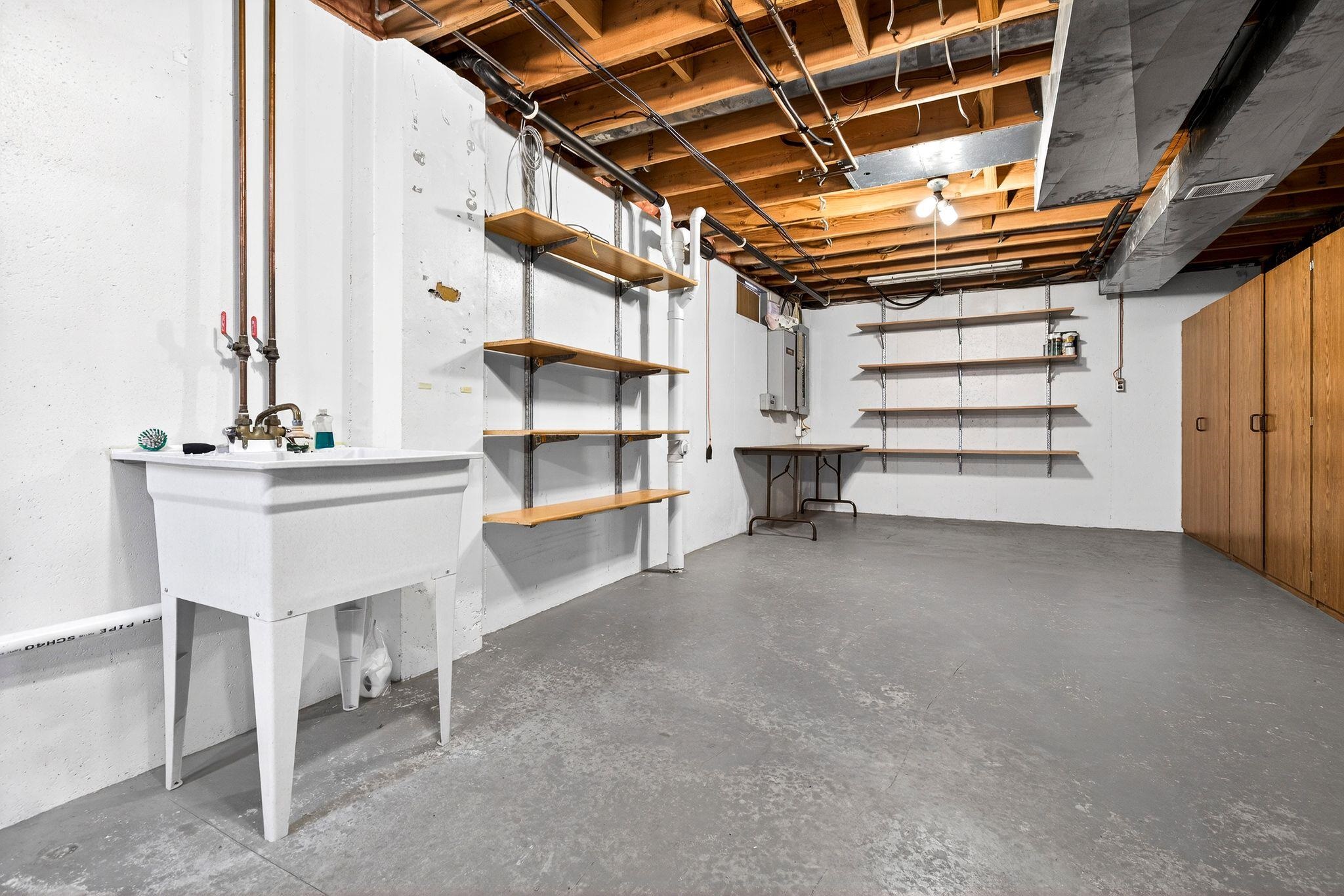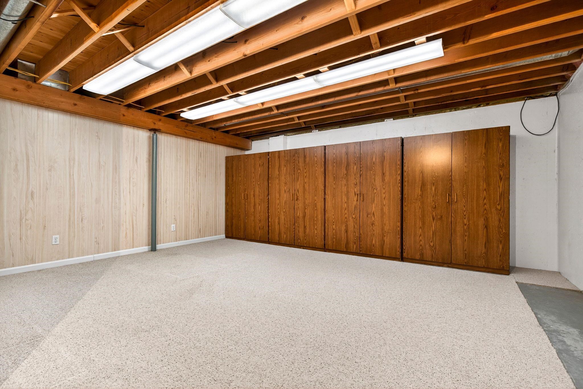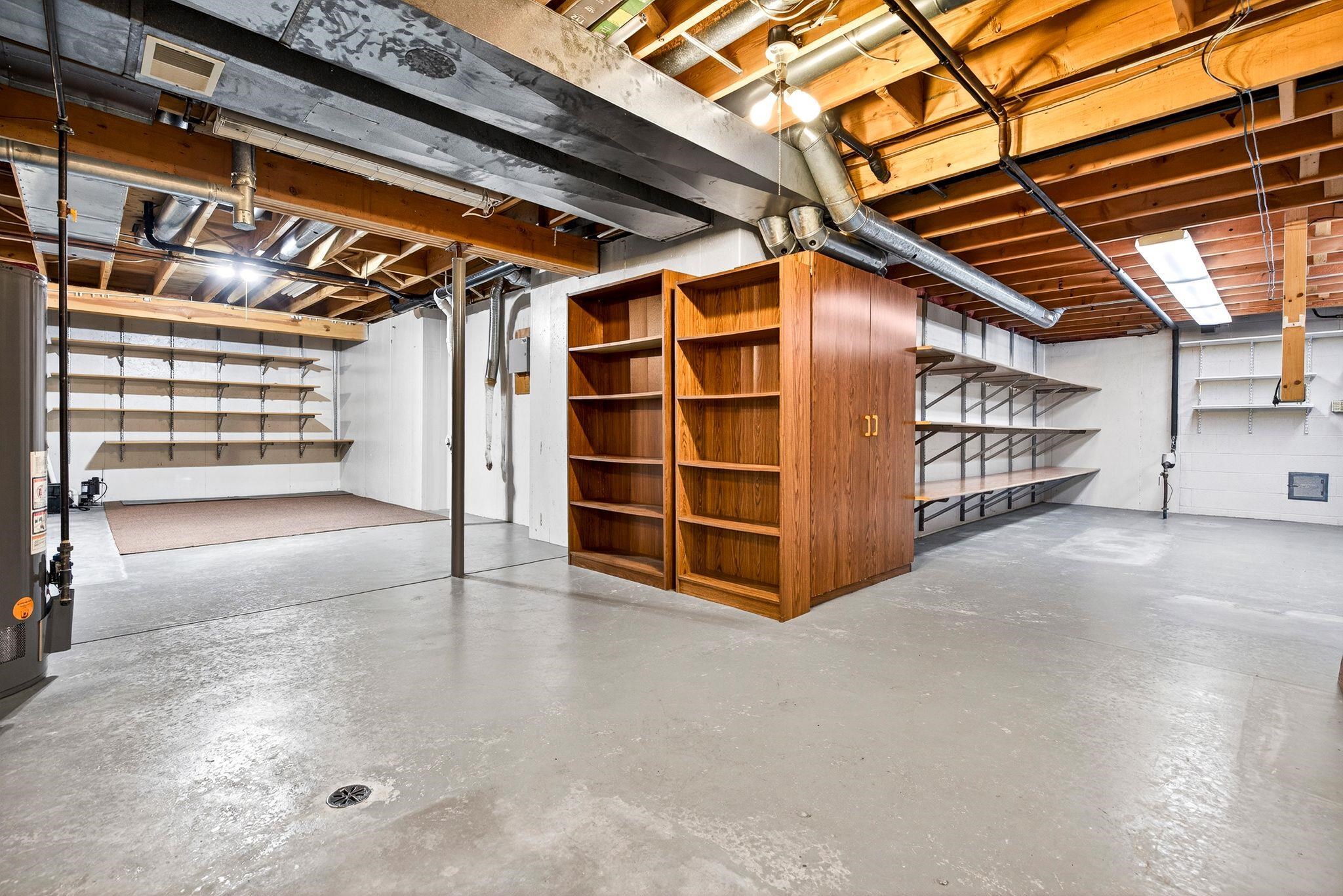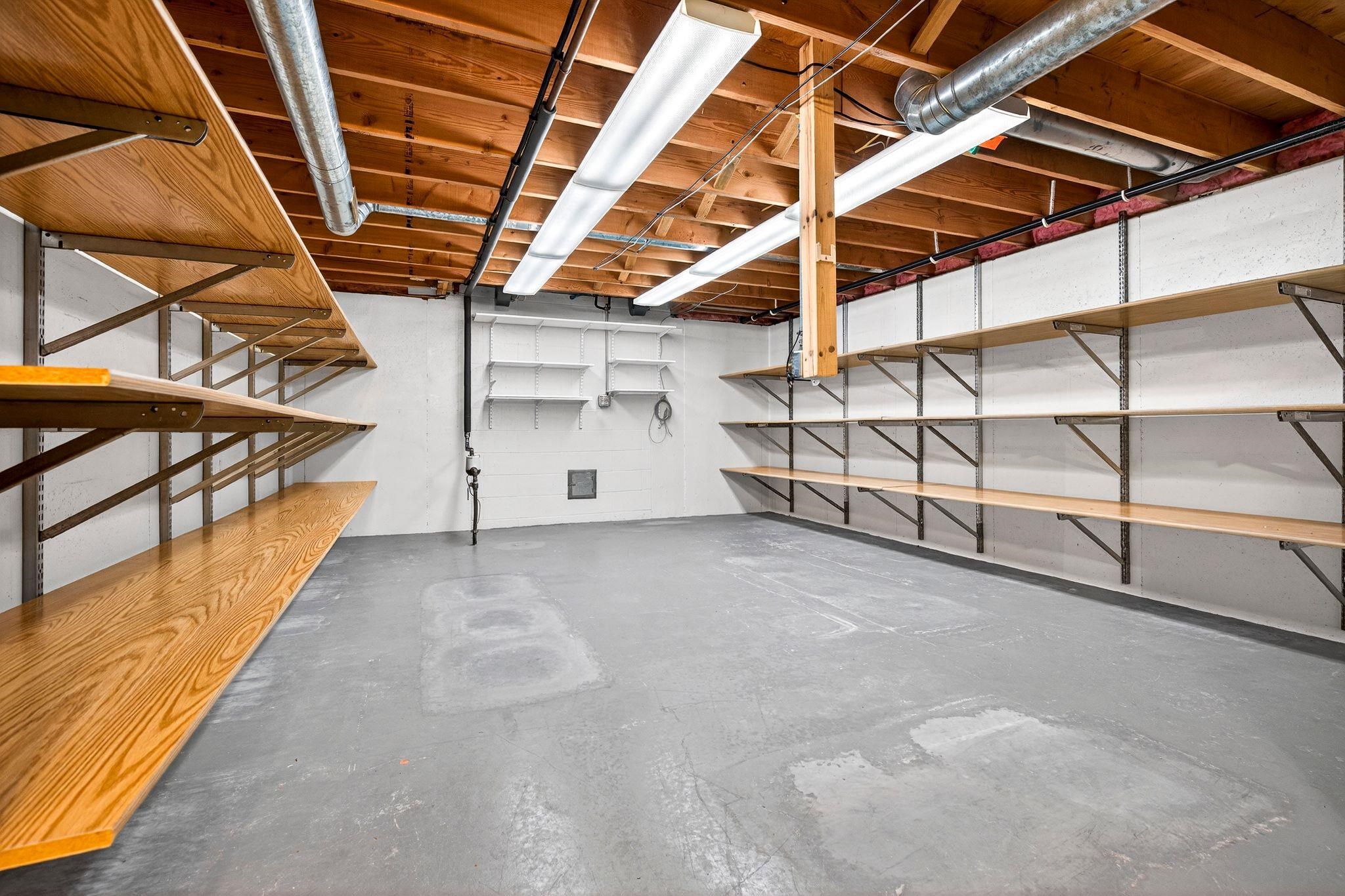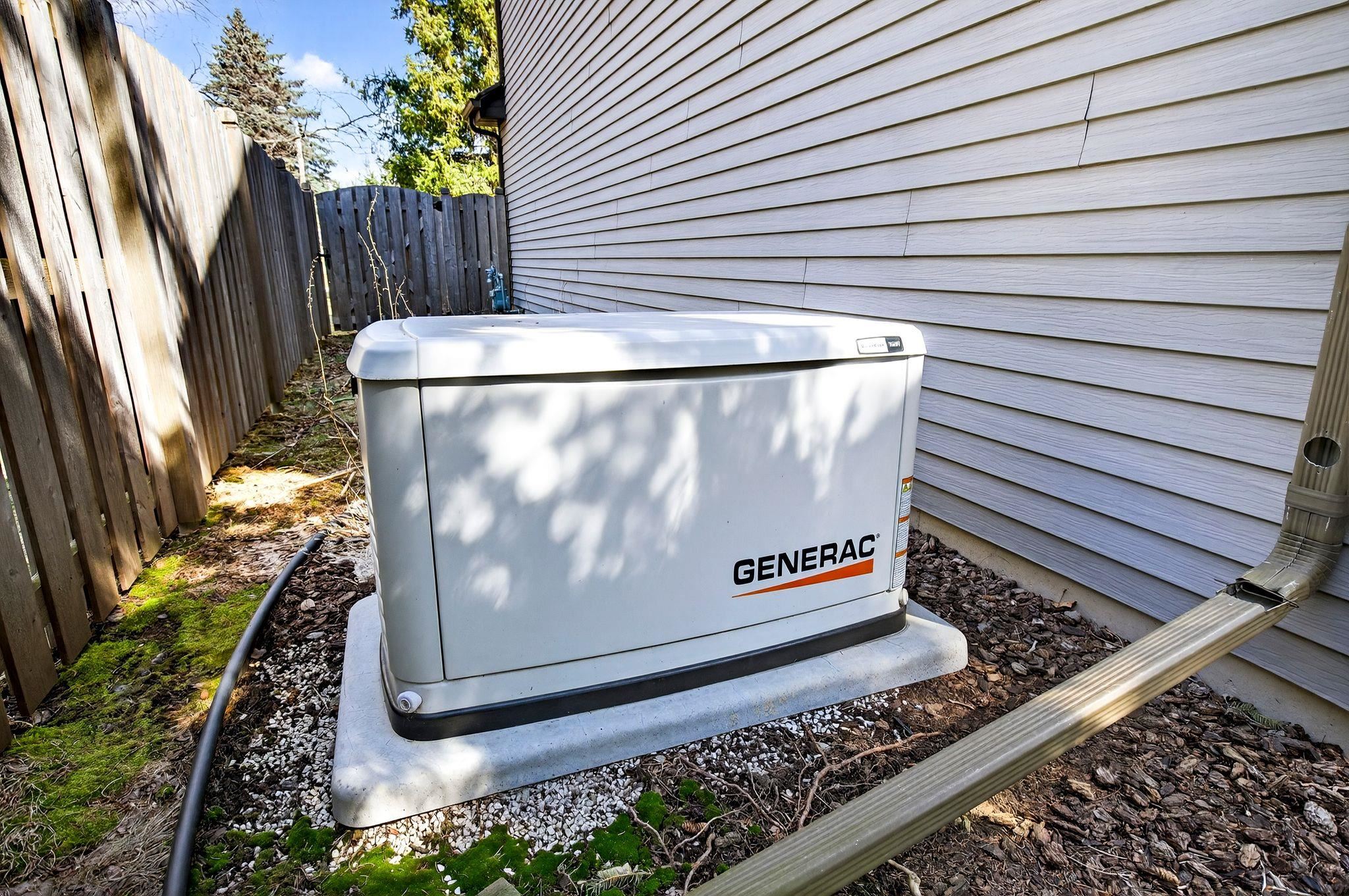 Gas Stove, Refrigerator, dishwasher, microwave, washer, dryer, GENERAC gen., shelving in garage and basement, wood, security system.