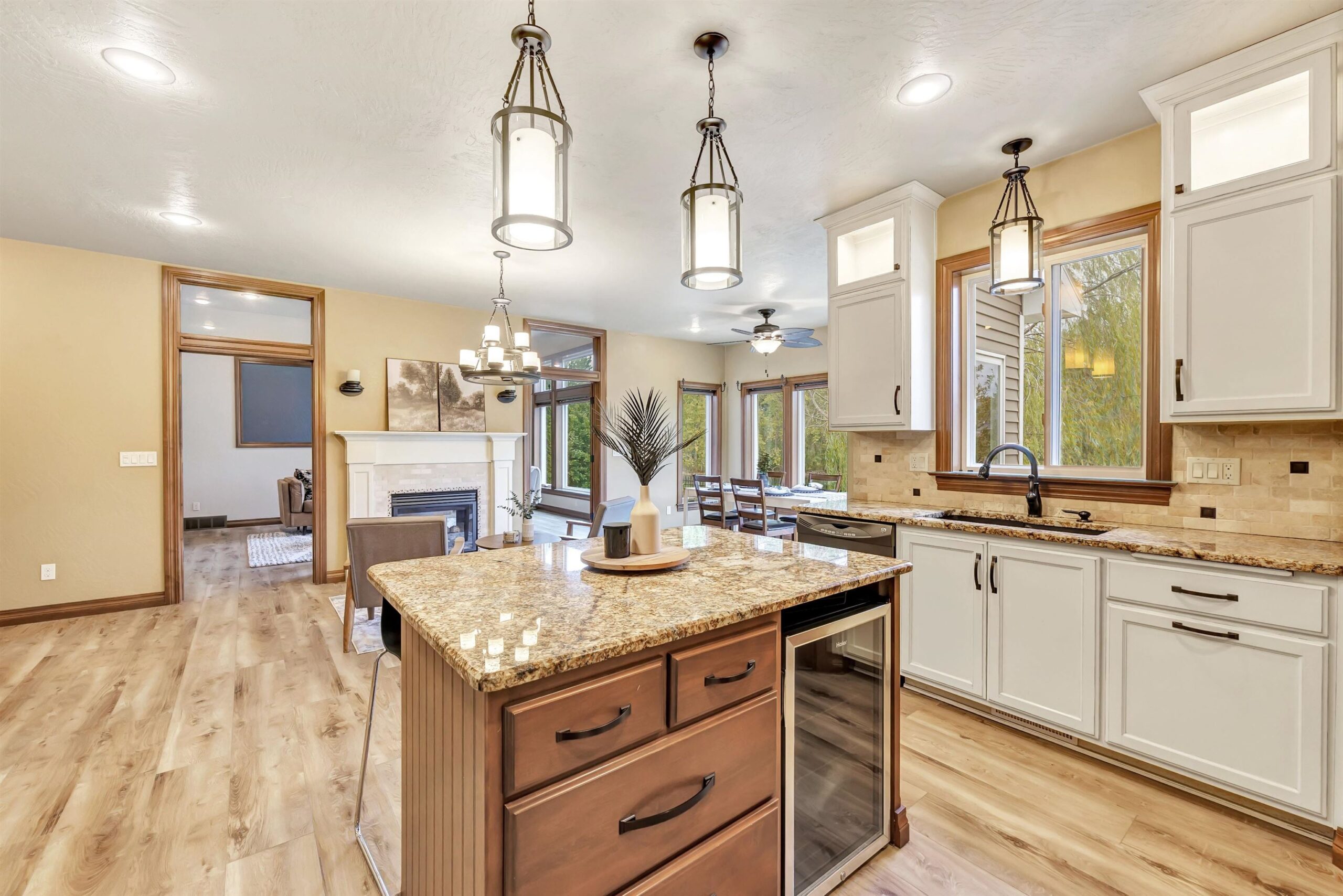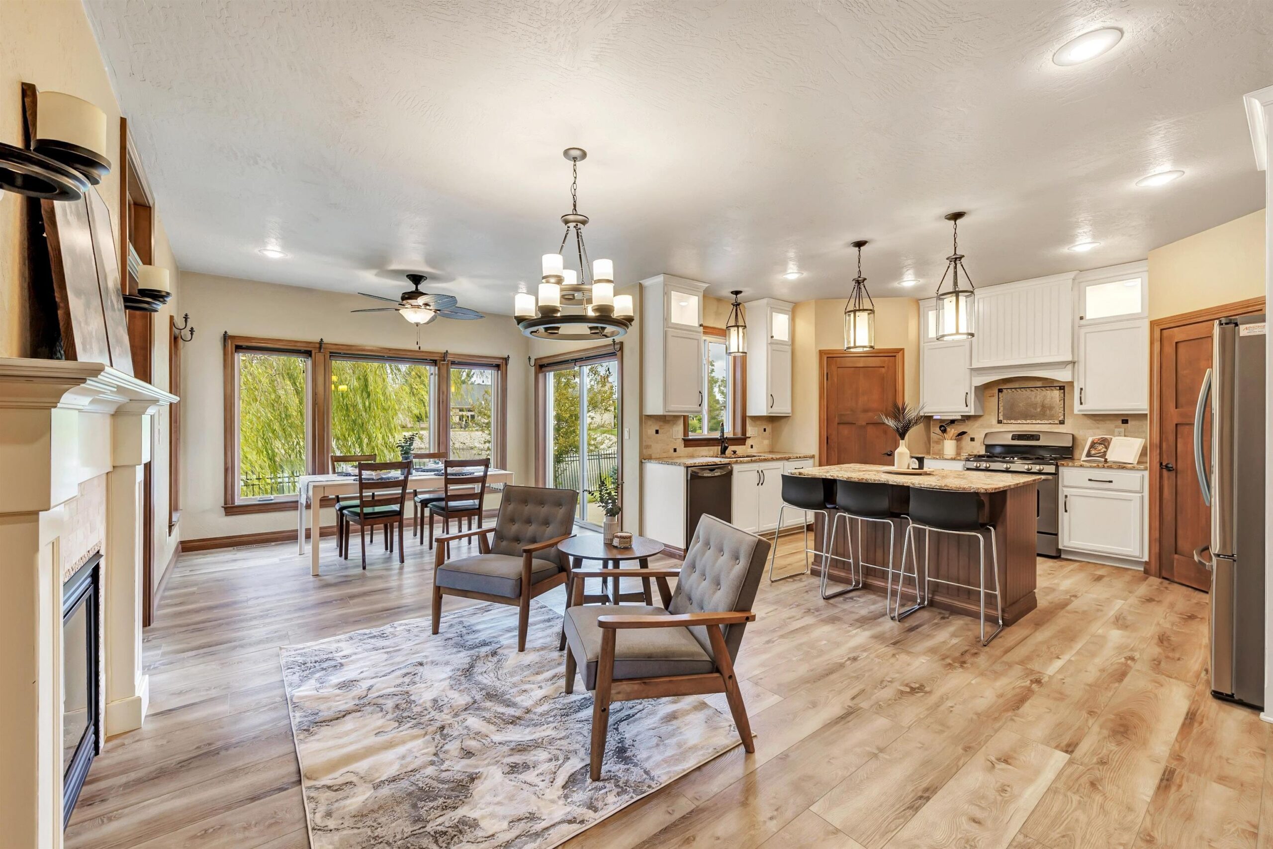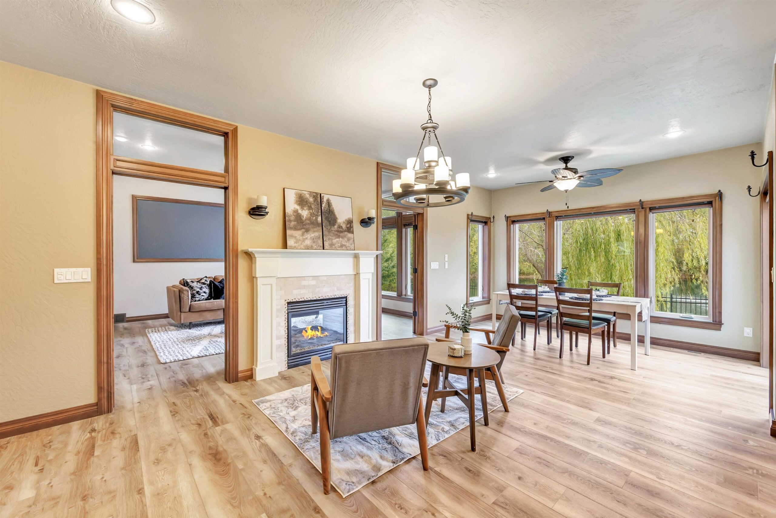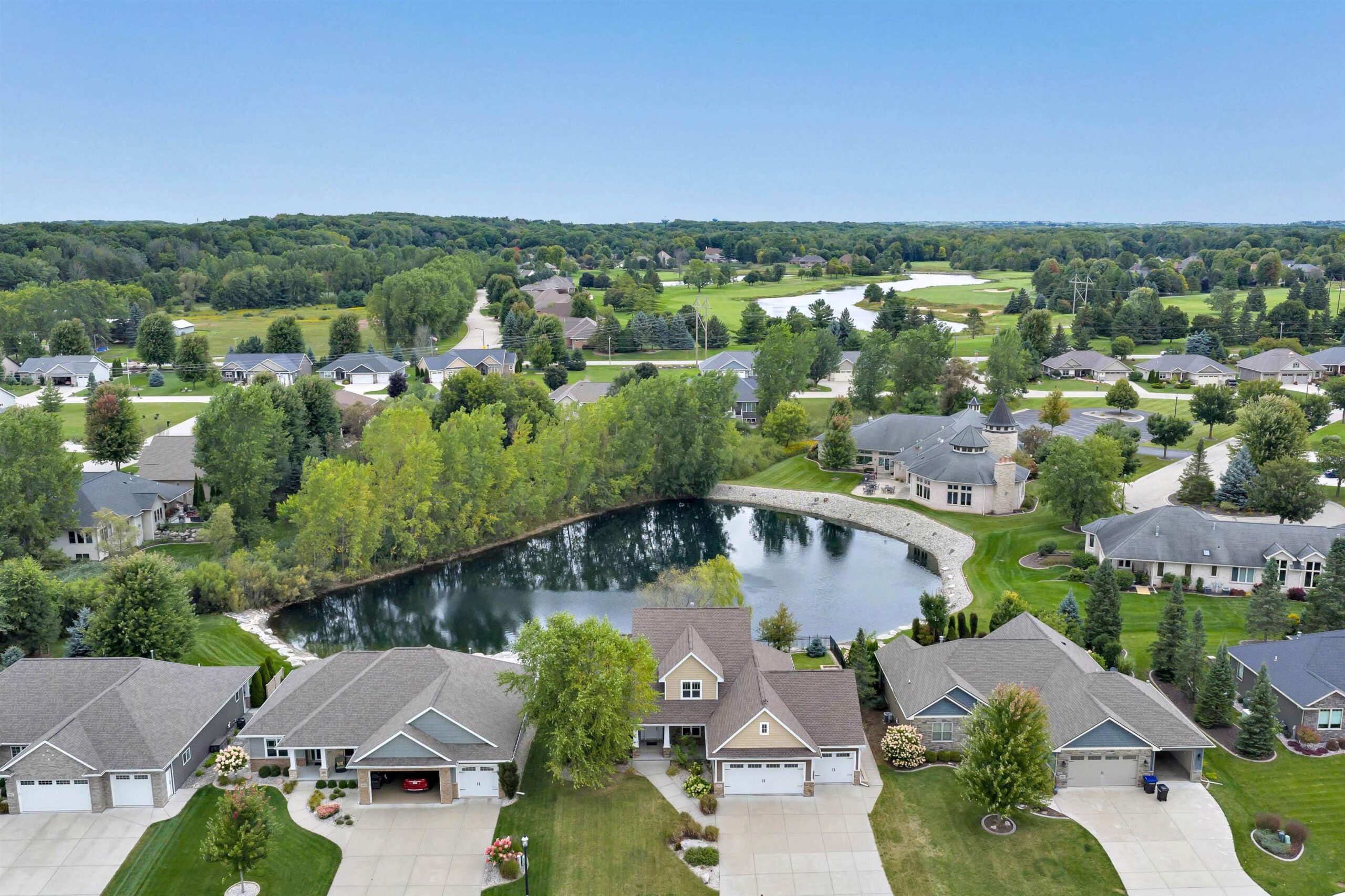 Imagine waking up in your main-floor primary suite, sunlight streaming through the home's custom transom windows, w/ peaceful views of the backyard pond. This 5-bedroom, 3.5-bath Polo Point home, built in 2013 w/ a LL finished in 2023, features a large kitchen w/ sleek granite countertops, a center island, 2 pantries, dining nook & a cozy sitting area w/ a two-way gas fireplace. All appliances included. Open living spaces flow seamlessly from the vaulted living room to the main floor office. The primary suite offers a w/in closet plus 2 additional closets, dual sinks, deep soaking tub w/ fireplace & walk-in tiled shower. With a 3-car garage, nearby golf courses & optional clubhouse access w/ indoor pool and fitness center, this home is where luxury meets lifestyle. Some virtual staging.