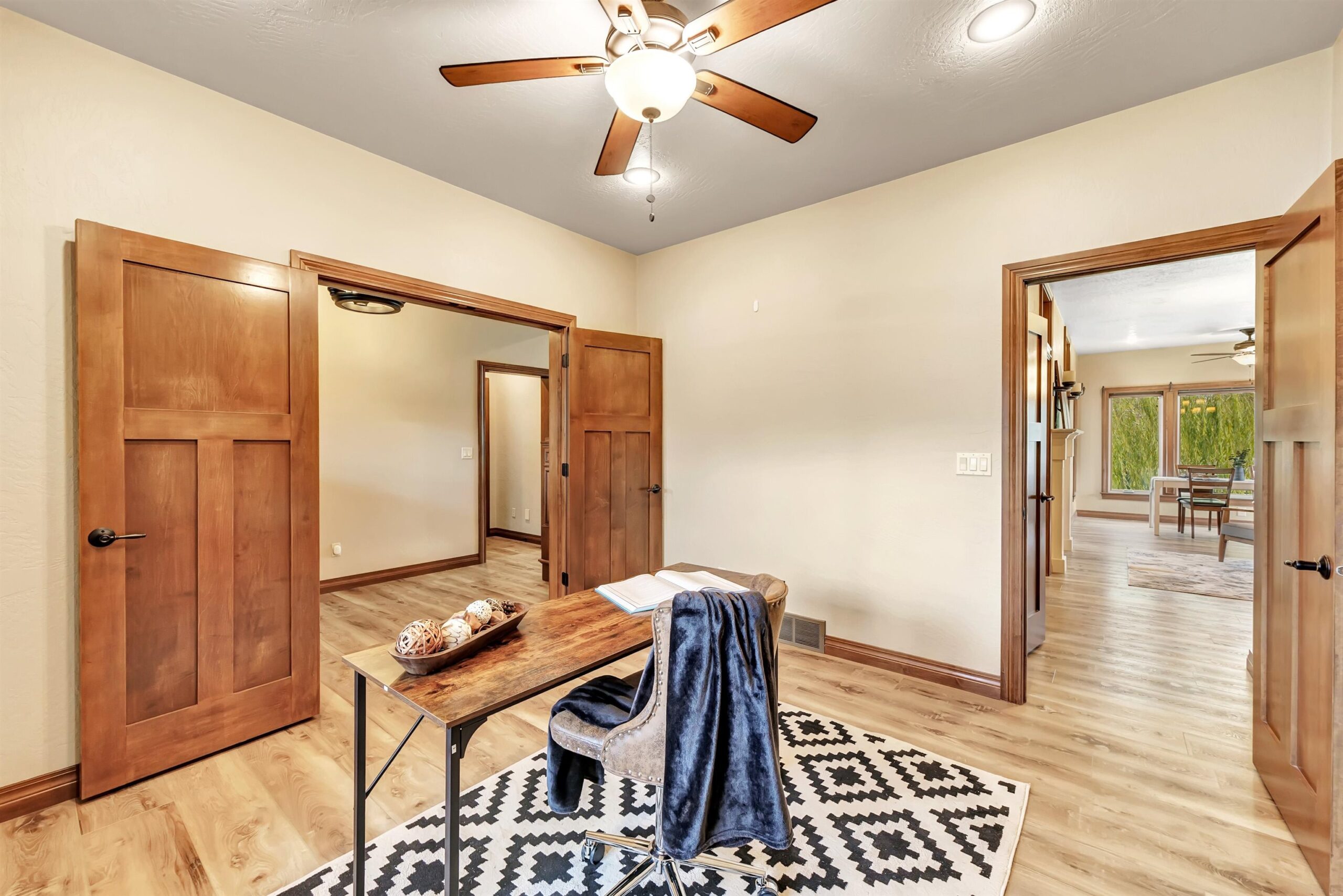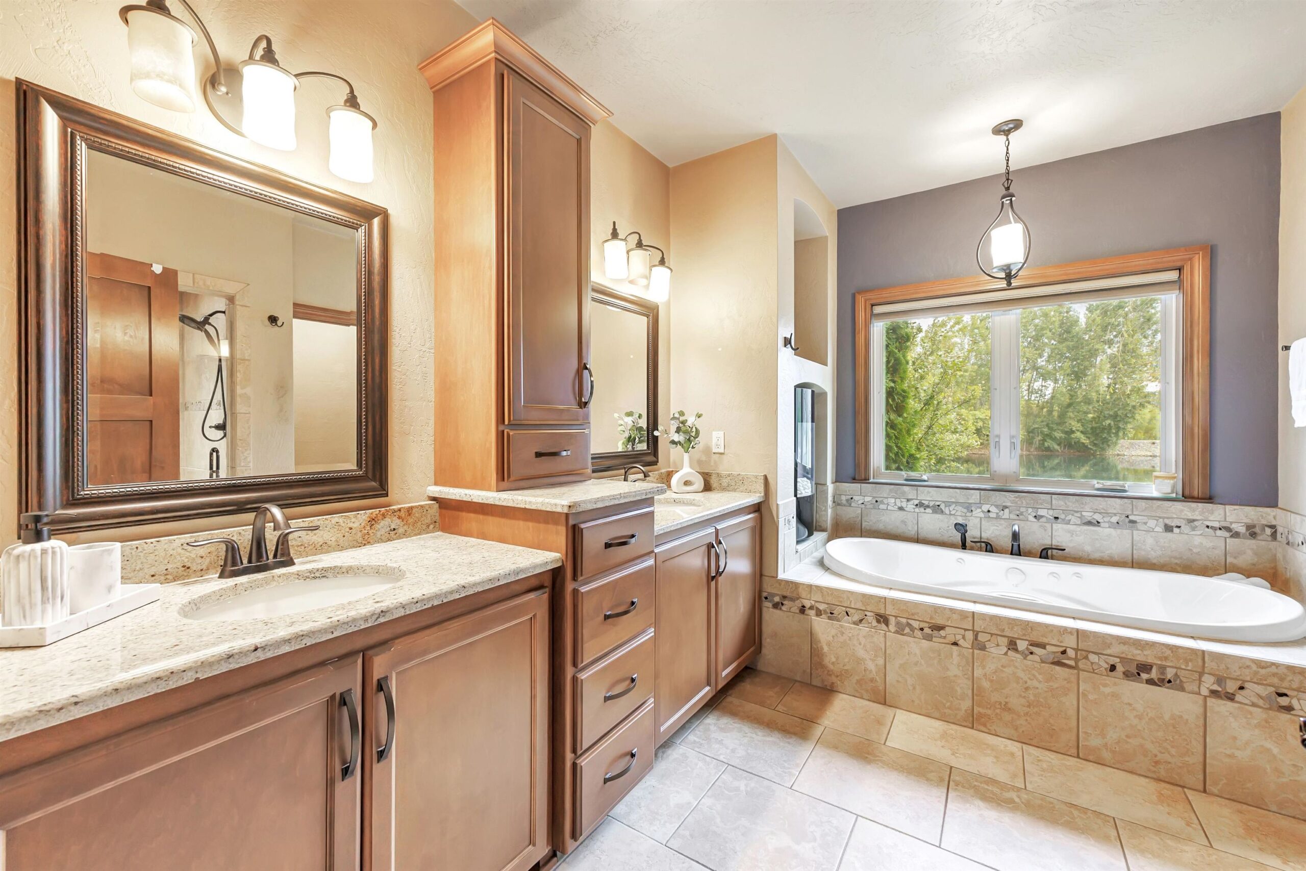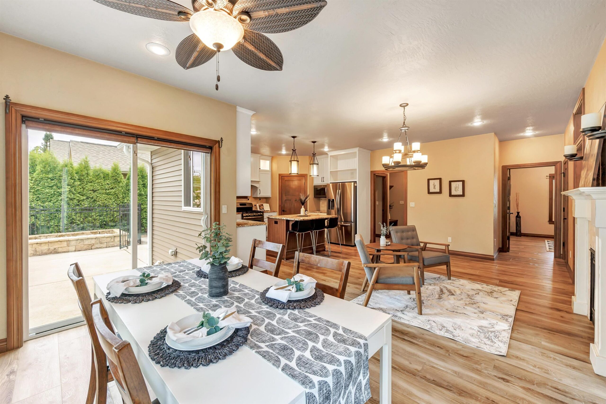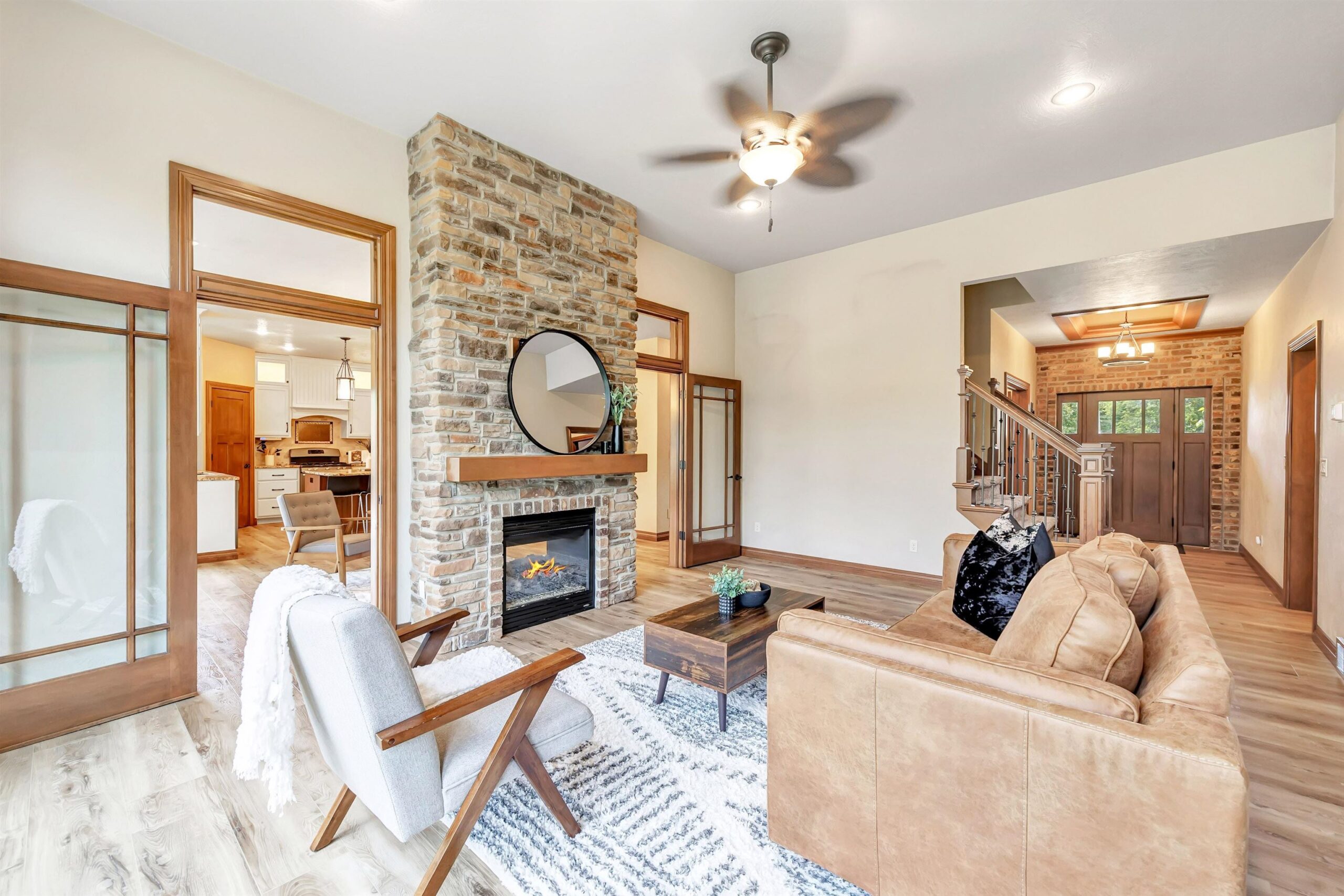Imagine waking up in your main-floor primary suite, sunlight streaming through the home's custom transom windows, w/ peaceful views of the backyard pond. This 5-bedroom, 3.5-bath Polo Point home, built in 2013 w/ a LL finished in 2023, features a large kitchen w/ sleek granite countertops, a center island, 2 pantries, dining nook & a cozy sitting area w/ a two-way gas fireplace. All appliances included. Open living spaces flow seamlessly from the vaulted living room to the main floor office. The primary suite offers a w/in closet plus 2 additional closets, dual sinks, deep soaking tub w/ fireplace & walk-in tiled shower. With a 3-car garage, nearby golf courses & optional clubhouse access w/ indoor pool and fitness center, this home is where luxury meets lifestyle. Some virtual staging.
