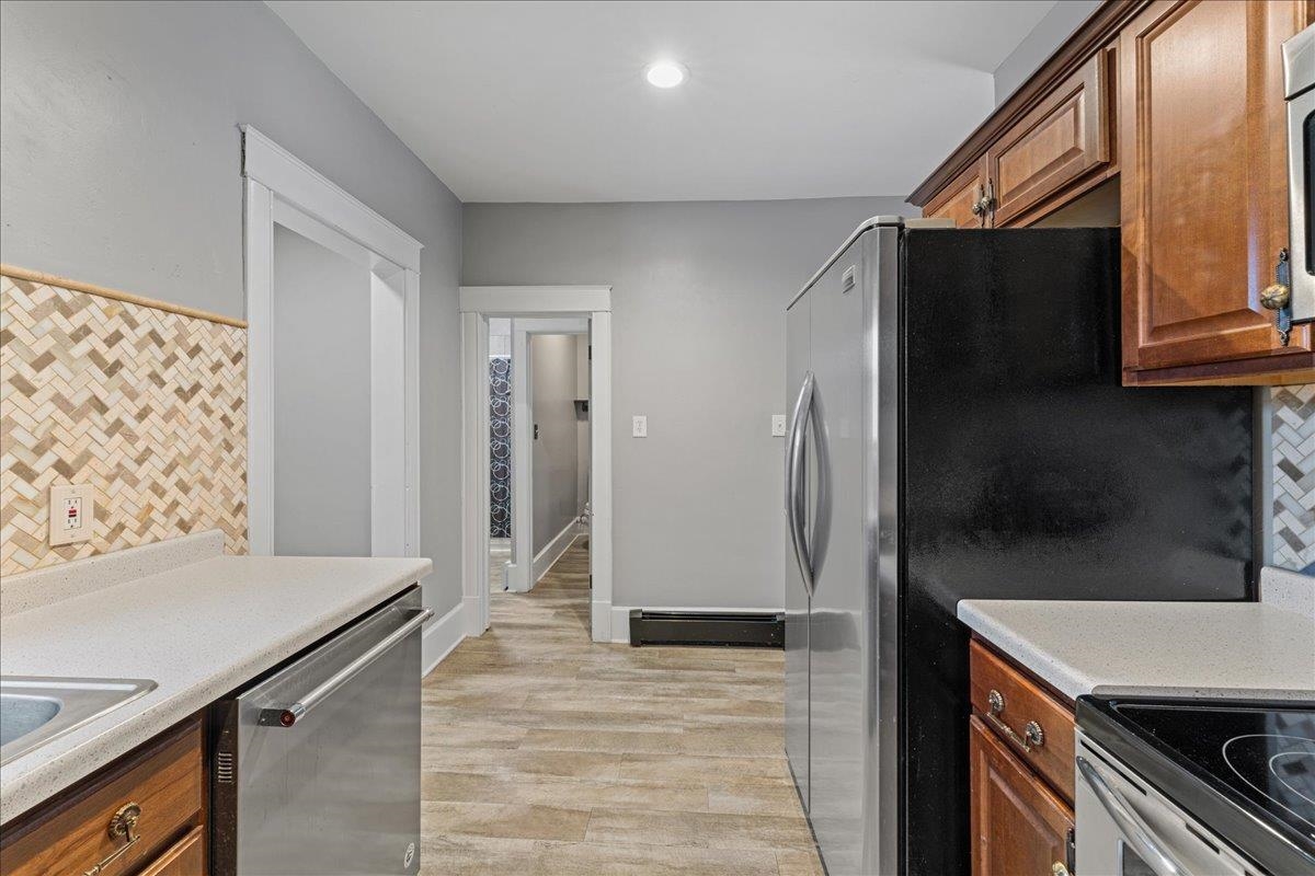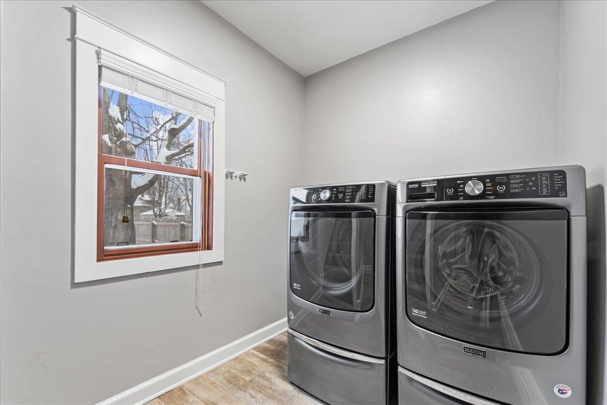 Welcome to 1132 Berner St, Green Bay! This well-cared-for 3-bedroom home blends classic charm with modern updates throughout. The refreshed kitchen features a stylish tile backsplash and updated flooring, while the renovated bathroom offers its own beautifully tiled shower for a clean, contemporary feel. Enjoy the convenience of first-floor laundry and a spacious upper level perfect for a bedroom, office, or bonus living area. Outside, the fenced yard, concrete curbing, lovely landscaping, 2-stall detached garage, and storage shed provide both function and curb appeal. A truly move-in-ready home with space, comfort, and character!
