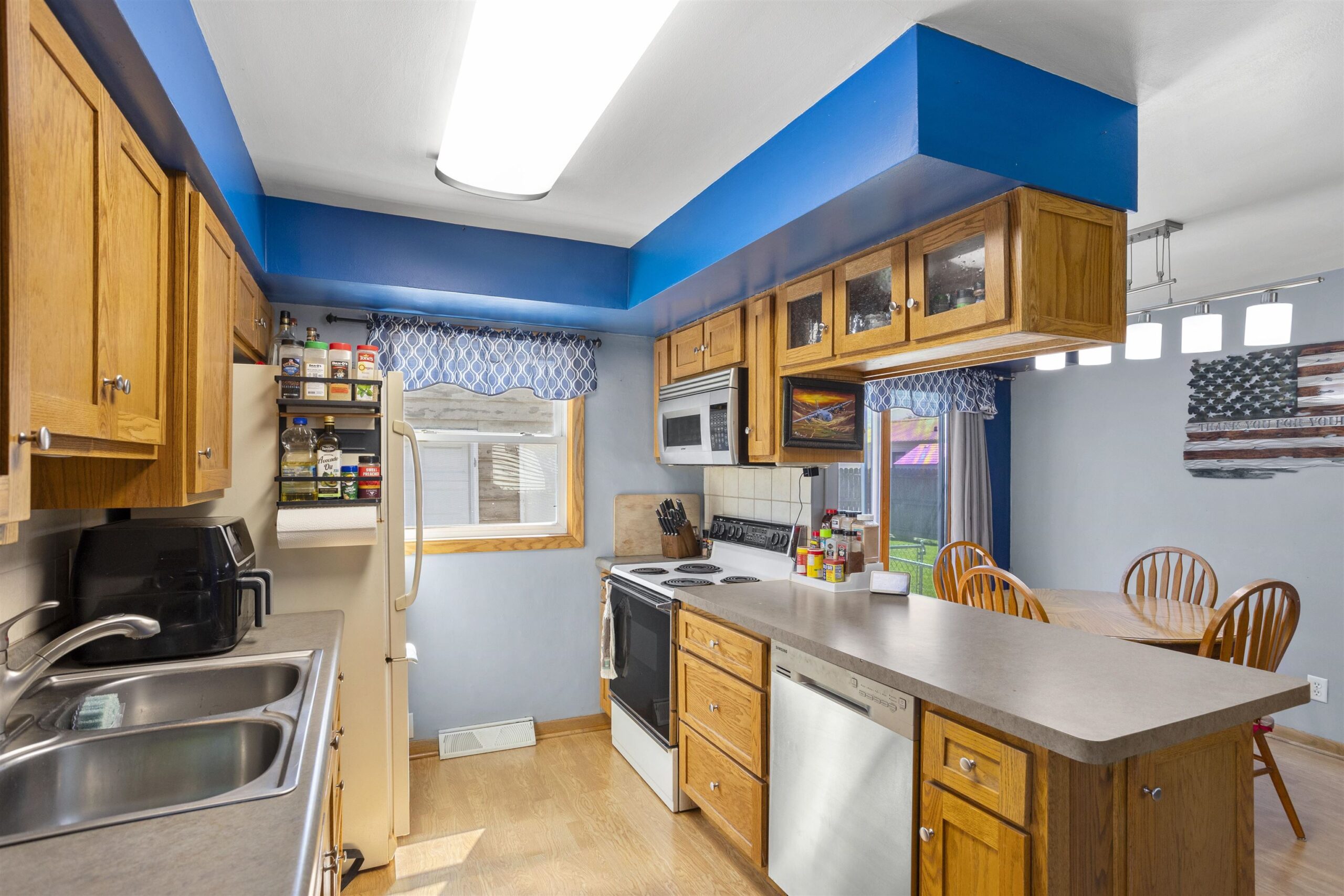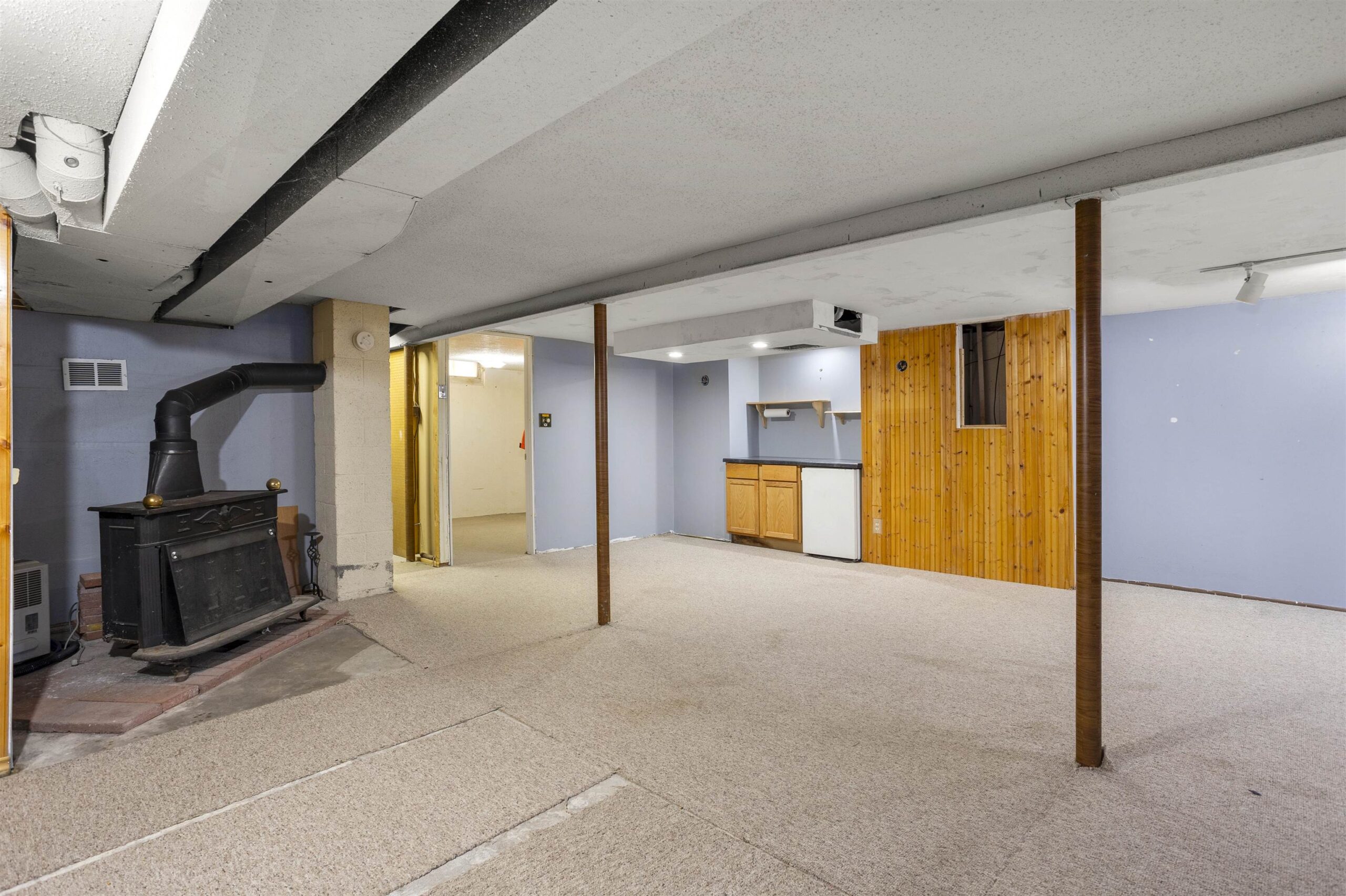 Refrigerator, Stove/range, microwave, dishwasher, washer, dryer, LL wood stove