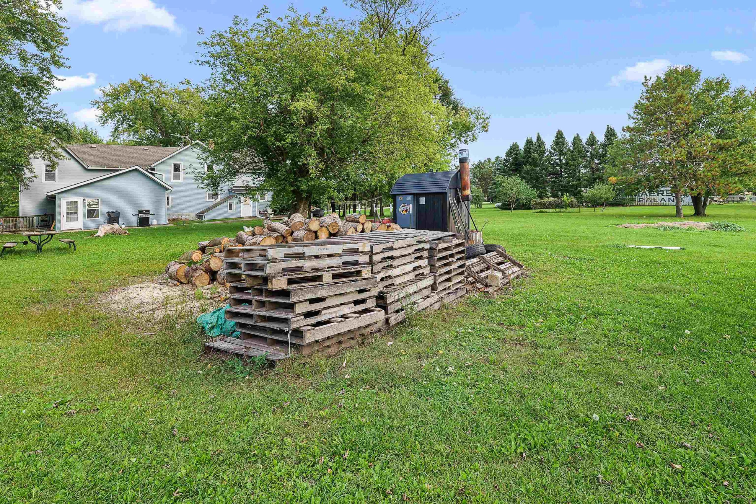 A country gem that's a diamond in the rough! This property is being sold as-is. Bring your ideas and tools to finish the remodeling process in this charming farmhouse that has already been started for you. This 2-story farmhouse features 5 bedrooms, 1 full bath (with potential for a full 2nd bath upstairs), over 2700 sq ft, 3.18 acres of land, big outbuilding that is great for storage and is equestrian friendly! The home features newer Kitchen, some newer flooring, drywall, paint, and Well. If you're looking for a farmette to put your finishing touches into with the peace and privacy of county living - then this is the property for you! Home is heated with radiant heat from 2 different fuel sources: LP gas and a Central Boiler Outdoor wood burning furnace. 16x11 "other" room is a utility.