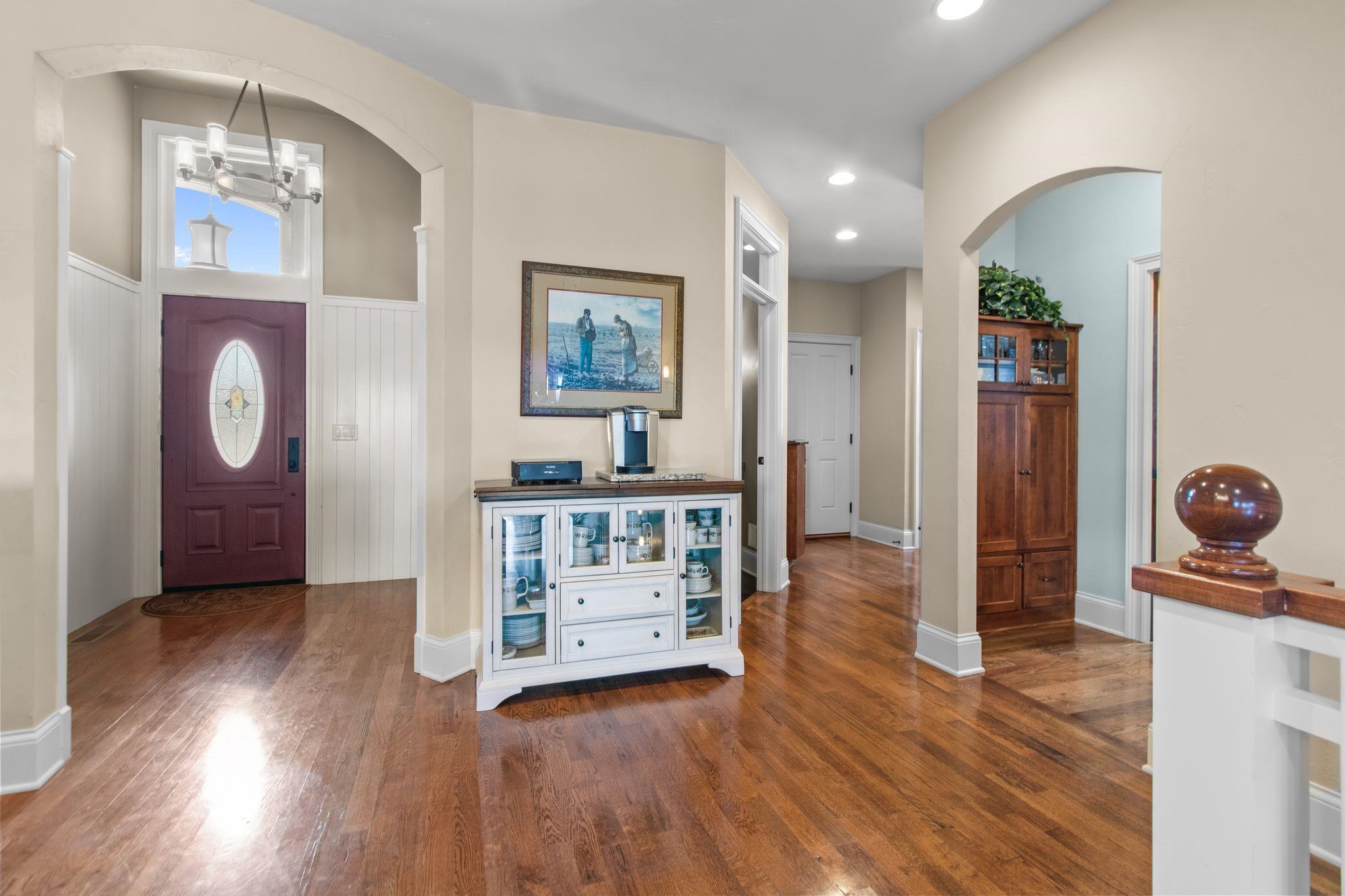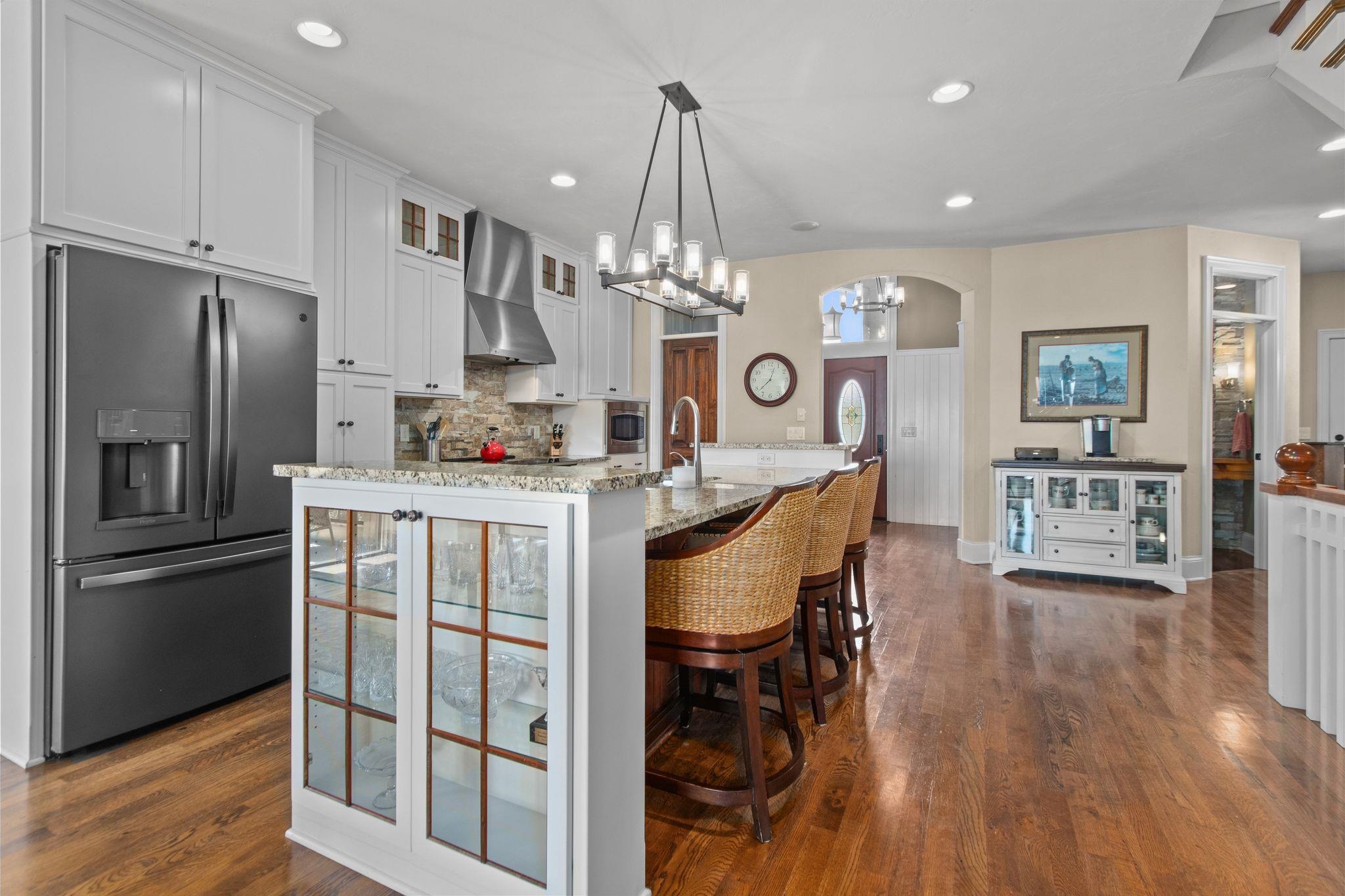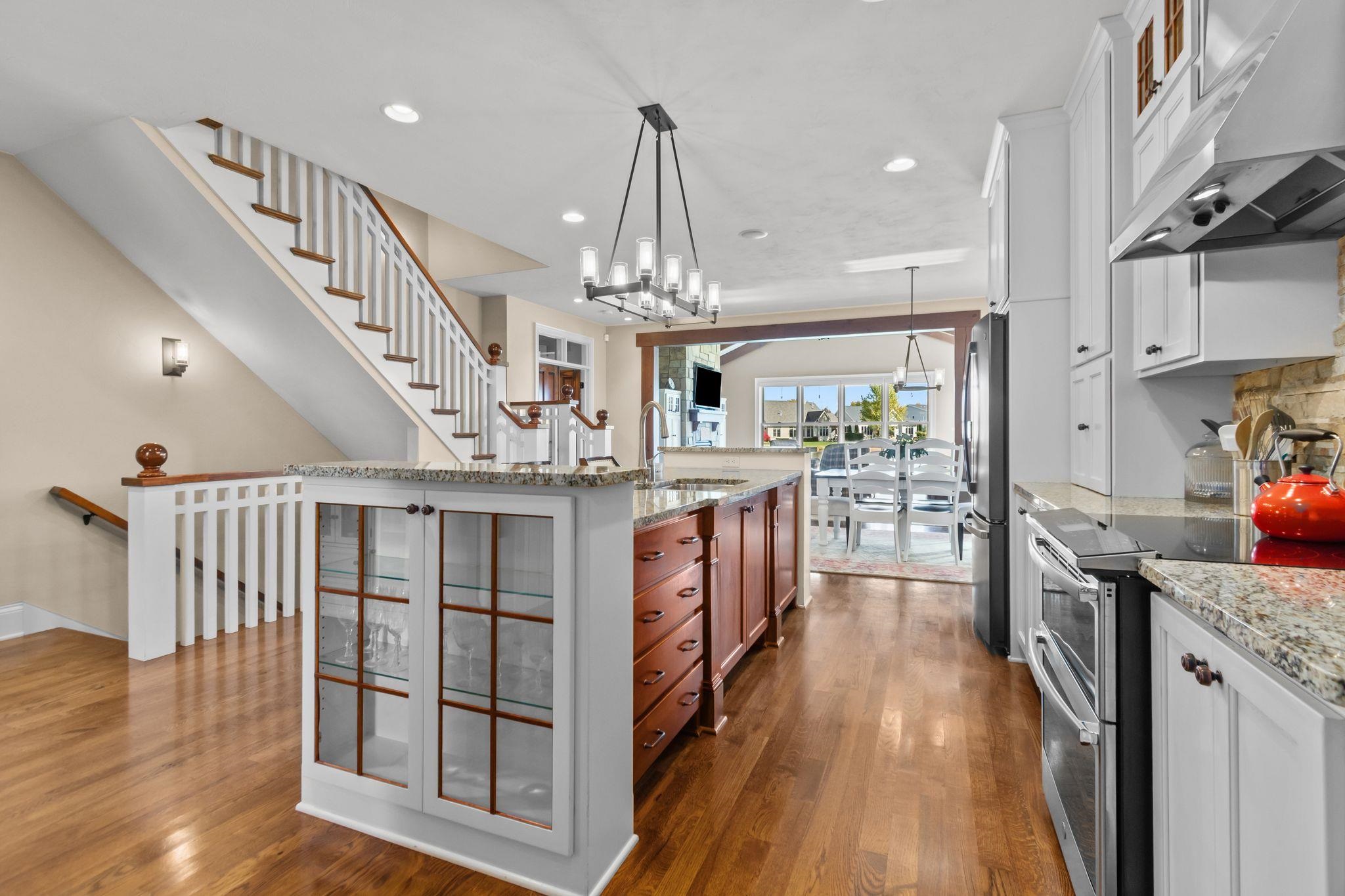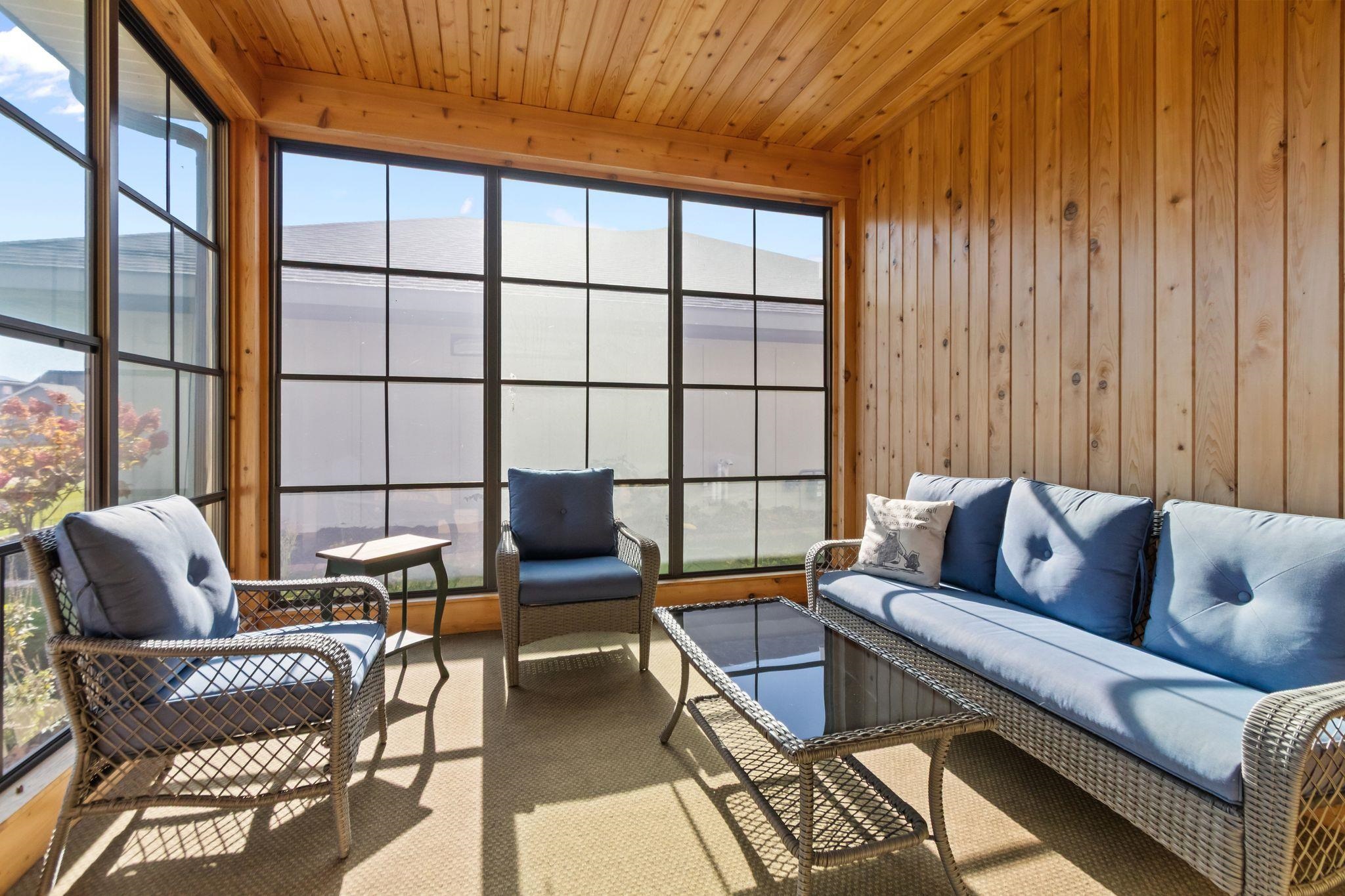 Wonderful opportunity for homeownership in this Griffin-built home showcasing quality craftsmanship throughout. Open-concept main floor features a great room with gas fireplace and wall of windows overlooking the shared pond. Spacious kitchen with large center island, walk-in pantry, painted cabinets, and stainless appliances. Oversized dining area with access to the 3-seasons room. Custom master suite with walk-in shower, water closet and walk-through closet to laundry room. Large rear entry w/cabinets and locker space. Upper level offers bedrooms 2 & 3, each with walk-in closets and shared full bath. Lower level partially finished w/large family room. Split attached 2.5-car and 1.5-car garages. New roof and additional solar heat source. Seller requests 48 hours to respond to all offers.