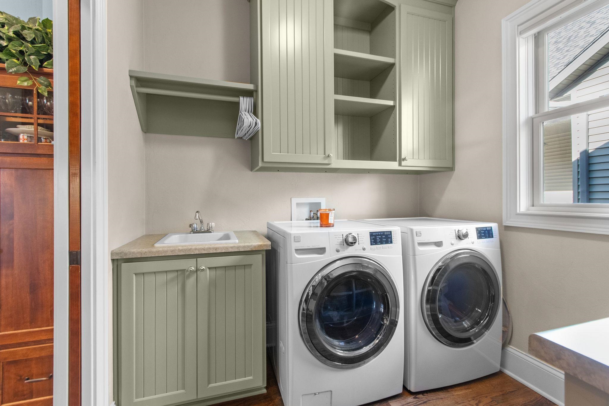 Range, refrigerator, microwave, dishwasher, washer, dryer, window treatments, garage remotes, TV mount.