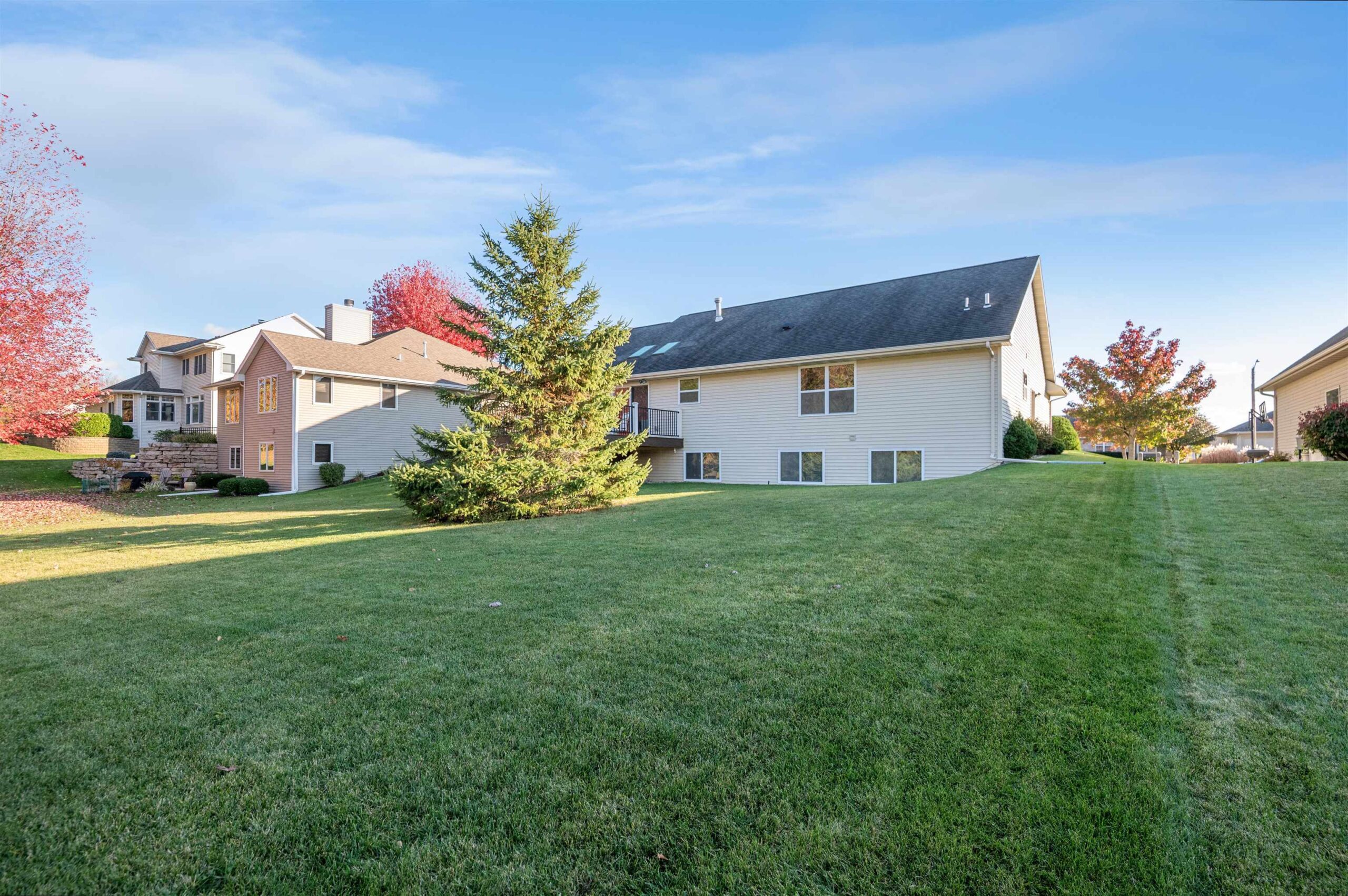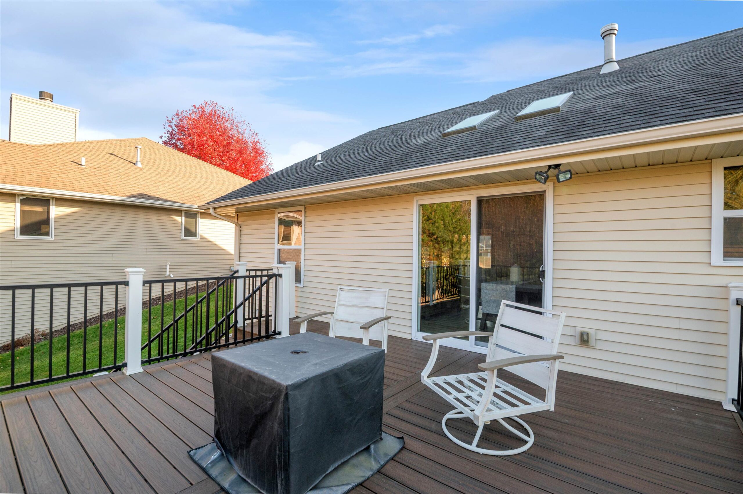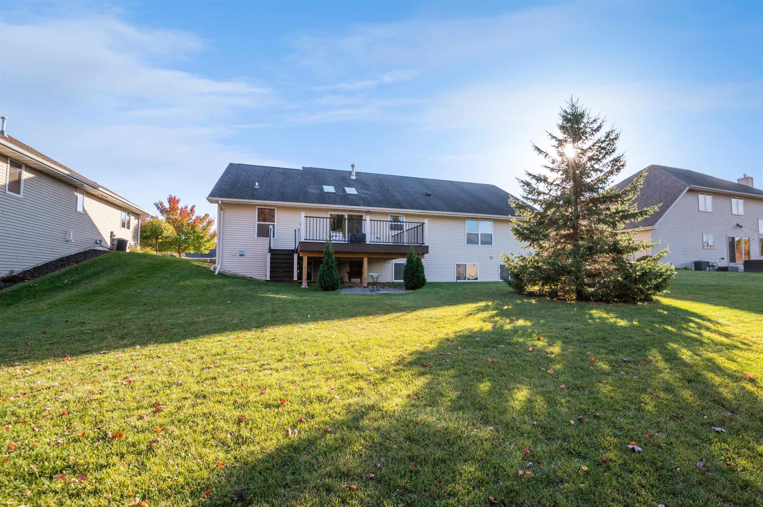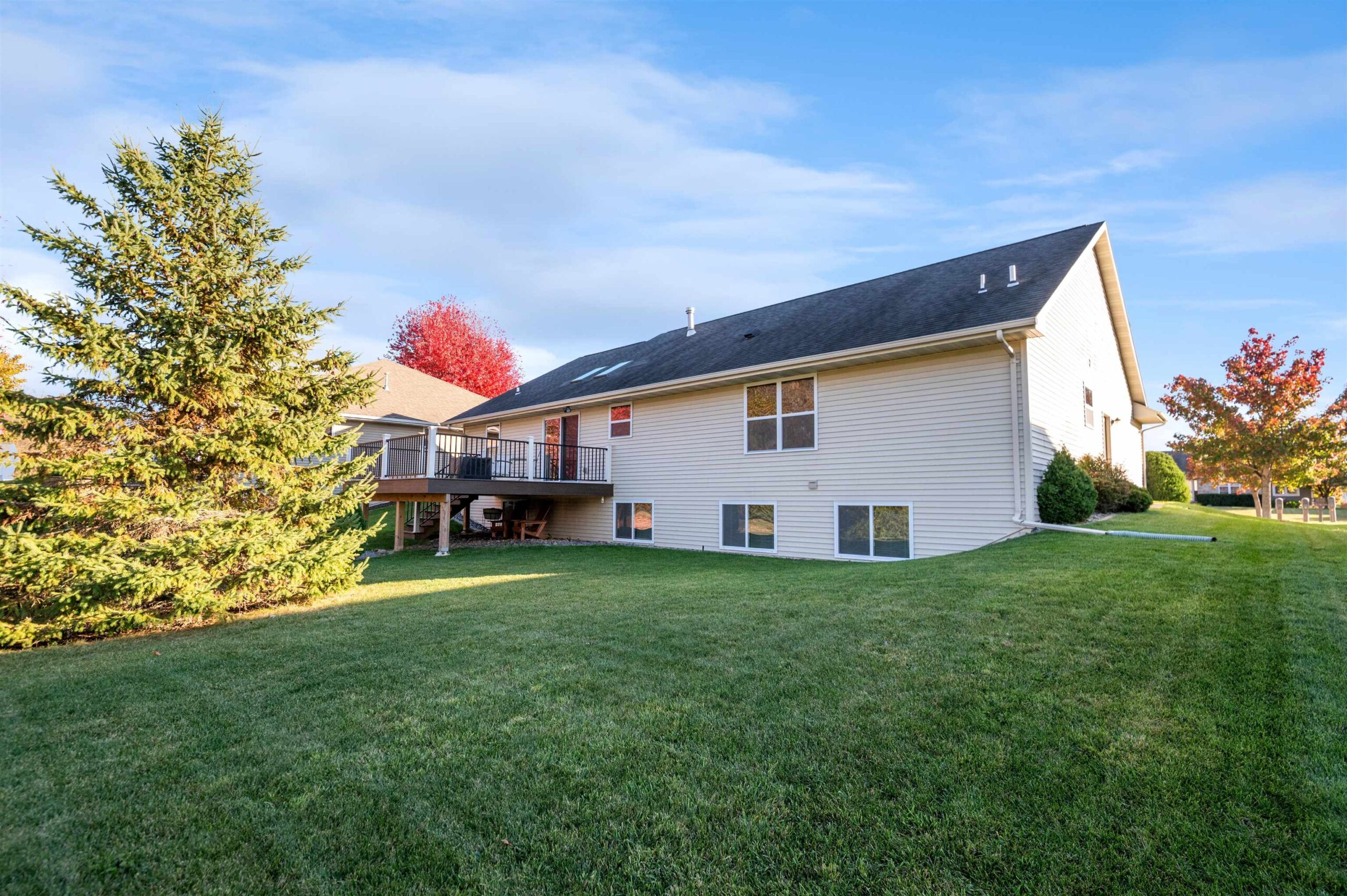 Move-in ready home featuring a bright kitchen with 2 skylights, center island, stainless appliances, and walk-in pantry. A brand new furnace (installed 11/25). Spacious living room offers a cathedral ceiling, gas fireplace, and open staircase to the finished lower level. Primary suite includes walk-in closet and bath. Lower level adds a large 4th bedroom, full bath, and exposed windows. Enjoy first-floor laundry, maintenance-free deck, and a tree-lined yard. Energy Star approved with Andersen windows and split-bedroom design!
