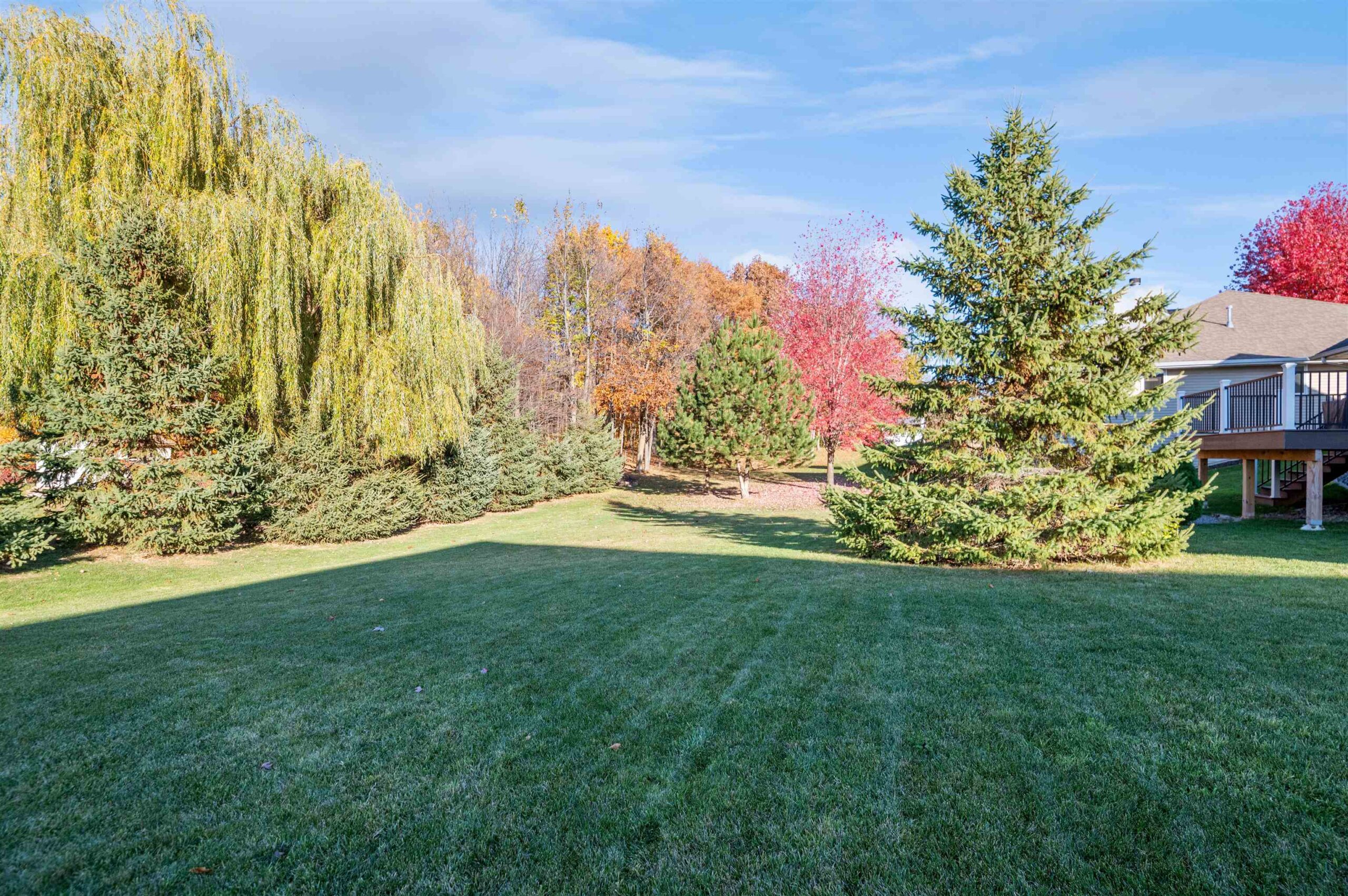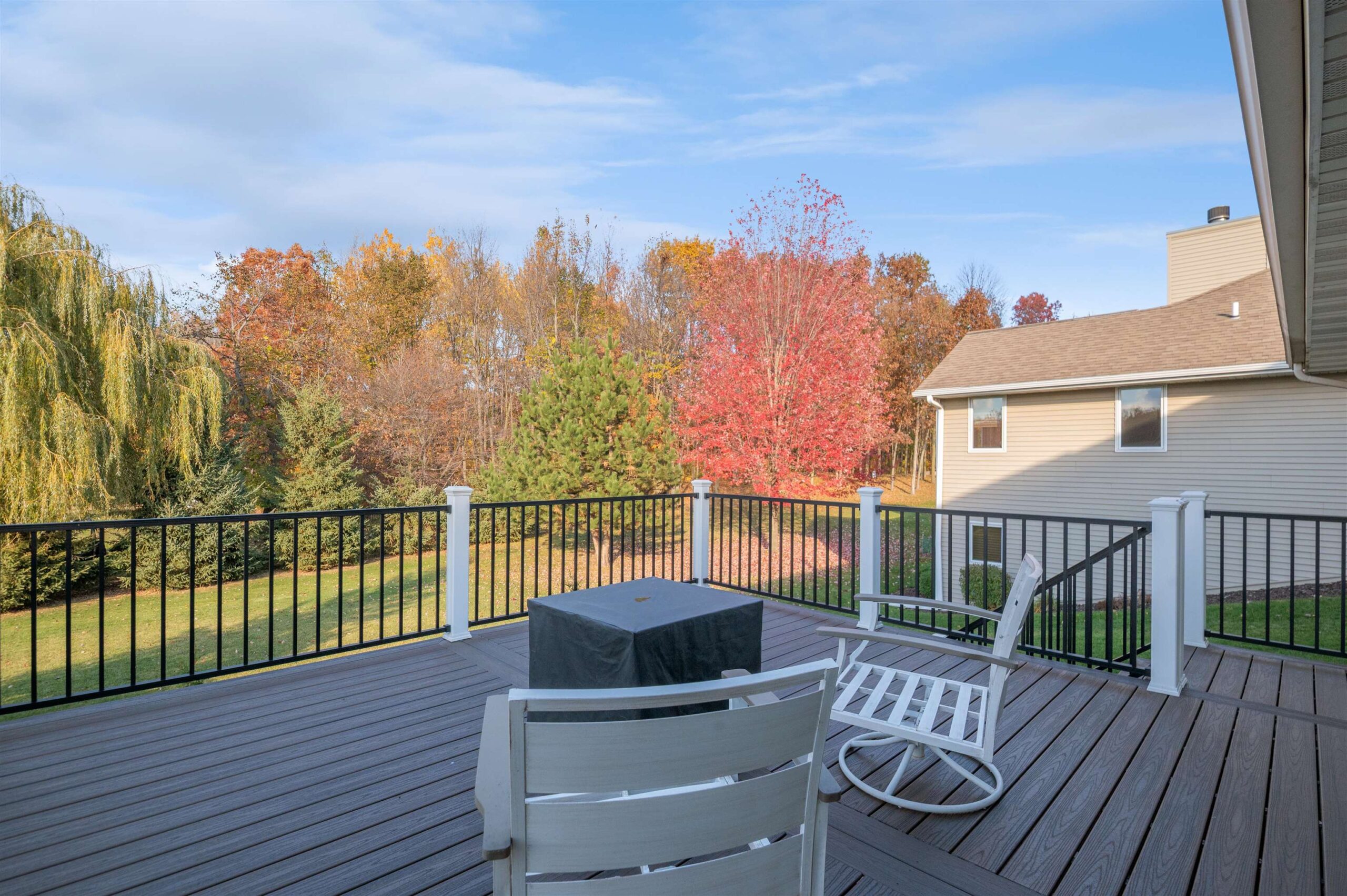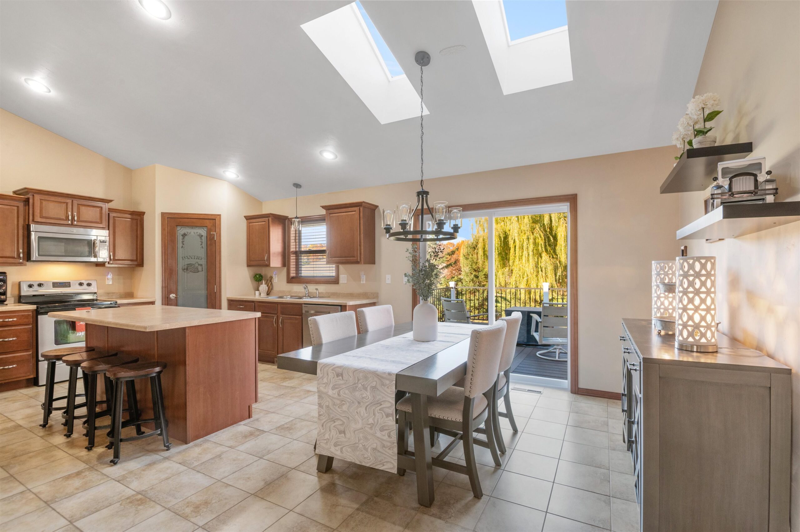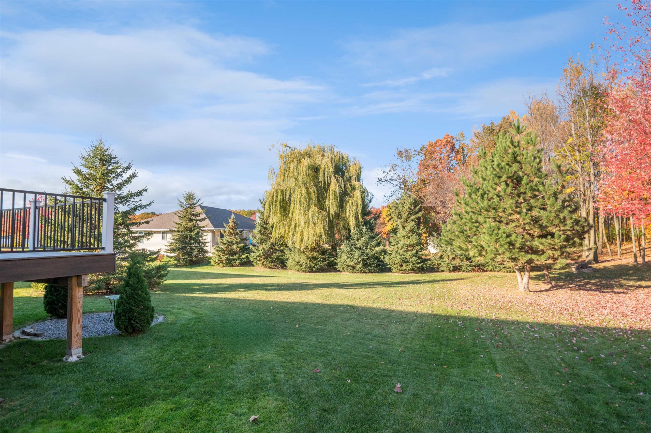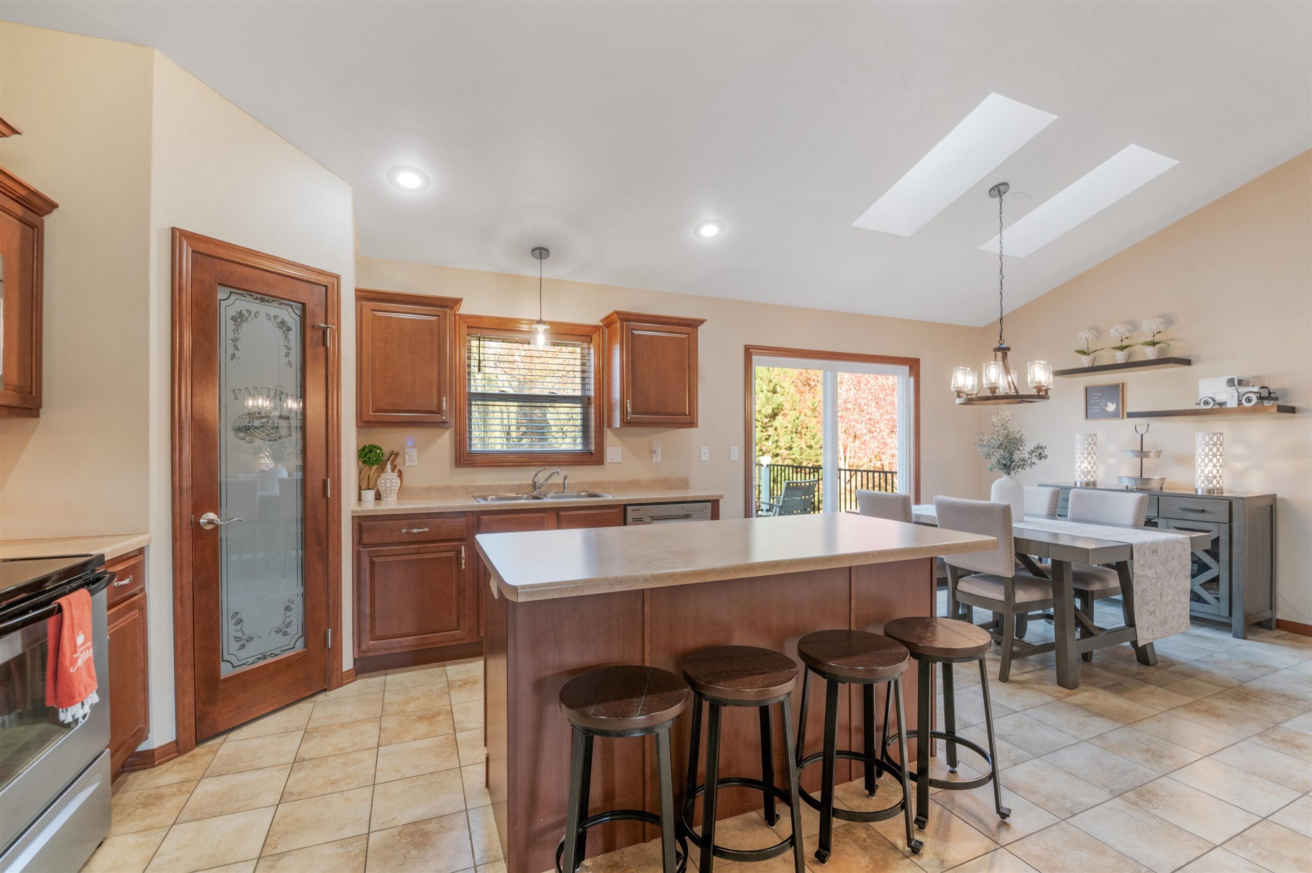 Move-in ready home featuring a bright kitchen with 2 skylights, center island, stainless appliances, and walk-in pantry. A brand new furnace (installed 11/25). Spacious living room offers a cathedral ceiling, gas fireplace, and open staircase to the finished lower level. Primary suite includes walk-in closet and bath. Lower level adds a large 4th bedroom, full bath, and exposed windows. Enjoy first-floor laundry, maintenance-free deck, and a tree-lined yard. Energy Star approved with Andersen windows and split-bedroom design!
