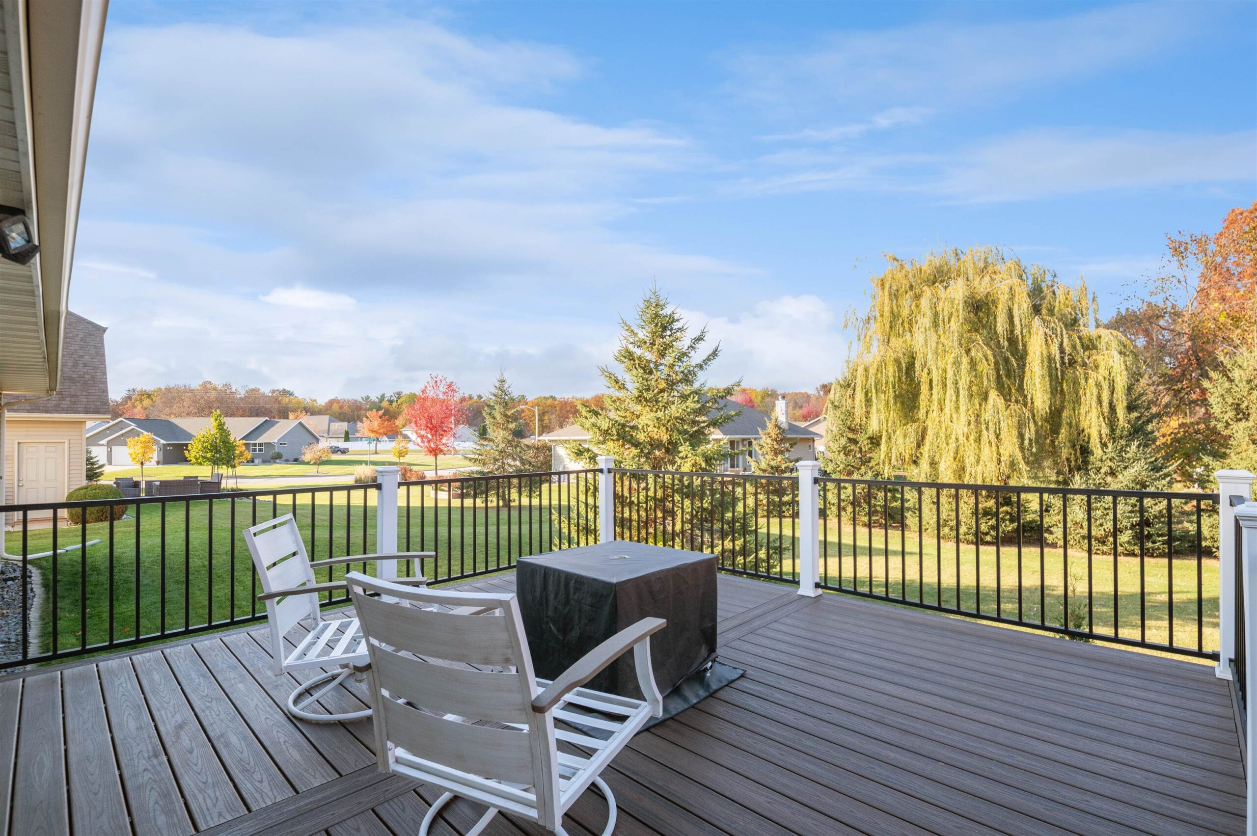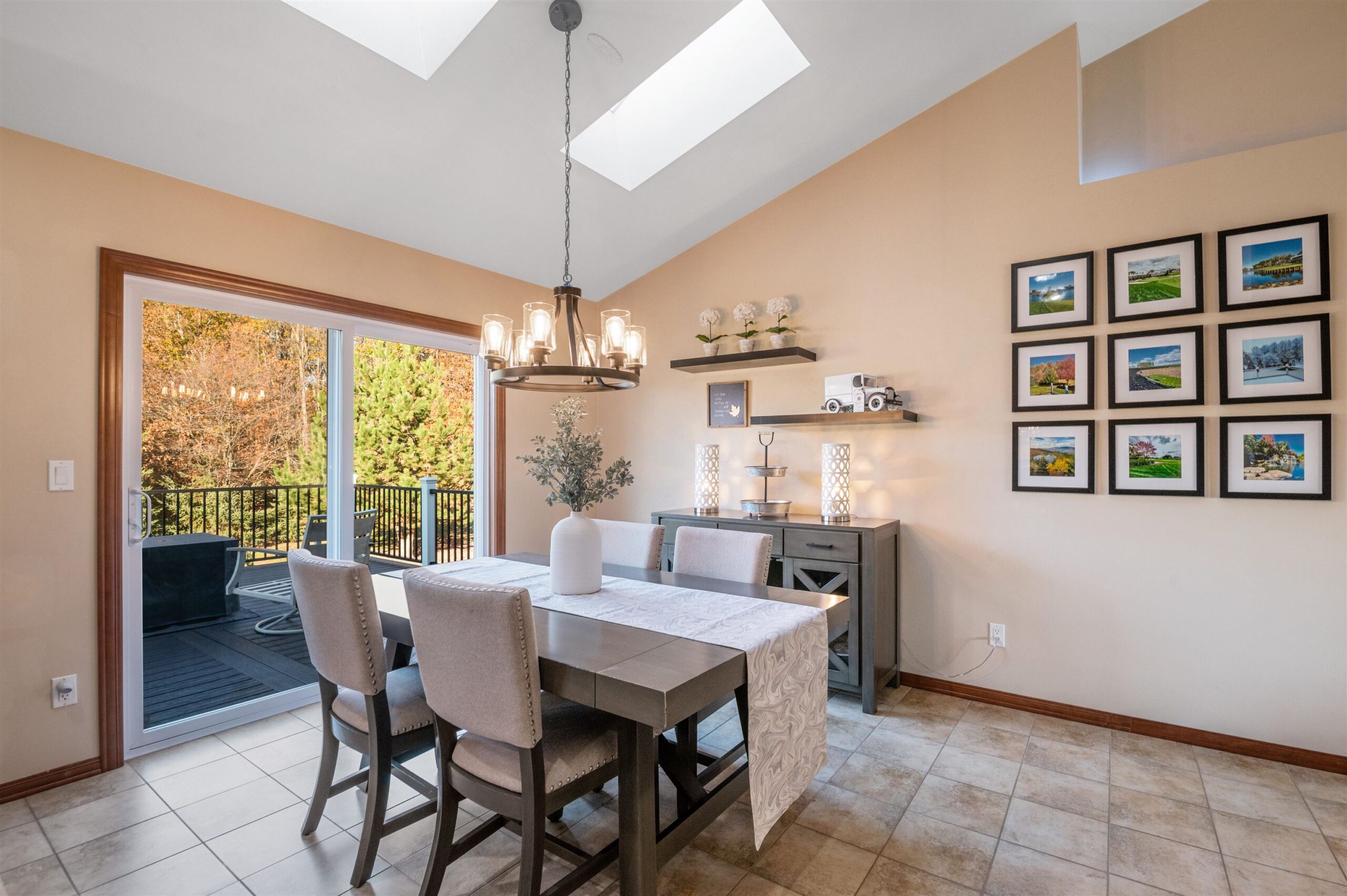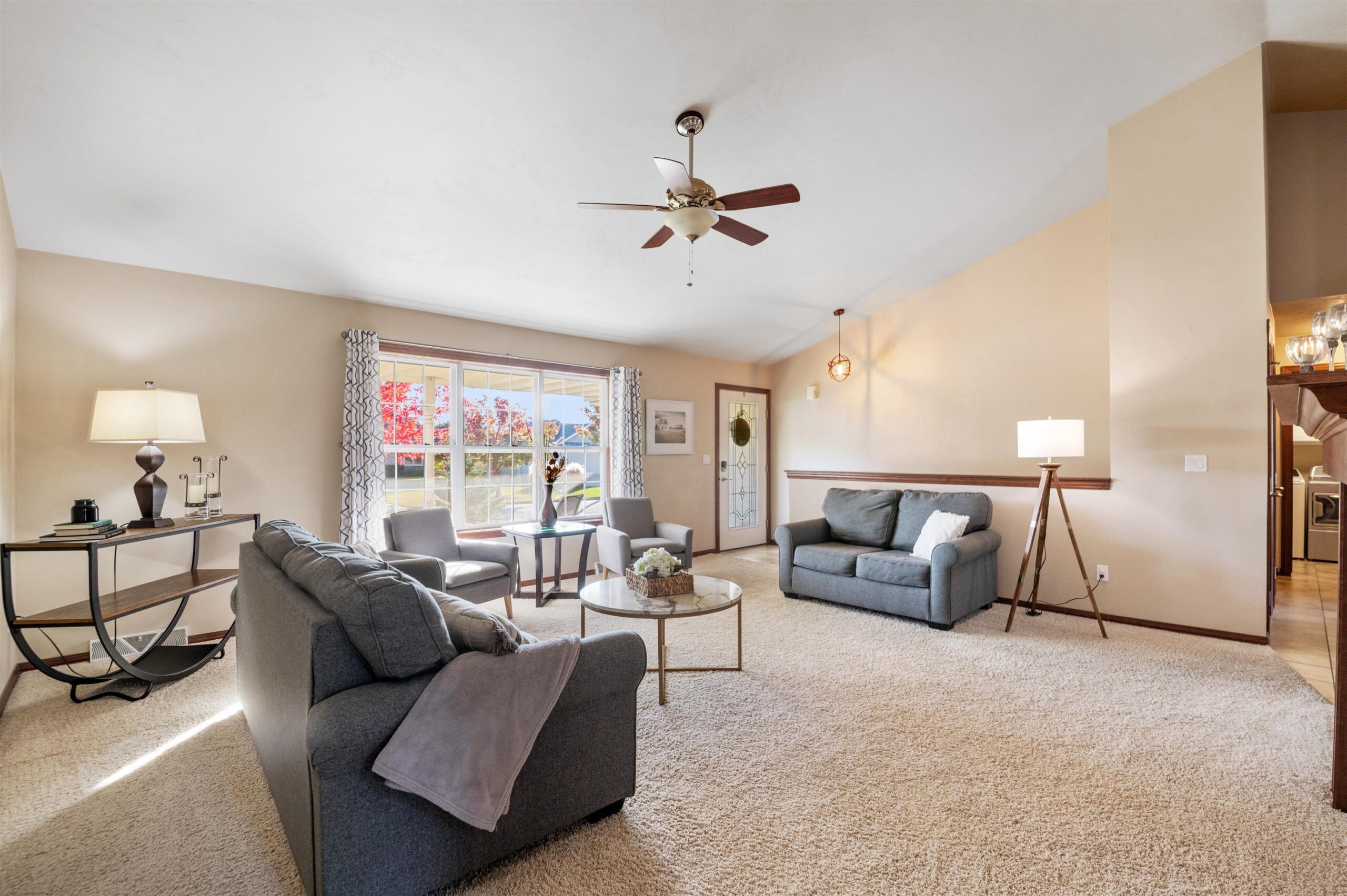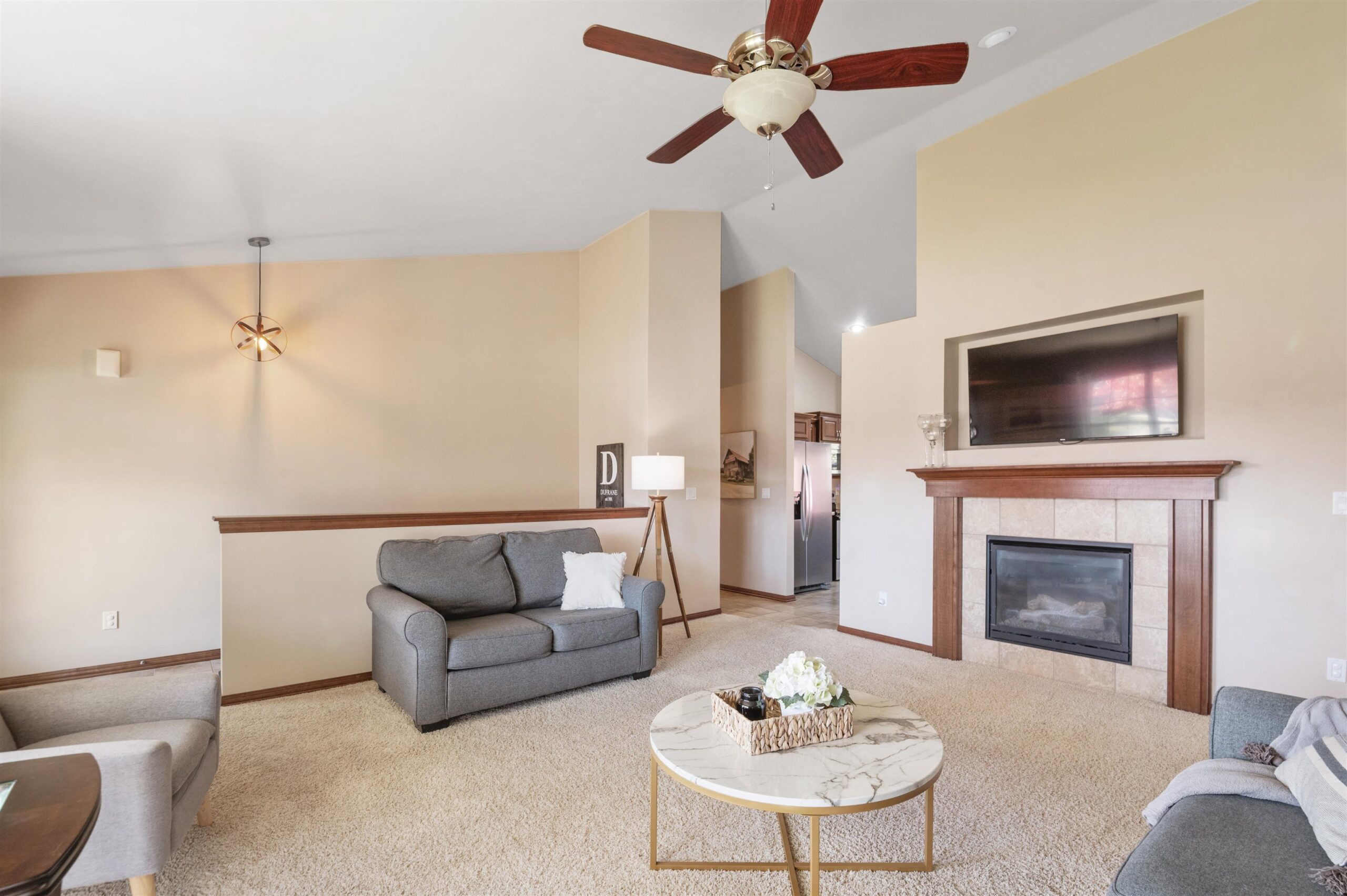 Move-in ready home featuring a bright kitchen with 2 skylights, center island, stainless appliances, and walk-in pantry. A brand new furnace (installed 11/25). Spacious living room offers a cathedral ceiling, gas fireplace, and open staircase to the finished lower level. Primary suite includes walk-in closet and bath. Lower level adds a large 4th bedroom, full bath, and exposed windows. Enjoy first-floor laundry, maintenance-free deck, and a tree-lined yard. Energy Star approved with Andersen windows and split-bedroom design!