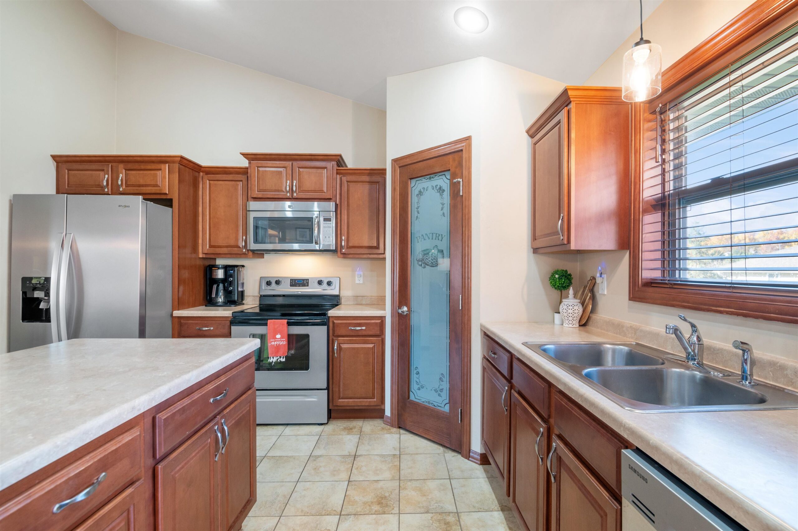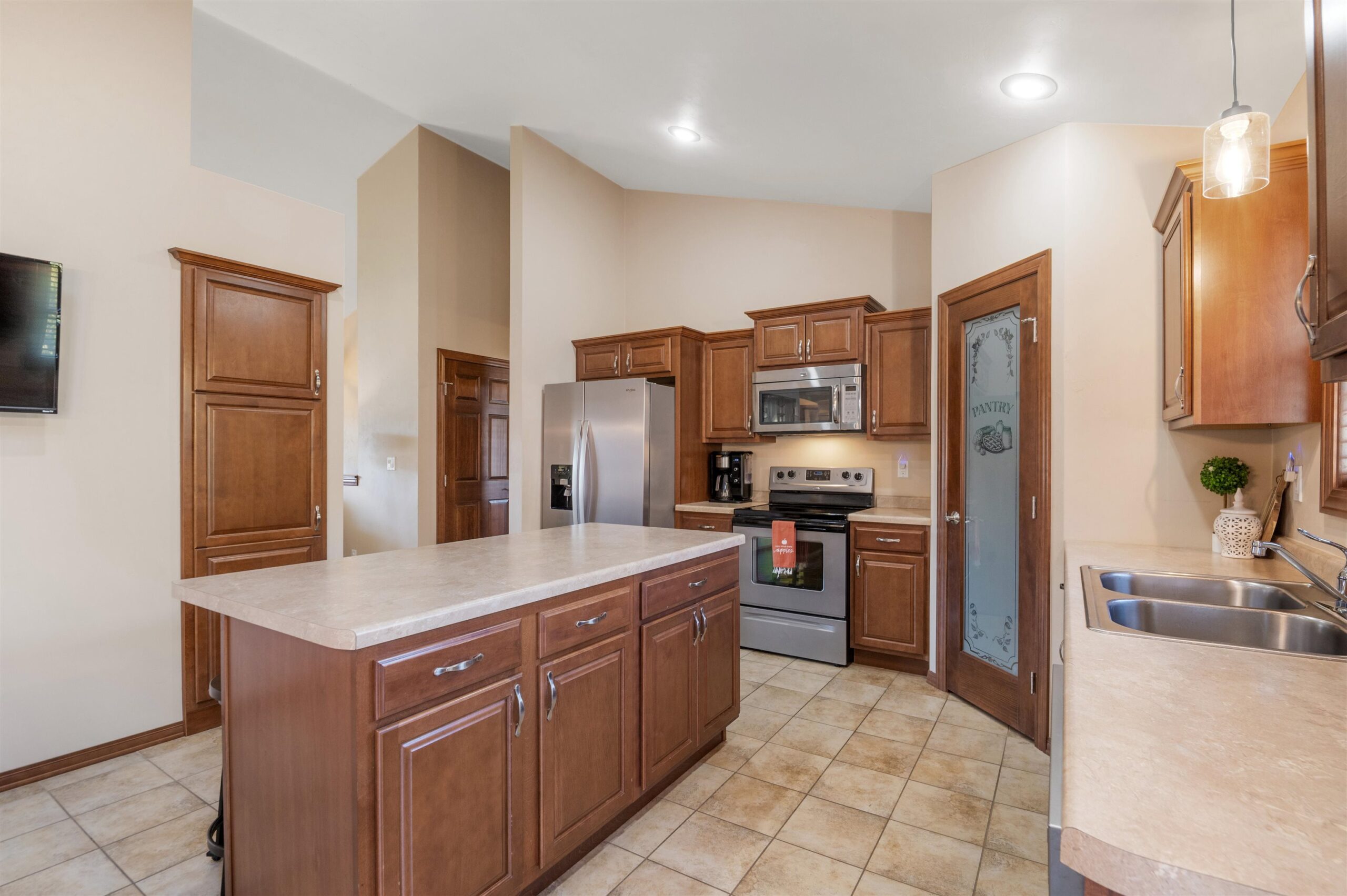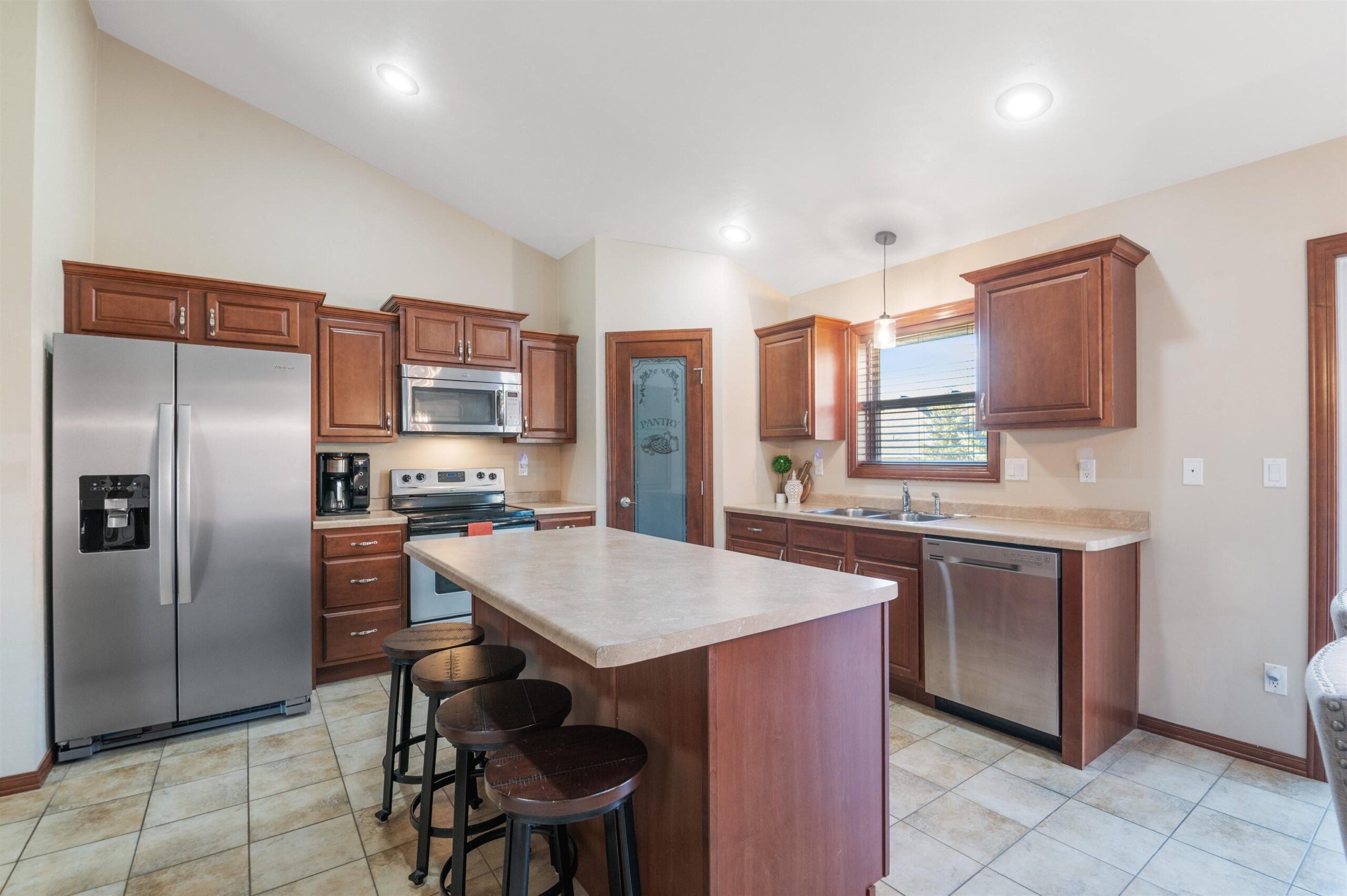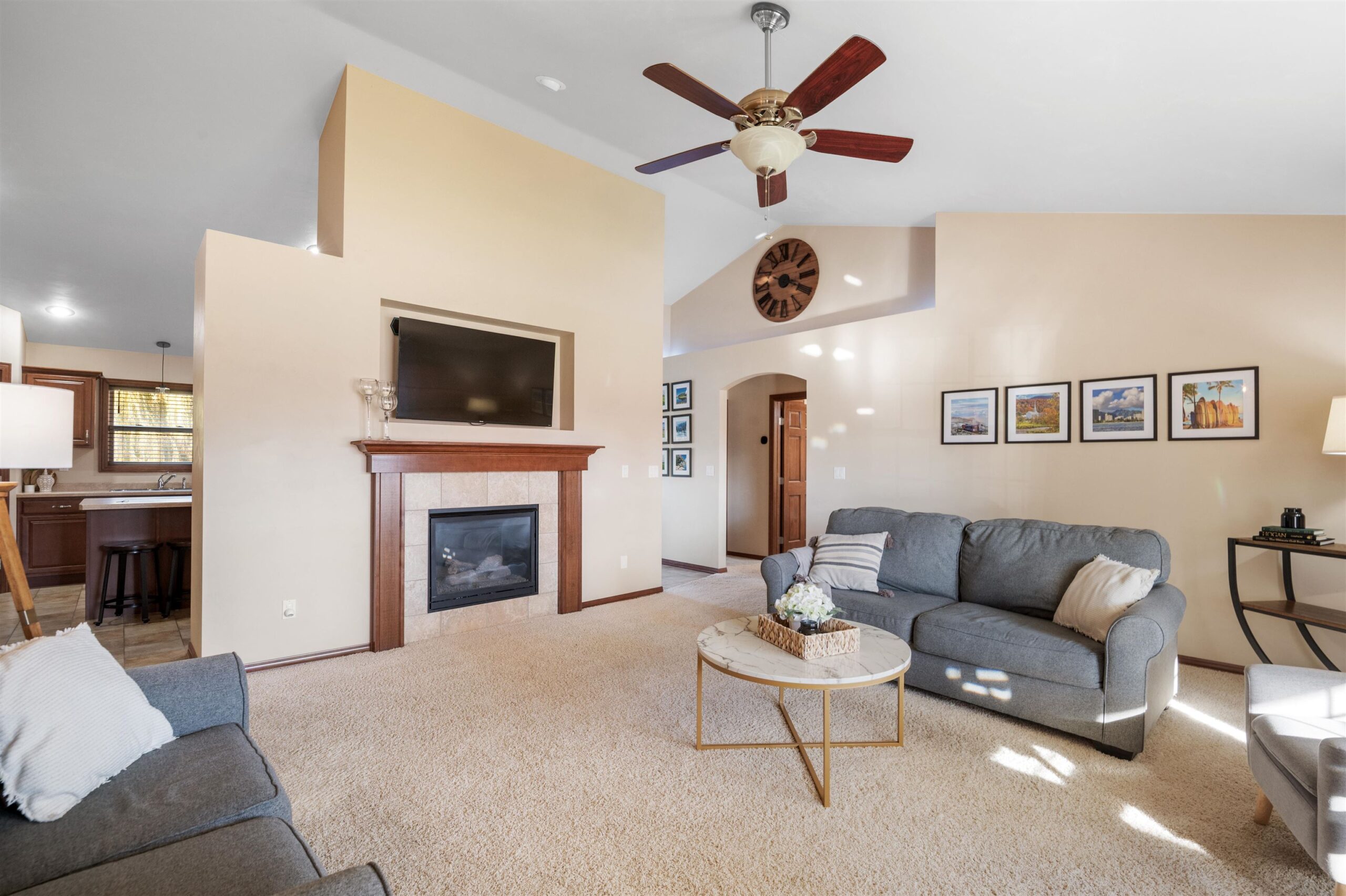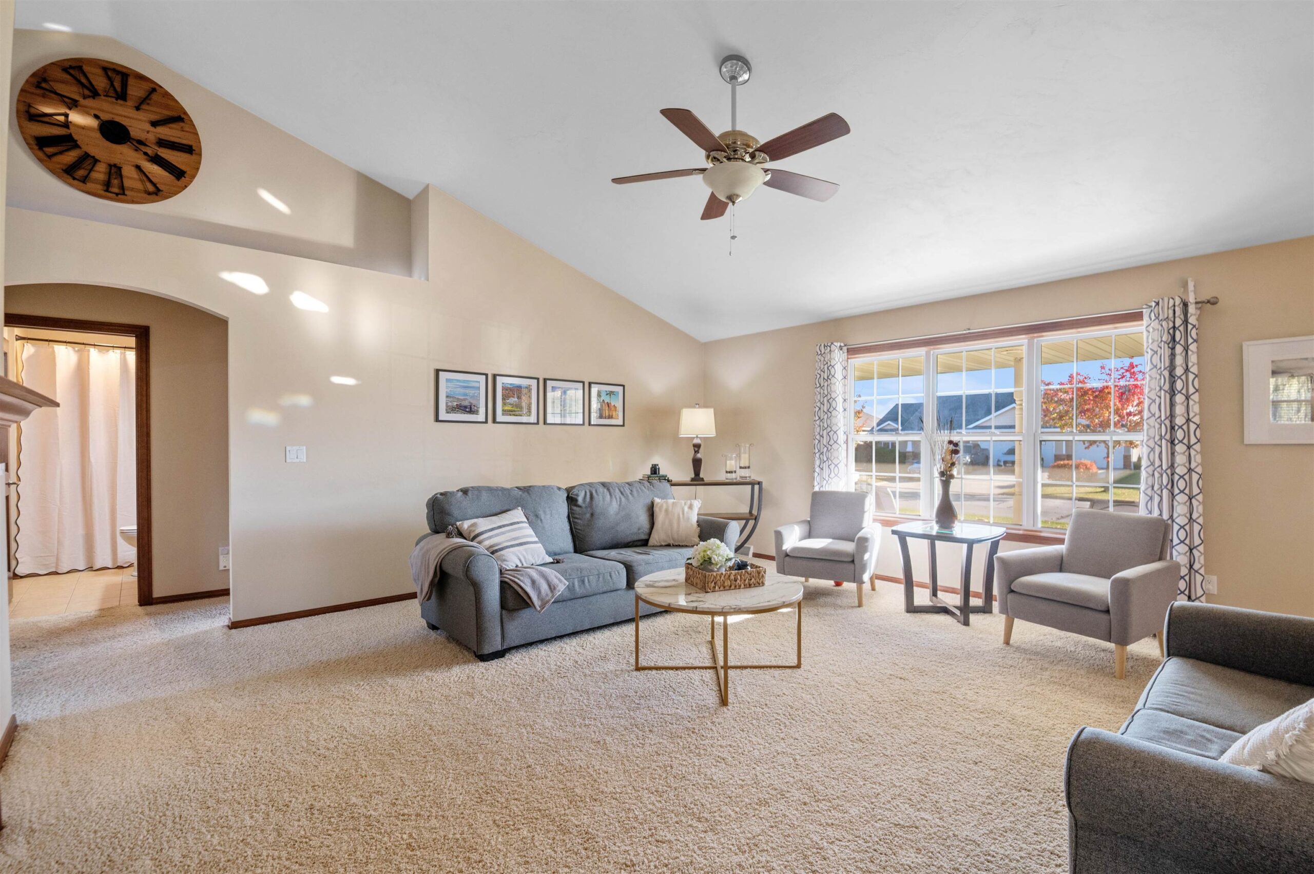 Move-in ready home featuring a bright kitchen with 2 skylights, center island, stainless appliances, and walk-in pantry. A brand new furnace (installed 11/25). Spacious living room offers a cathedral ceiling, gas fireplace, and open staircase to the finished lower level. Primary suite includes walk-in closet and bath. Lower level adds a large 4th bedroom, full bath, and exposed windows. Enjoy first-floor laundry, maintenance-free deck, and a tree-lined yard. Energy Star approved with Andersen windows and split-bedroom design!
