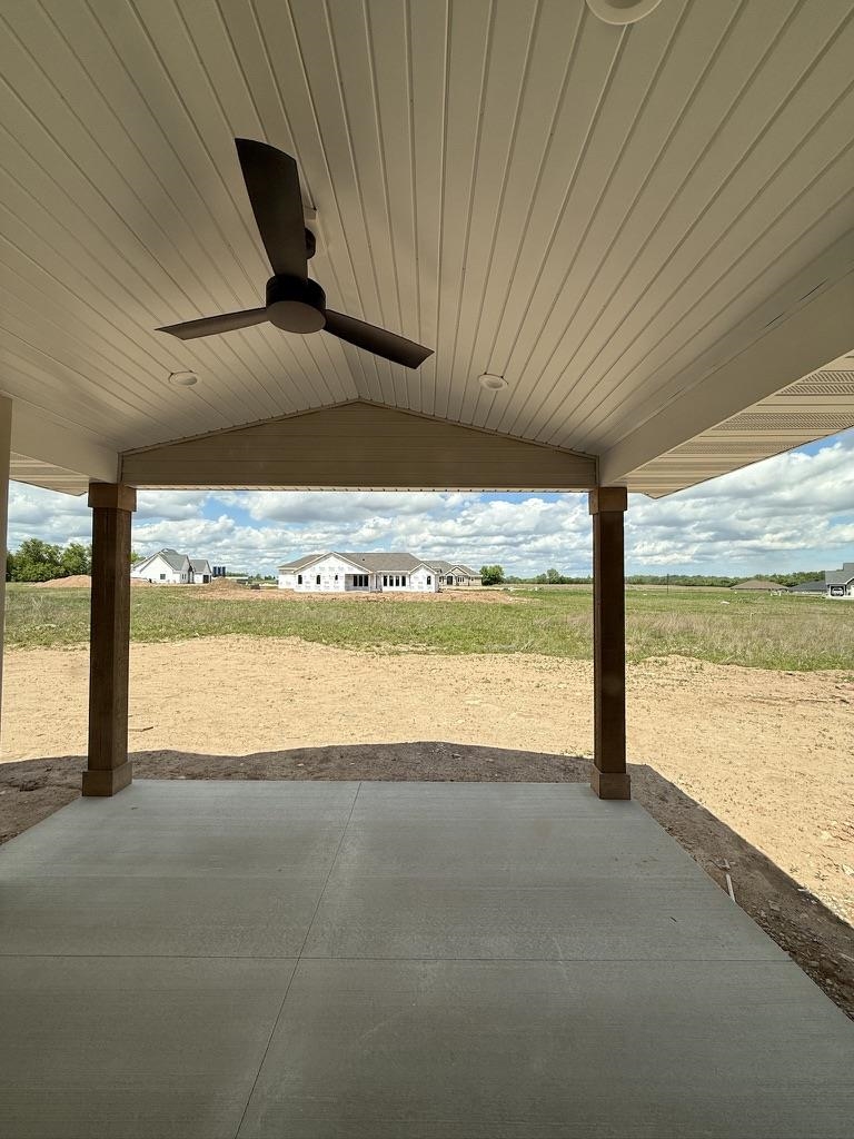 Kitchen Appliances, concrete driveway, seeded lawn and 3 shade trees