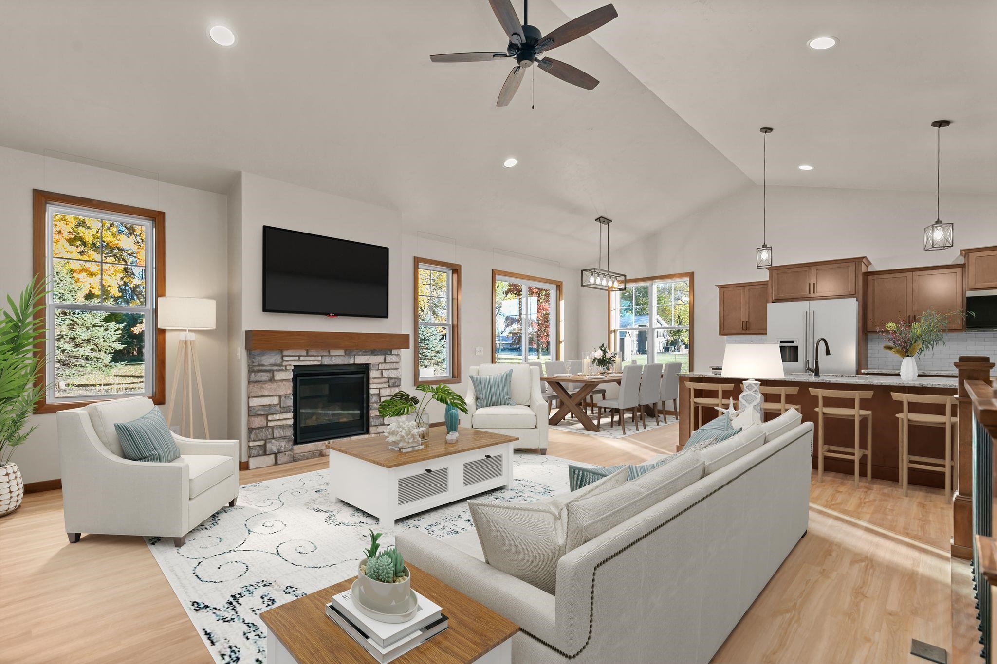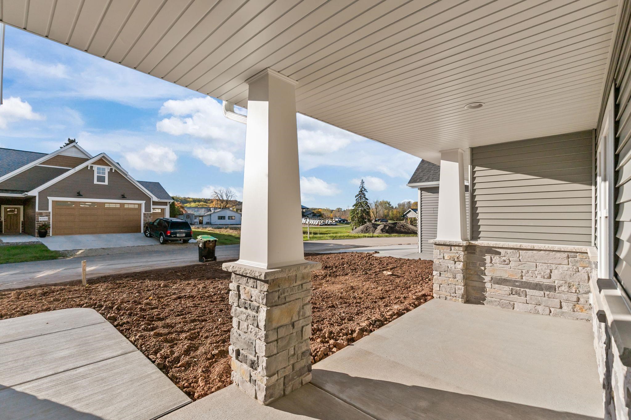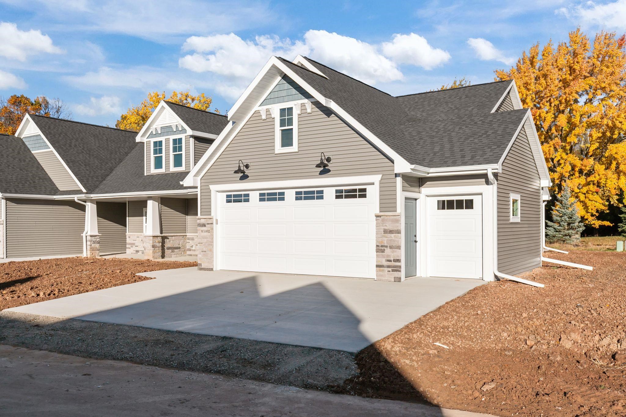 Construction is underway on this beautiful new 2-bed, 2-bath home on Cottage Lane—your chance to choose custom finishes from flooring to paint. The open main living area blends kitchen, dining, and living seamlessly, anchored by a large island and complemented by a walk-in pantry. It’s the perfect balance of space to host family and friends while staying easy to maintain. Enjoy carefree living $244 per month HOA fee covers lawn care, snow removal, trash/recycling giving you more time for the trails, neighborhood gatherings at the clubhouse, and your two complimentary lifetime senior golf memberships to High Cliff Golf Course. Photos of similar home. Estimated completion date: April 1st 2026. See attached Zero Lot Line Covenants