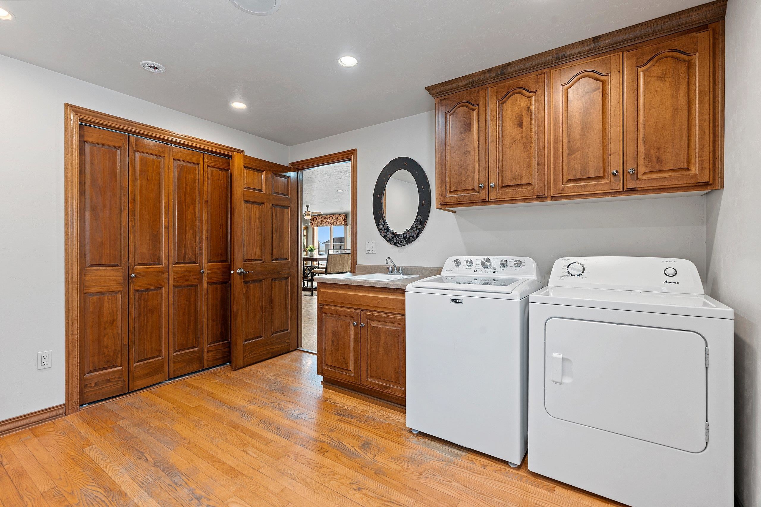 Refrigerator, stove/oven, microwave, dishwasher, washer/dryer
