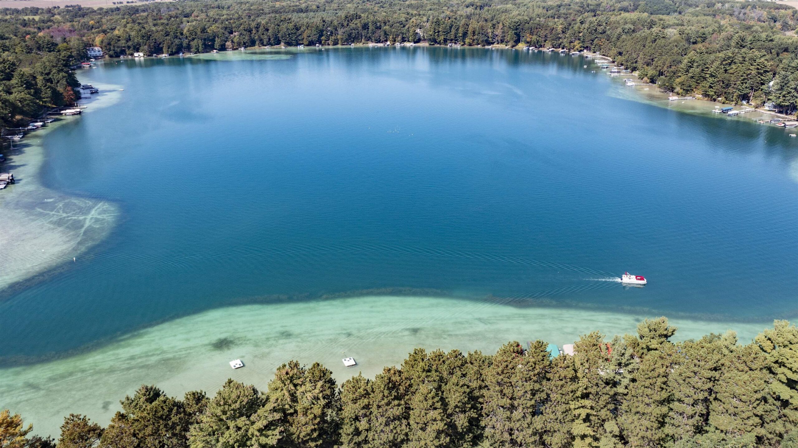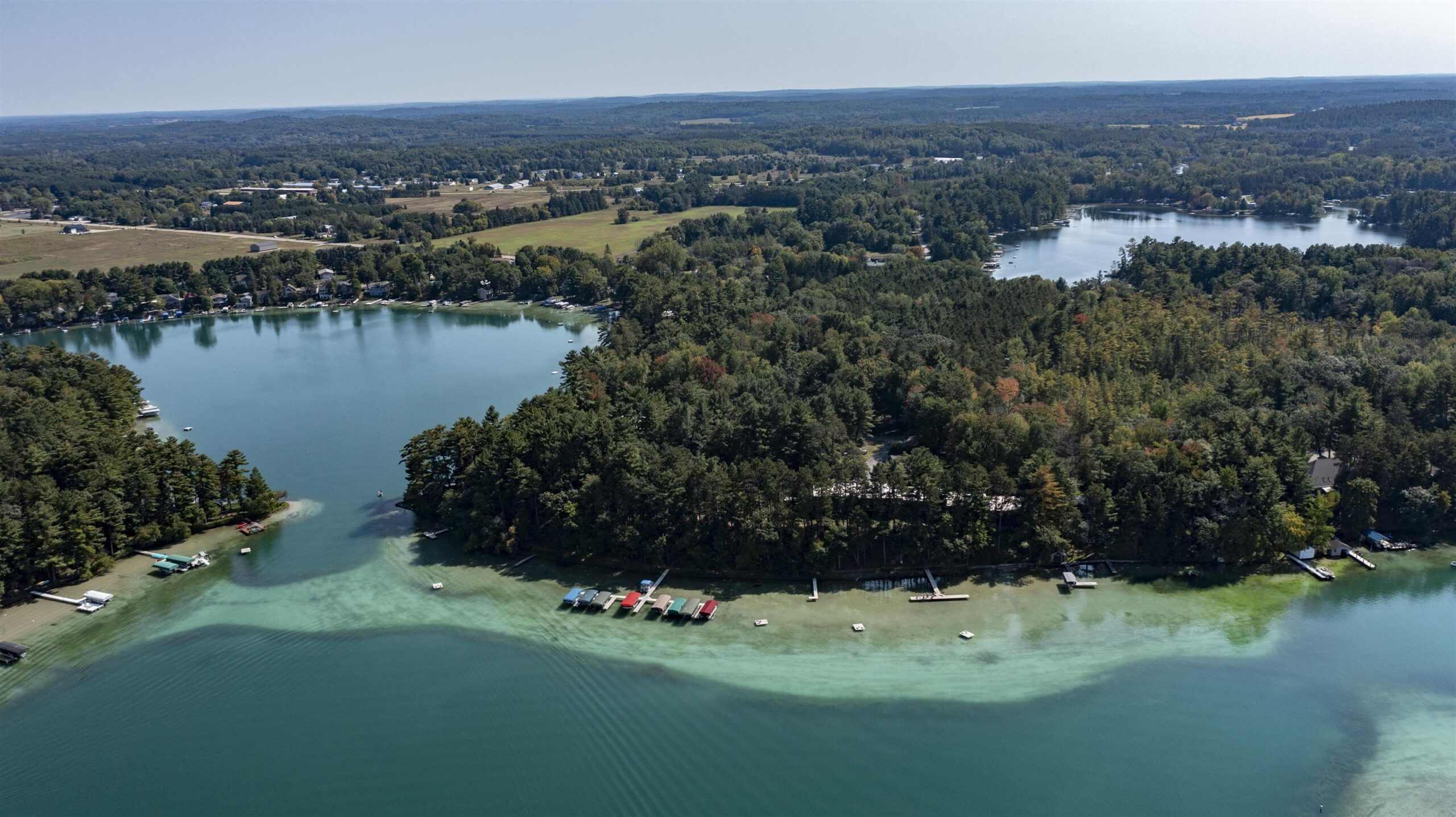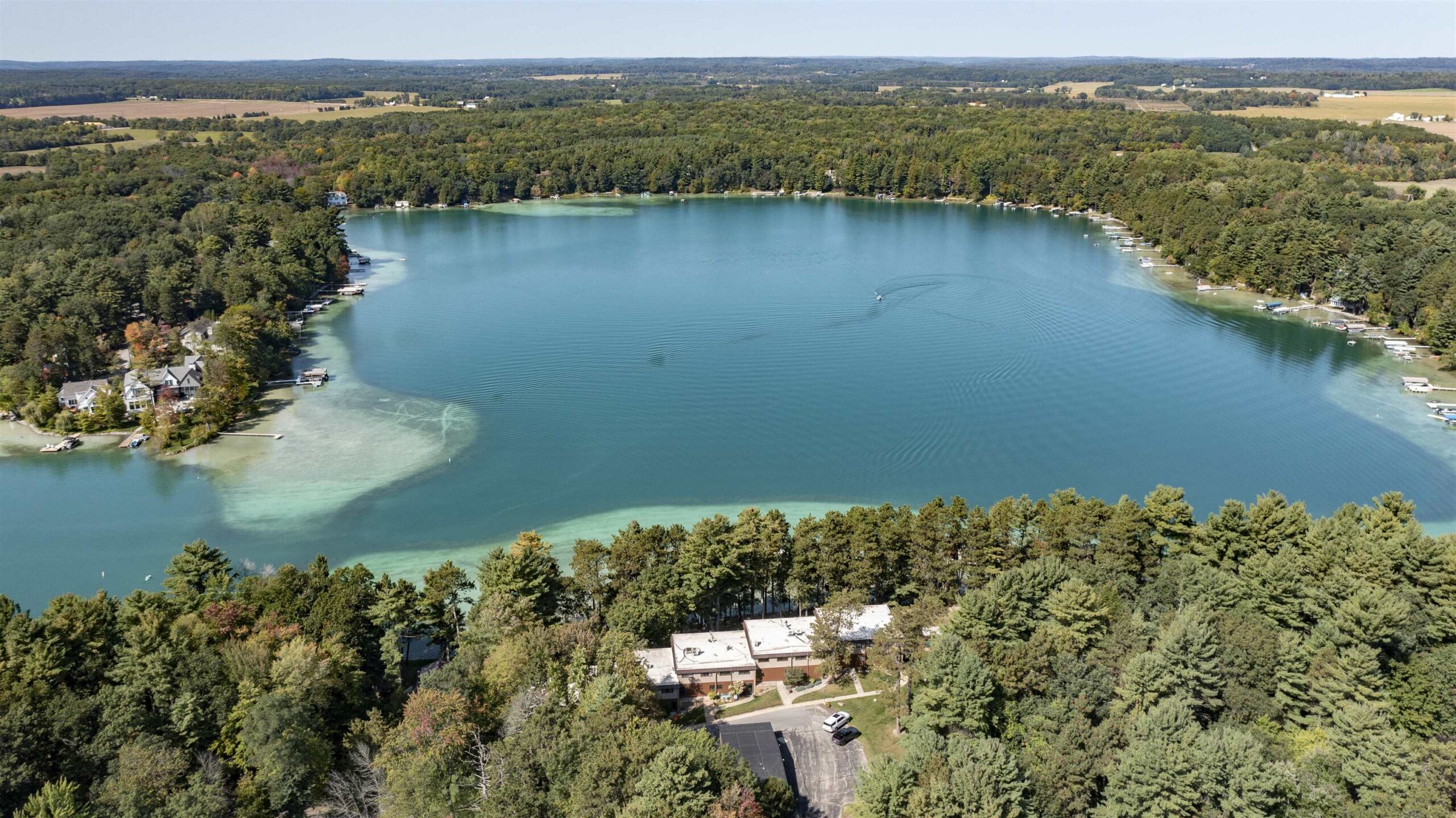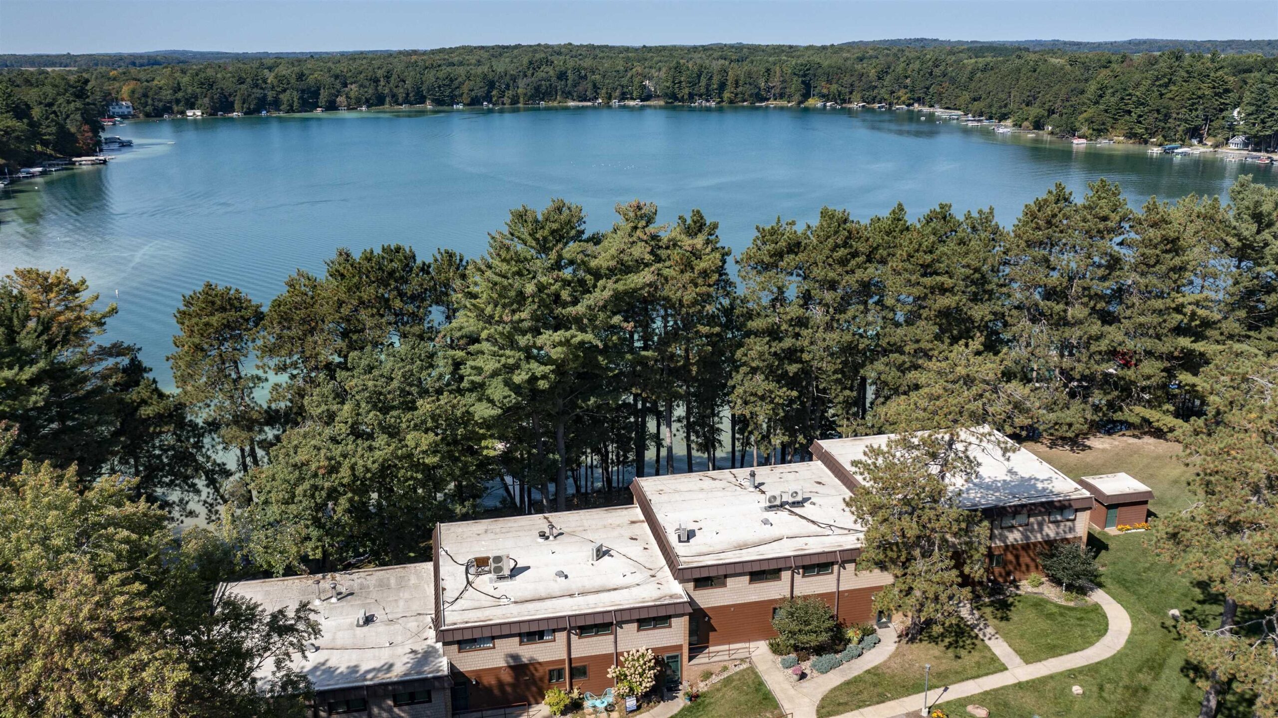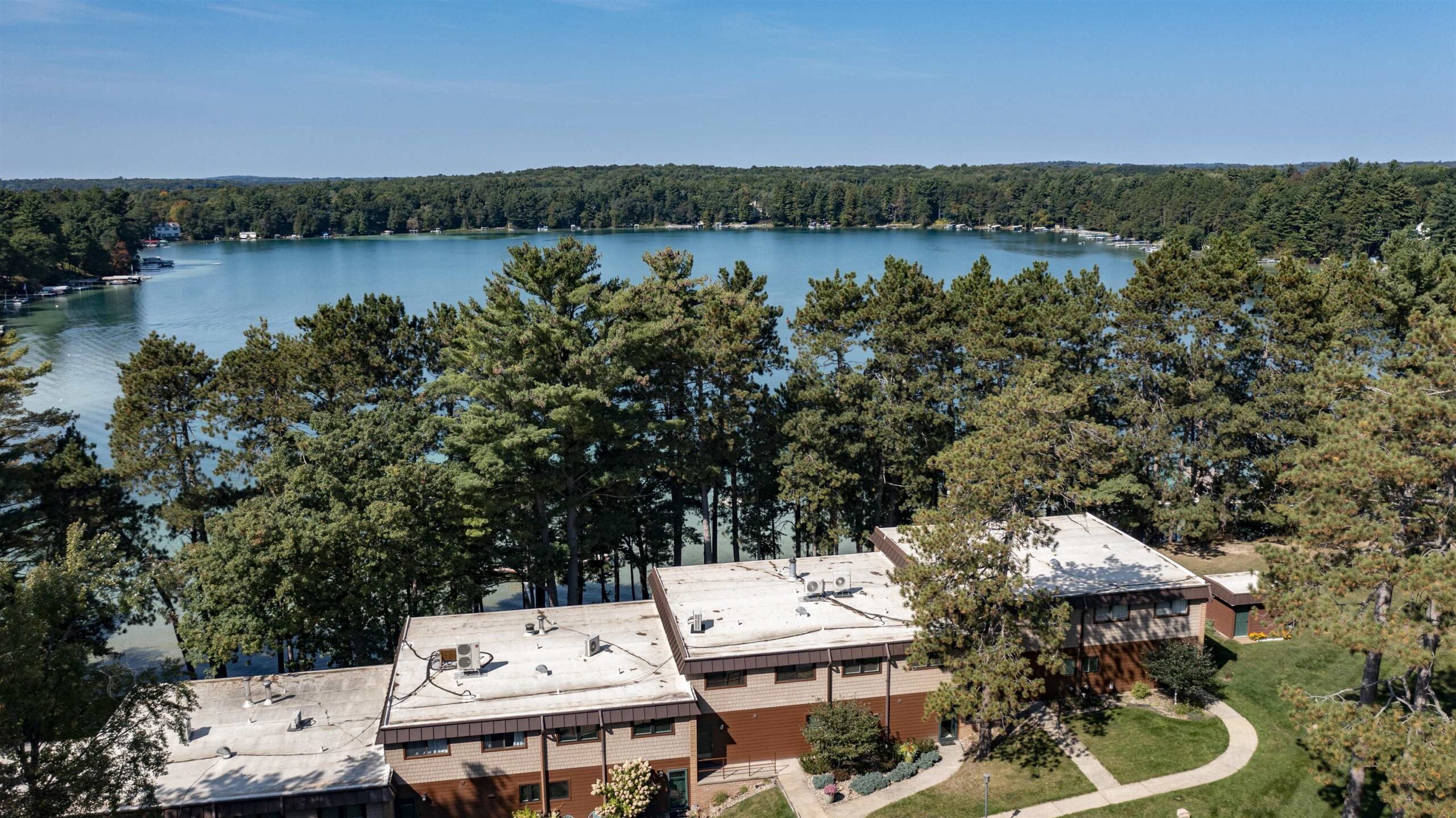 Dream location on the Waupaca Chain O’ Lakes! Renovated Wingspan condo in coveted “Ravenswood,” facing Round Lake with breathtaking sunset views from an extra-large living room and primary bedroom. Carefree living meets hard-sand frontage with 1,200± ft of shoreline on 17 acres, shared by only 18 units, with your own dock space and boat slip. Inside: Open concept, spacious 1,800+ sq ft, oversized windows and patio doors, and a beautifully updated wood-burning fireplace. Step onto a maintenance-free patio for your golden-hour dinners! Tennis & pickleball courts, wide green space, and easy walks to the Wheelhouse & ICC. The association covers grounds & exterior (new roof), so weekends stay free for year-round lake life. Turn-key, lock-and-leave convenience in the heart of the Chain O’ Lakes!